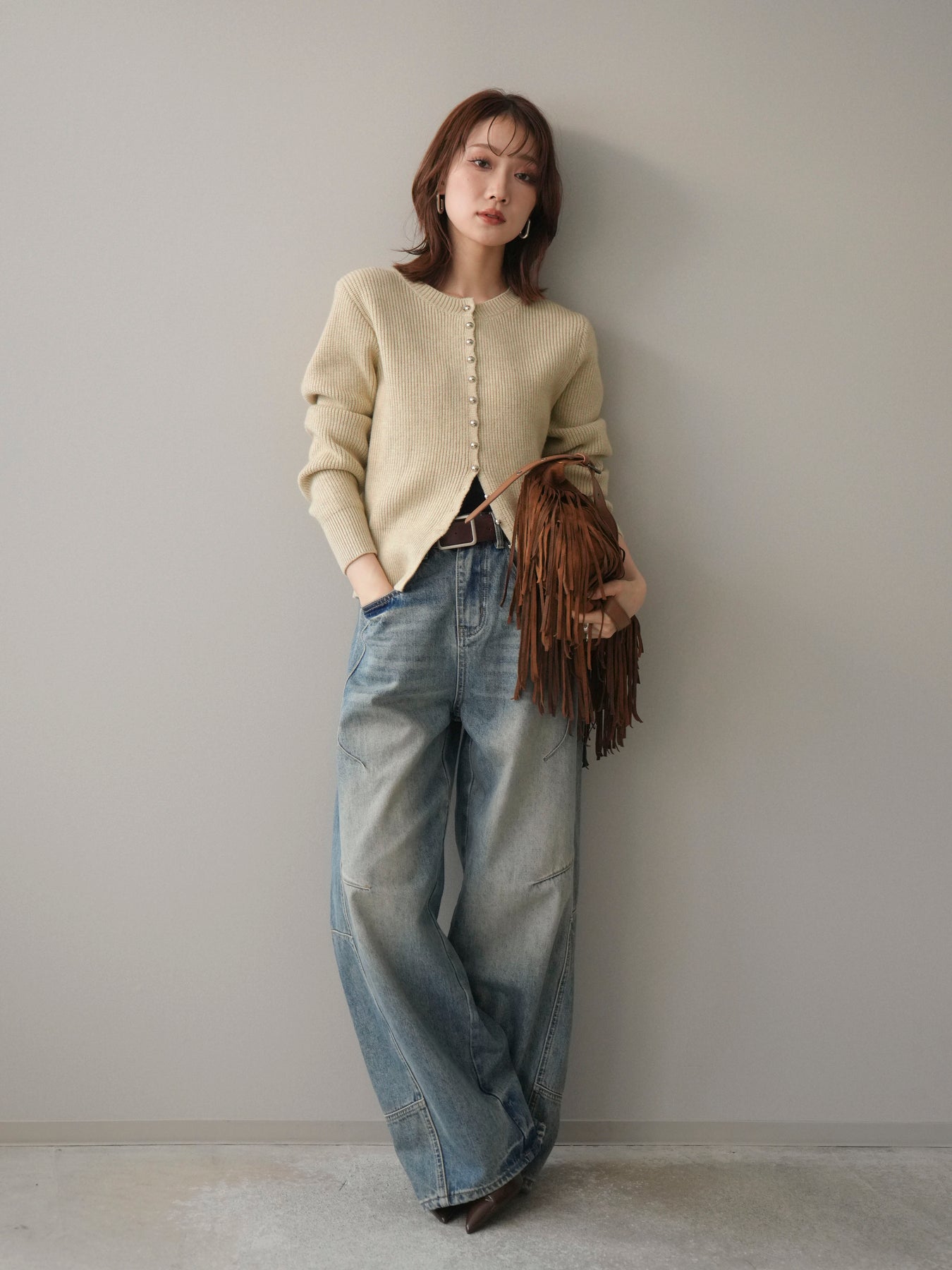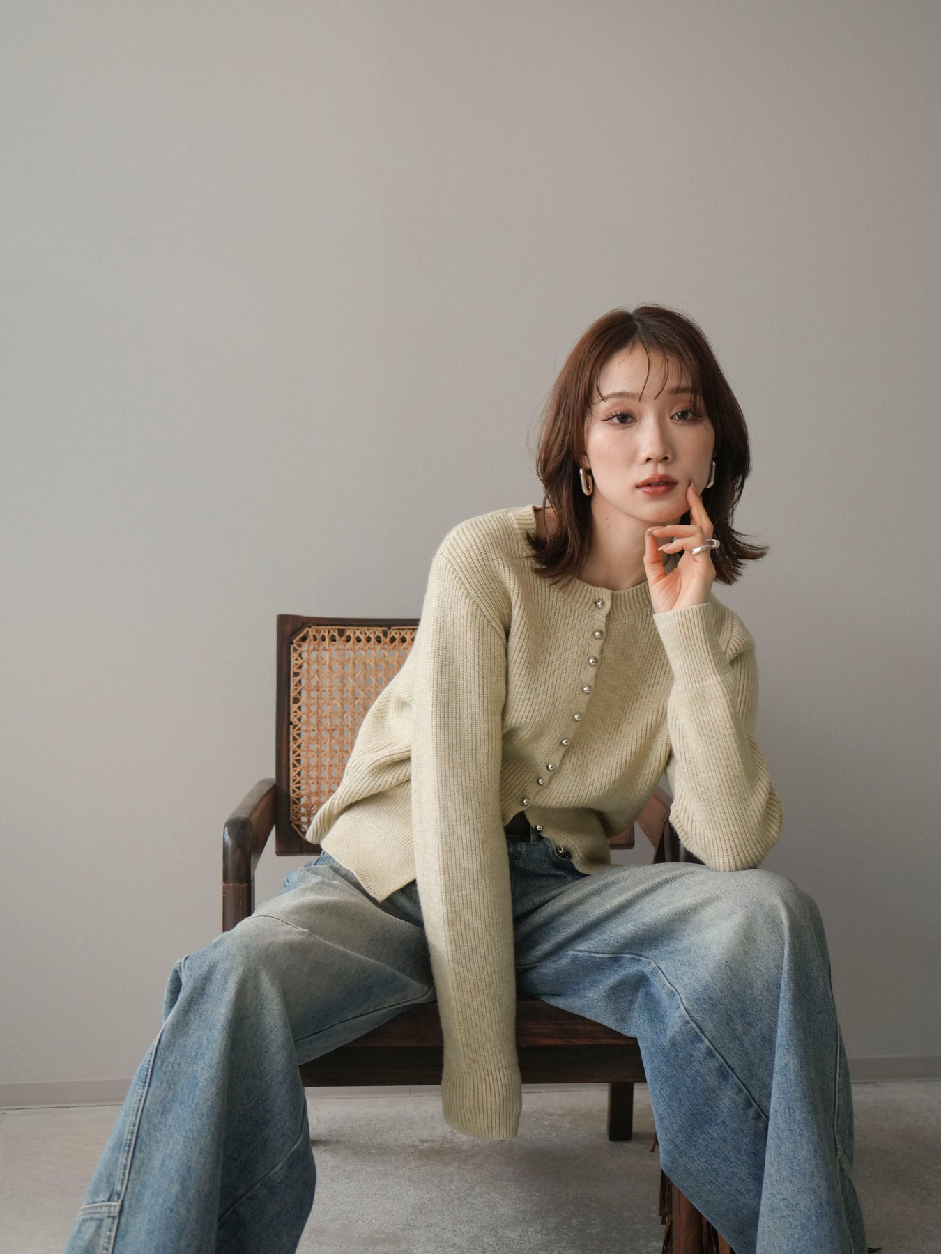[予約]シルバーボタン畦編みニットカーディガンに関連する商品を探す↓