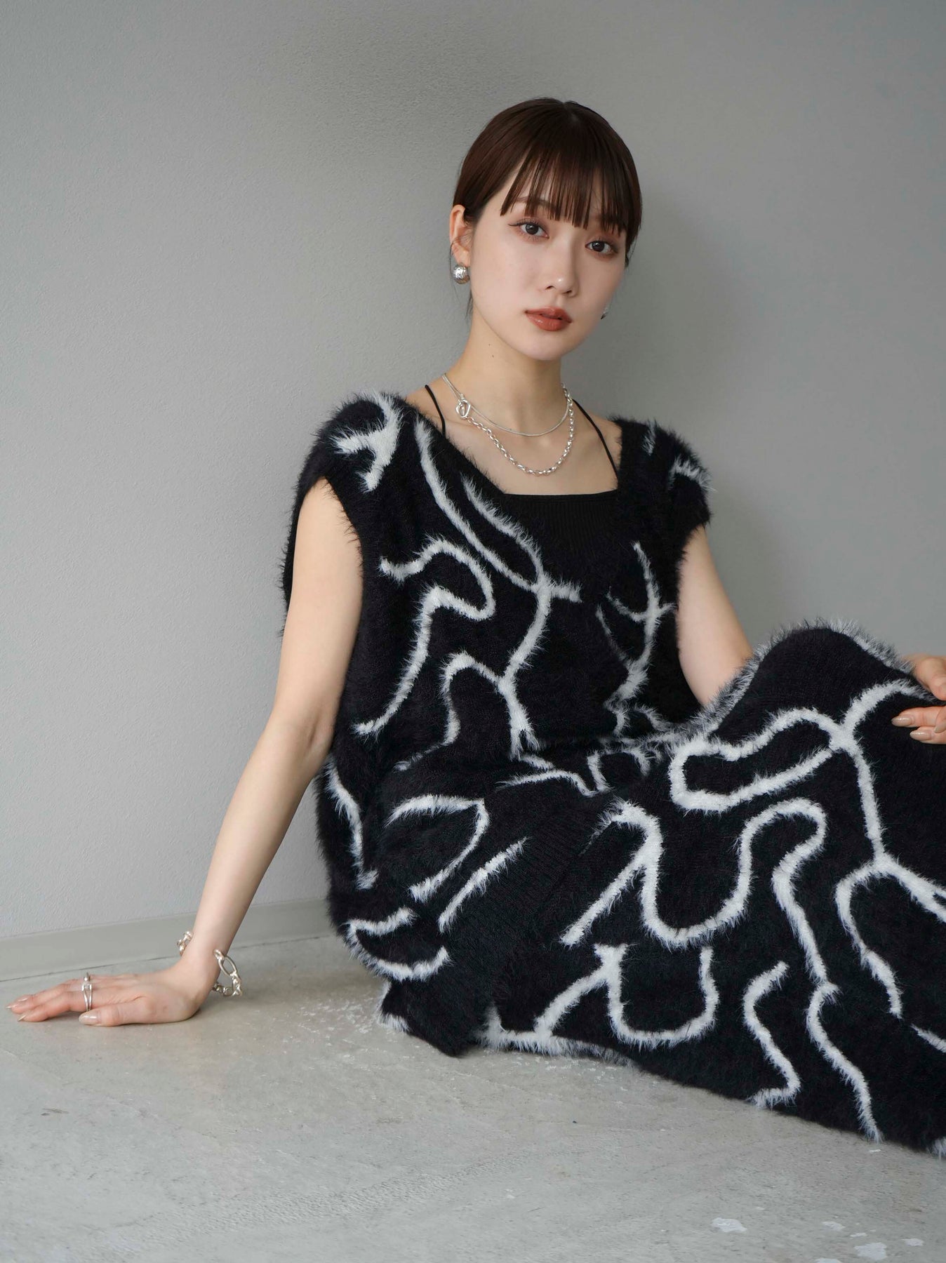由柔軟、毛茸茸的材質製成的針織裙。俏皮的線條設計為您的風格增添個性。鬆緊皮帶使穿著舒適。此款單品可輕鬆搭配休閒或優雅風格。這款時尚洋裝非常適合秋冬季服飾。 ※除下裝、吊帶背心(內衣)以外的所有商品均不包含內衣。