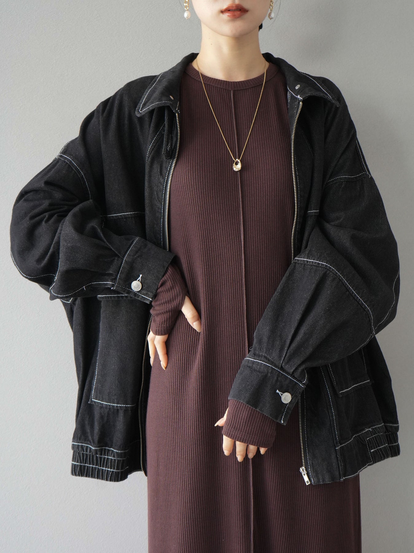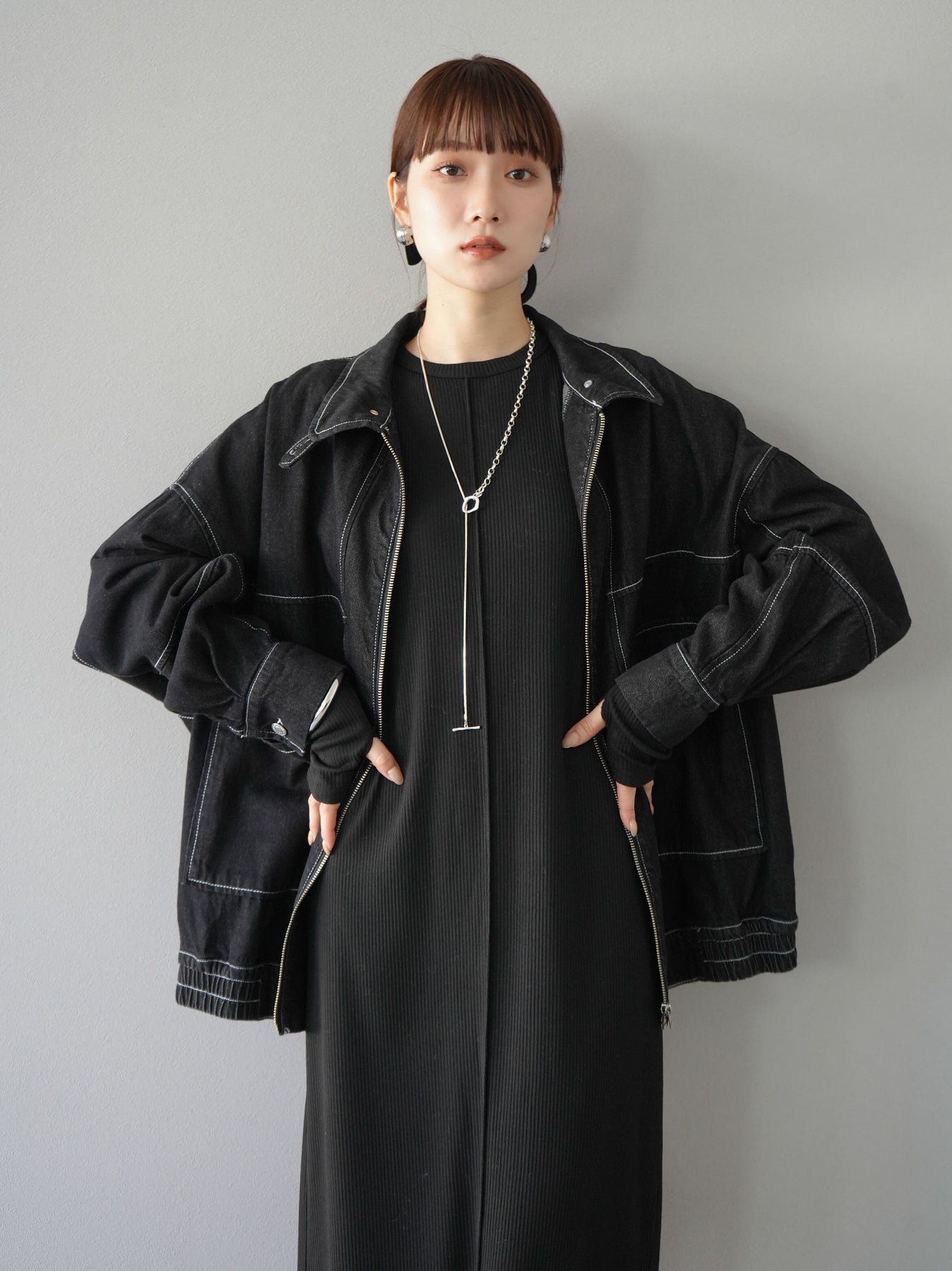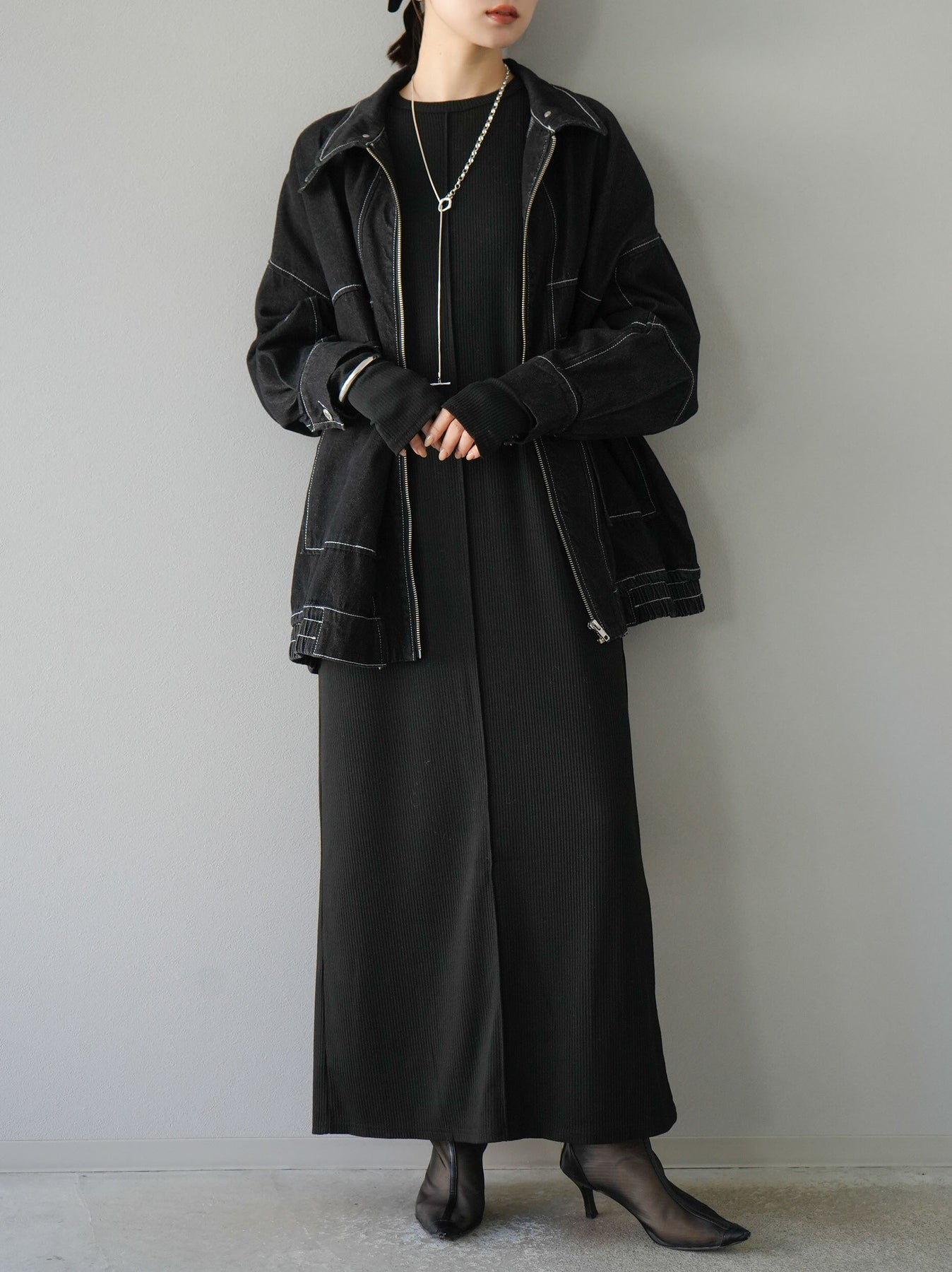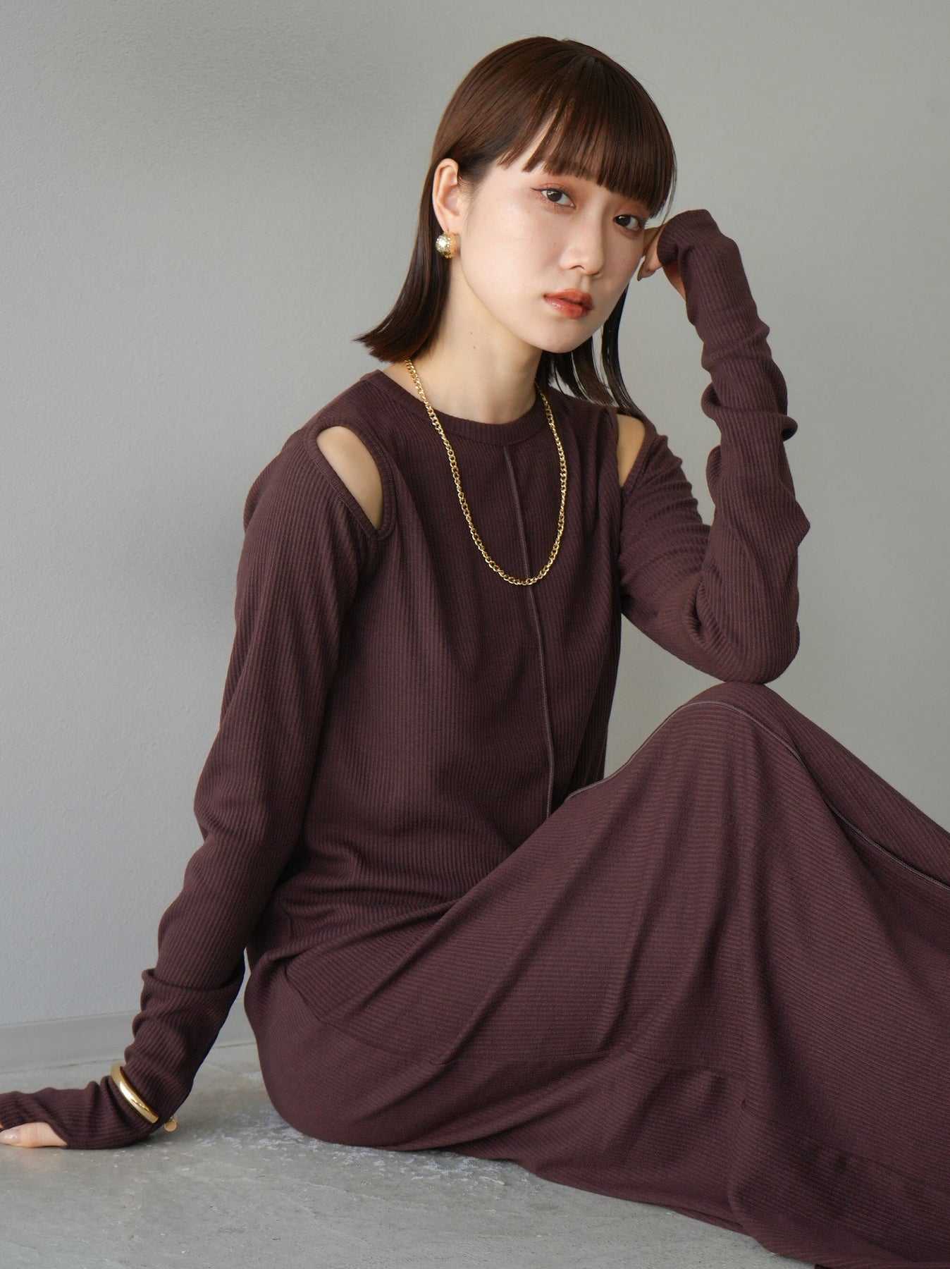 羅紋長袖連身裙,採用時尚剪裁設計。完美貼合和彈性材質打造出女性化的輪廓。袖口上的拇指孔增添了時尚感。有多種風格可供選擇,從休閒到優雅。 *除下裝和吊帶背心(內衣)以外的產品都是統一的,不包括內衣。