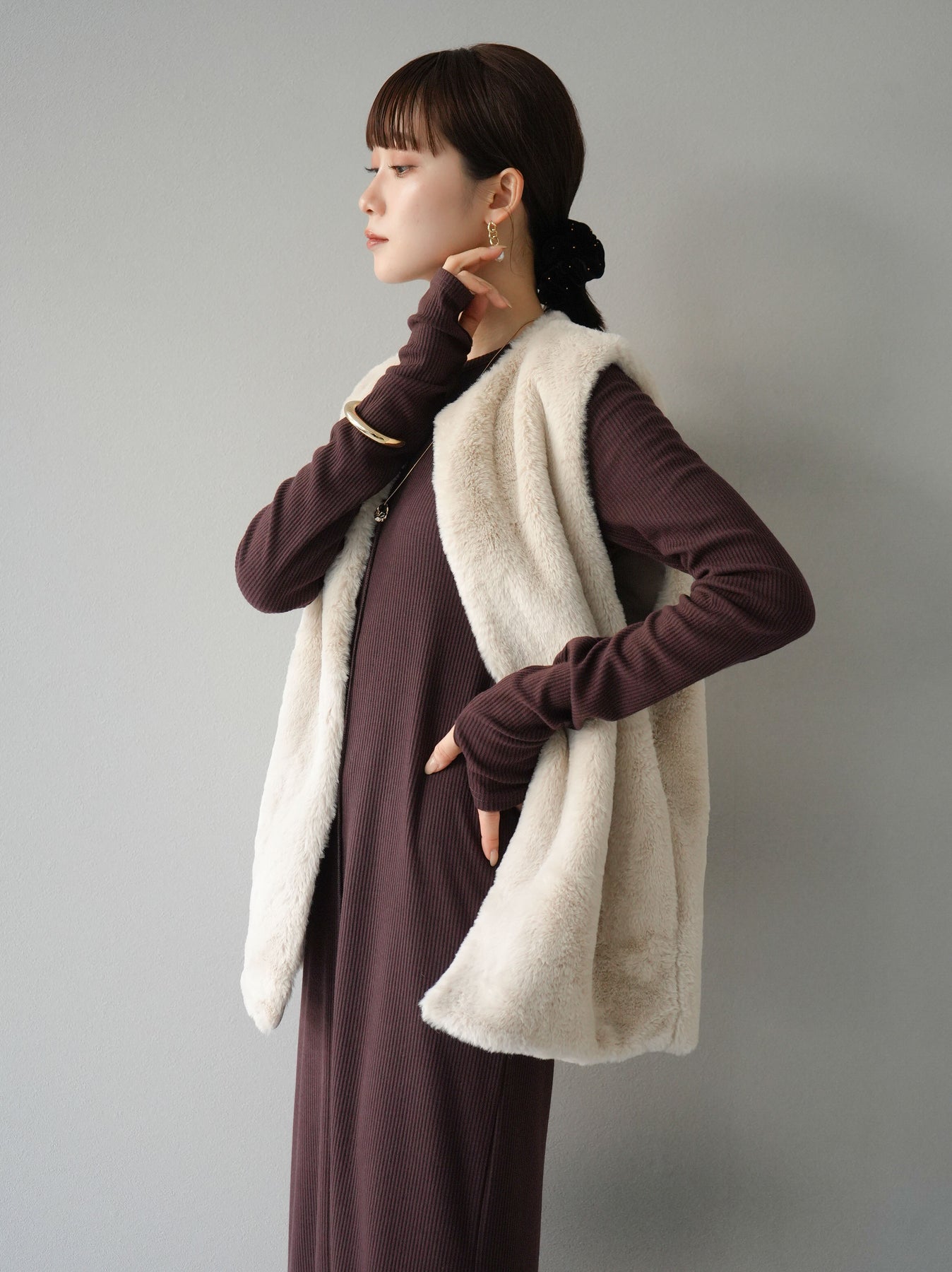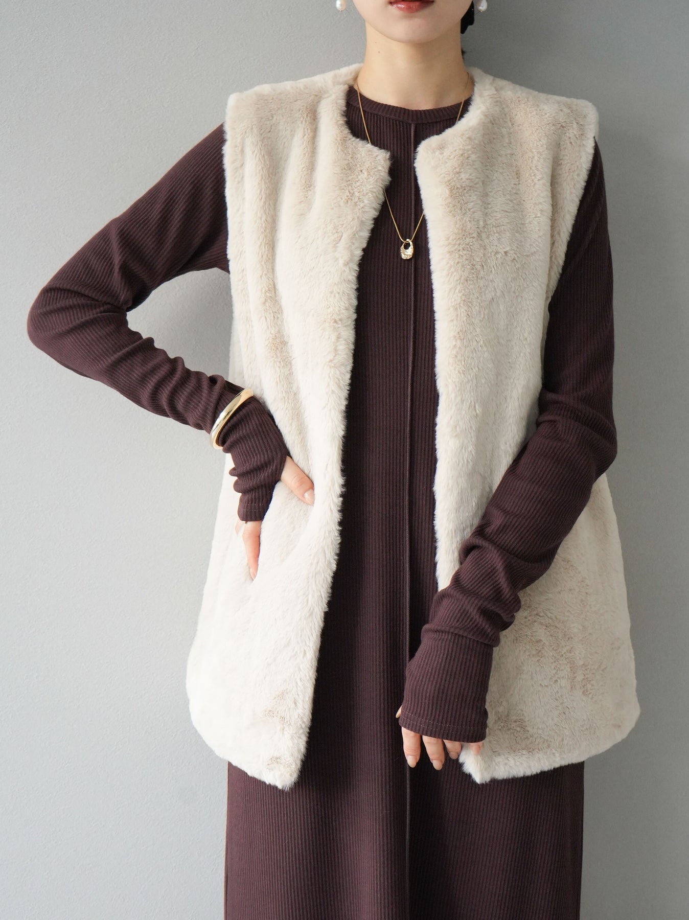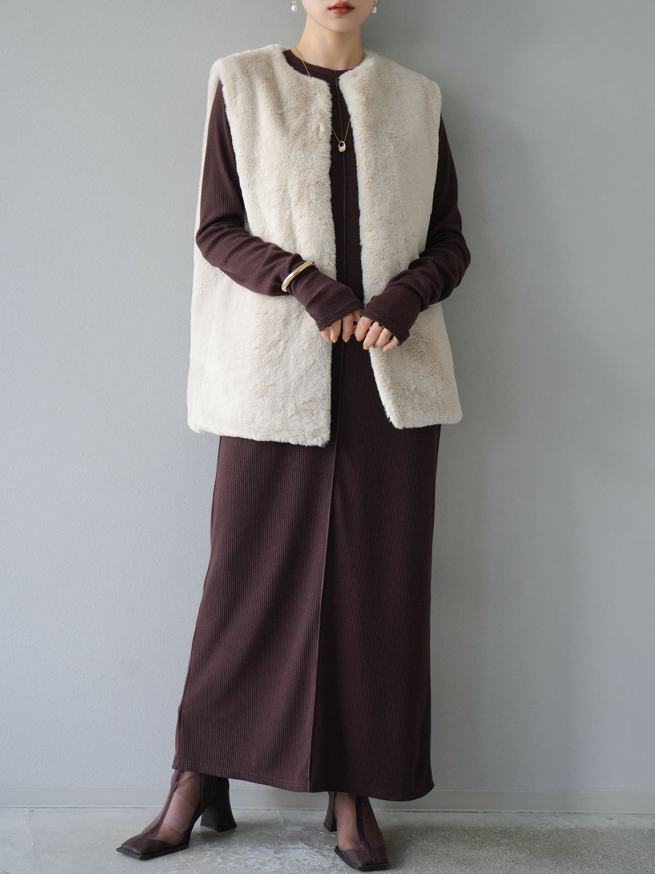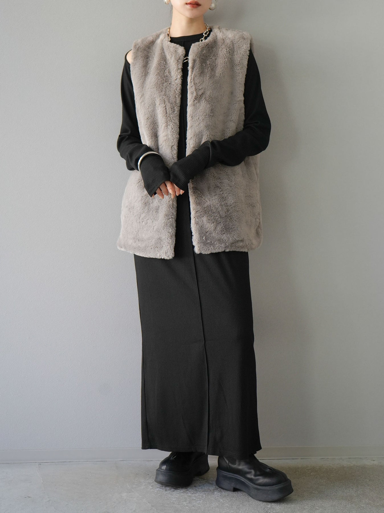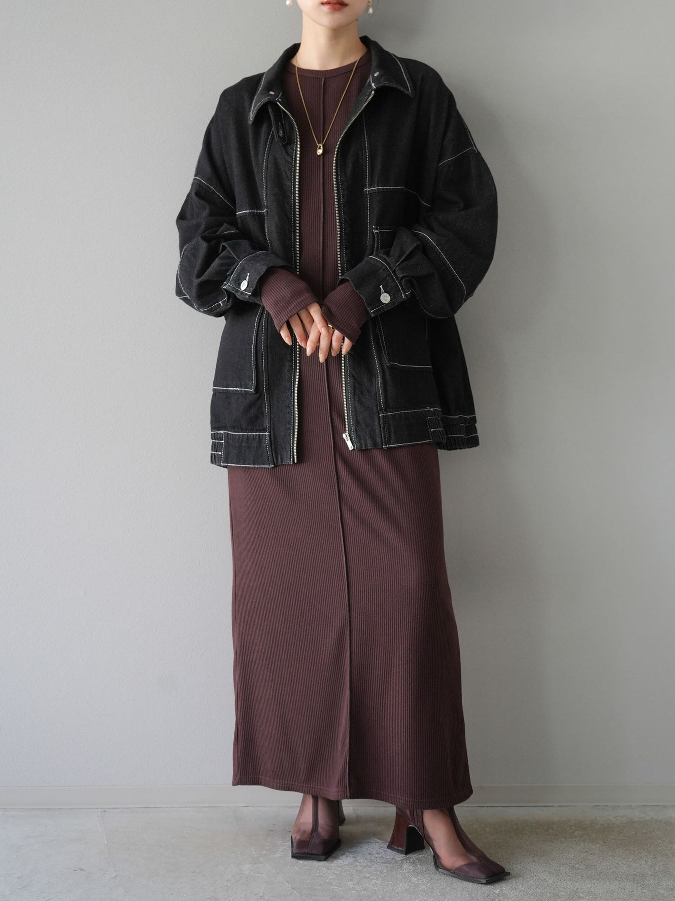 羅紋長袖連身裙,採用時尚剪裁設計。完美貼合和彈性材質打造出女性化的輪廓。袖口上的拇指孔增添了時尚感。有多種風格可供選擇,從休閒到優雅。 *除下裝和吊帶背心(內衣)以外的產品都是統一的,不包括內衣。