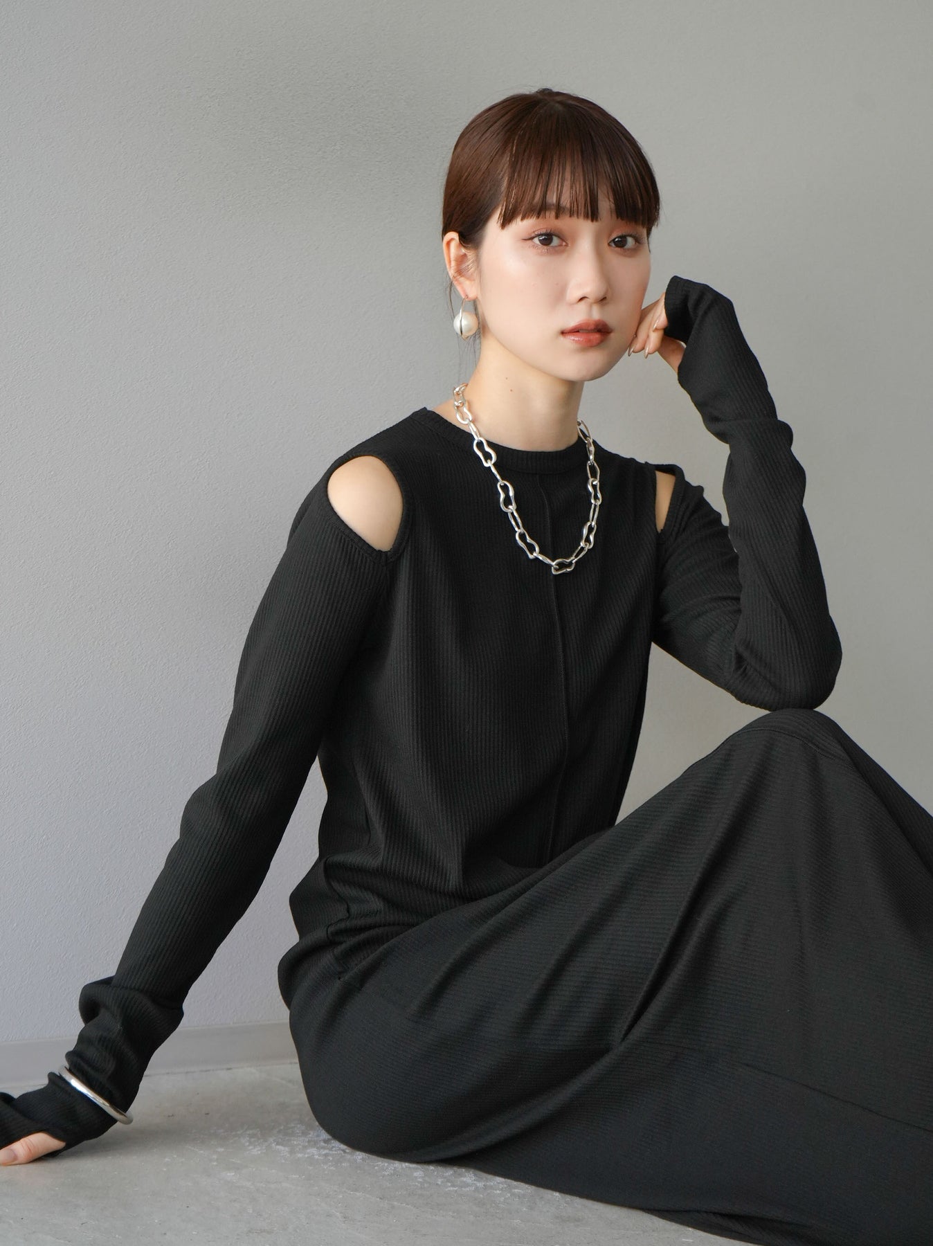 [SET] 鏤空羅紋長袖洋裝+可選配件套裝(2套)