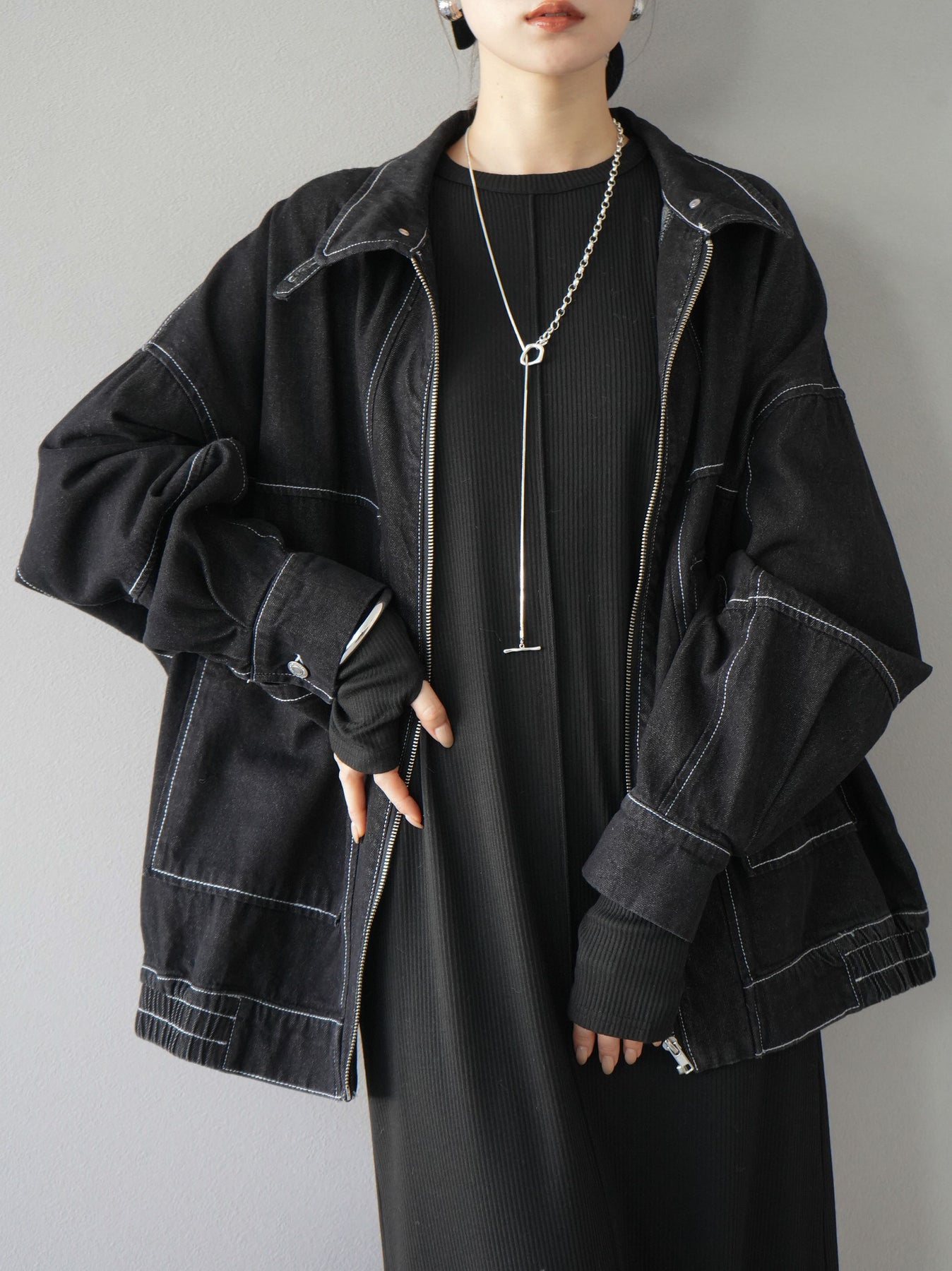 肩寬 33cm 胸圍 88cm 腰圍 88cm AH38cm 袖長 73cm 衣長 127cm 有襯裡 不透視 有鬆緊 無口袋 有拇指孔