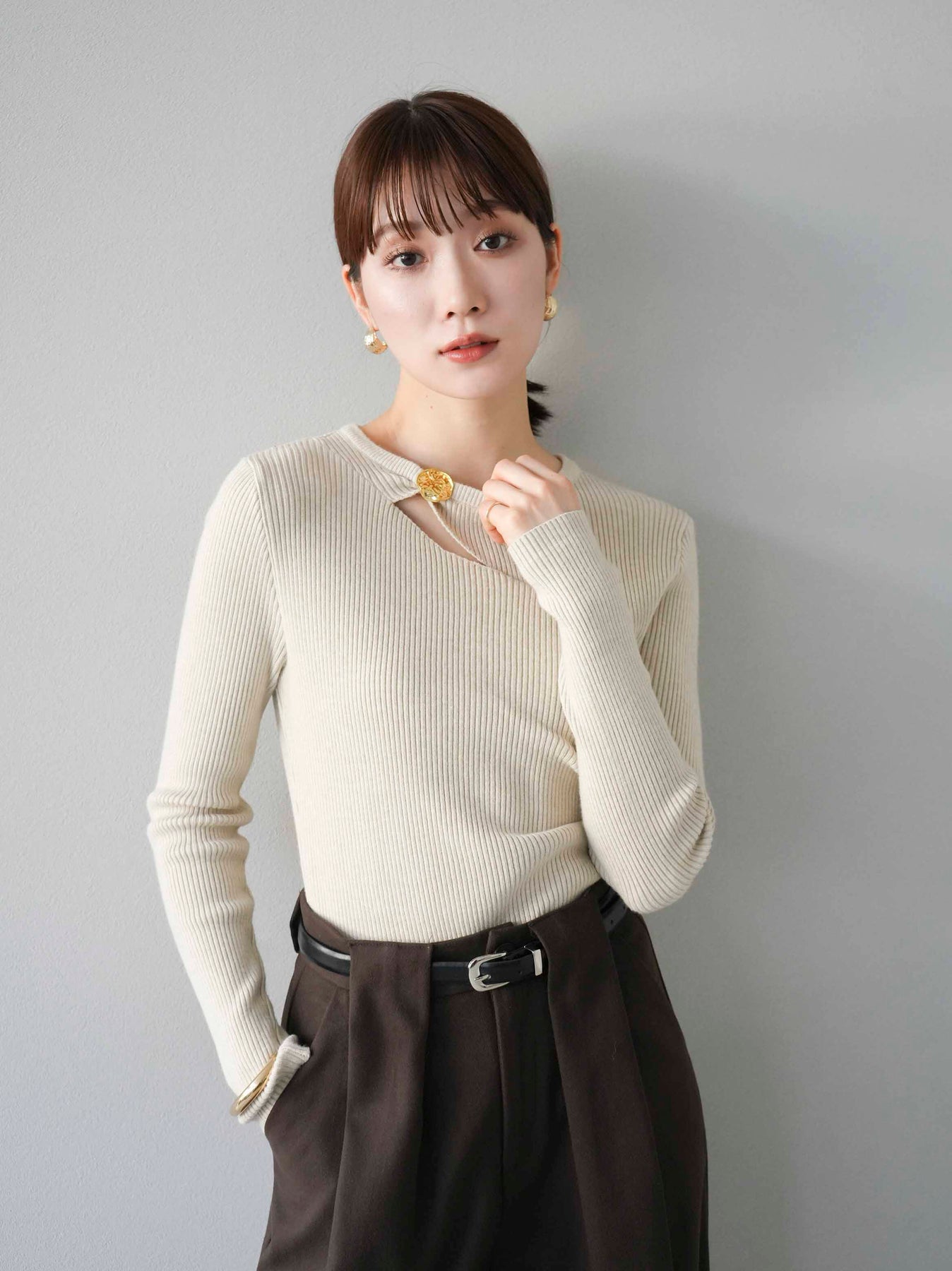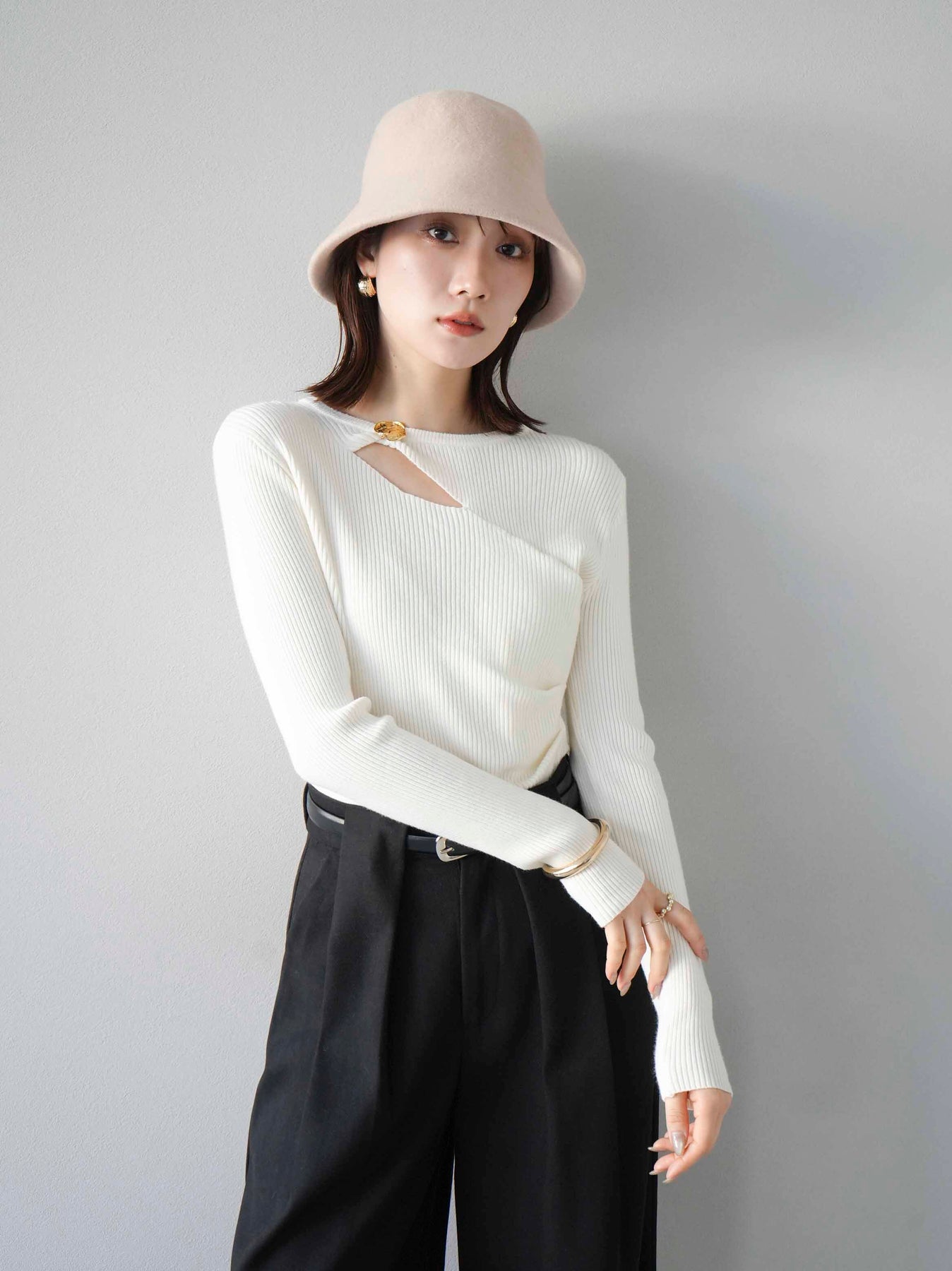 羅紋上衣,帶有流行的金色圖案。胸部線條精緻,凸顯您的女性氣質。這款單品設計簡約而獨特,非常適合作為您服裝的點綴。 ※除下裝、吊帶背心(內衣)以外的商品均為標準品,不含內衣。