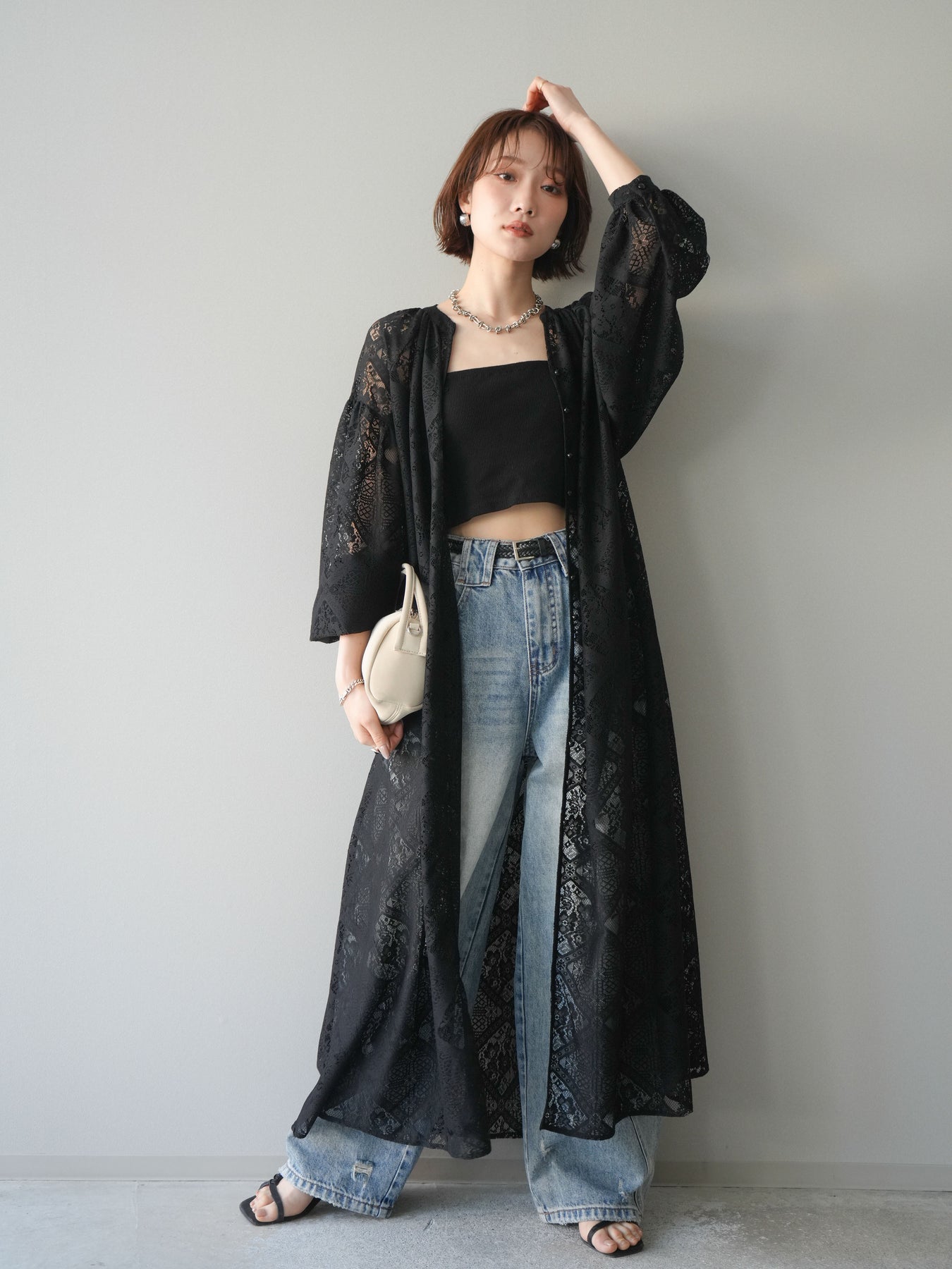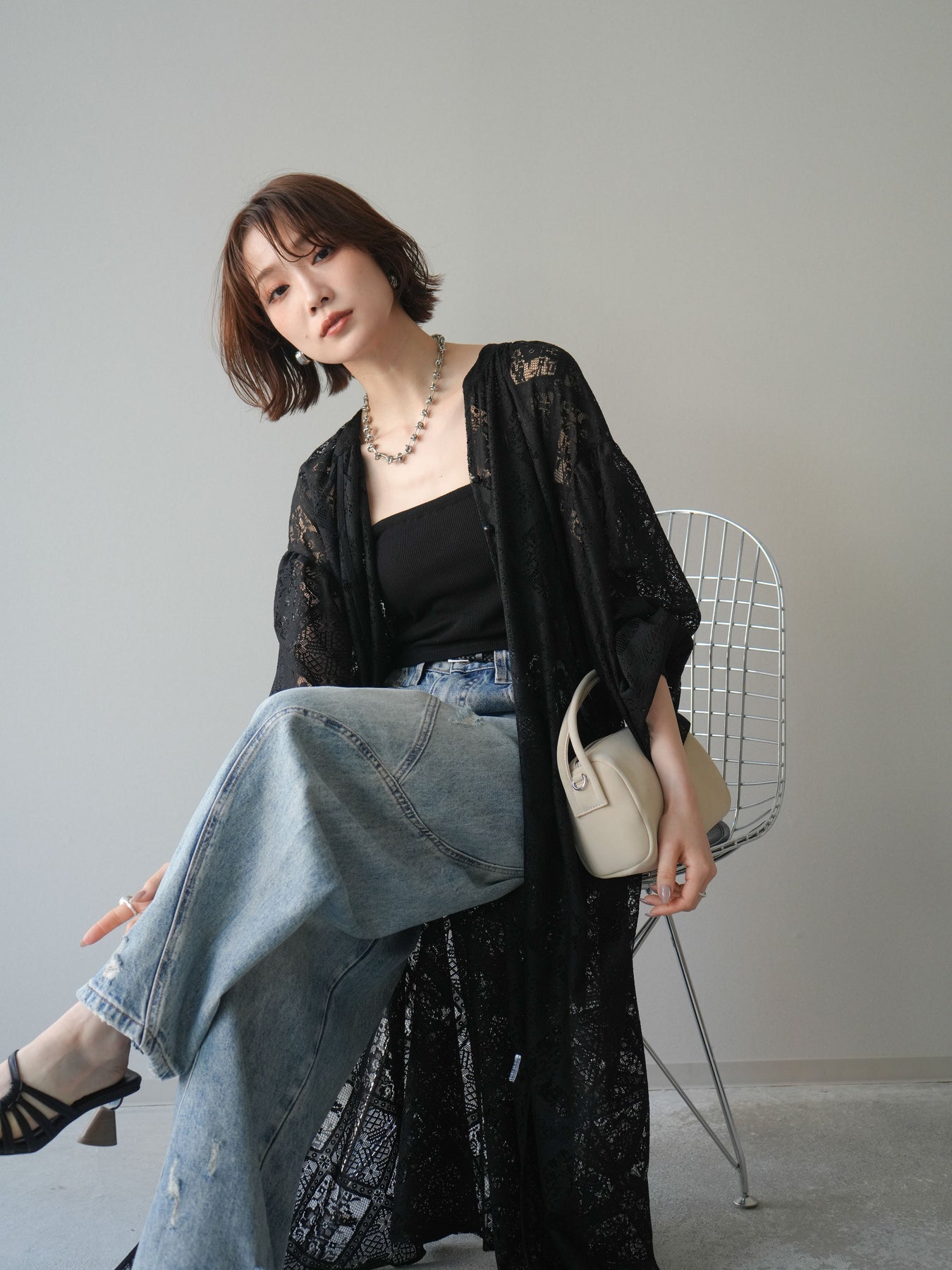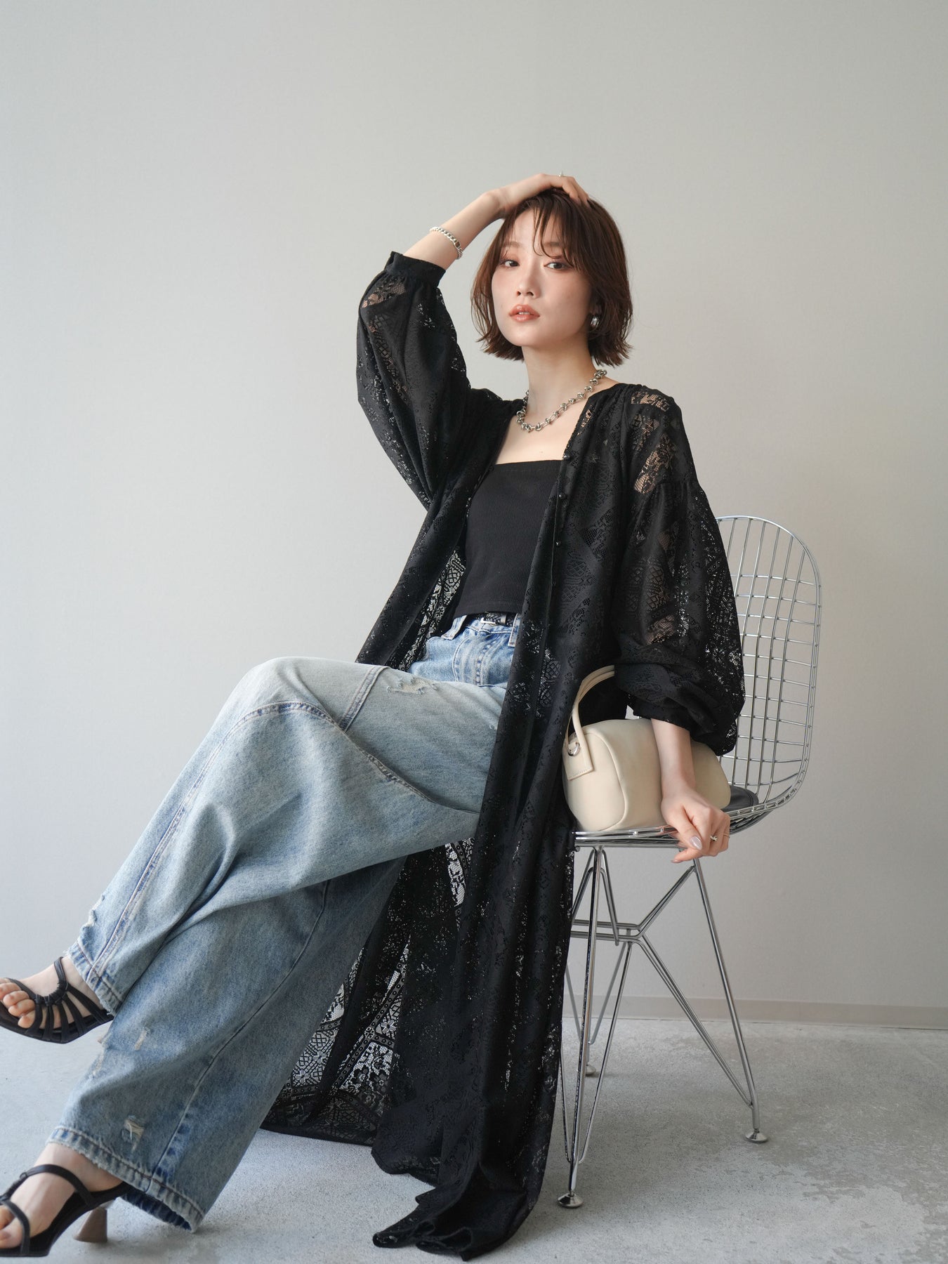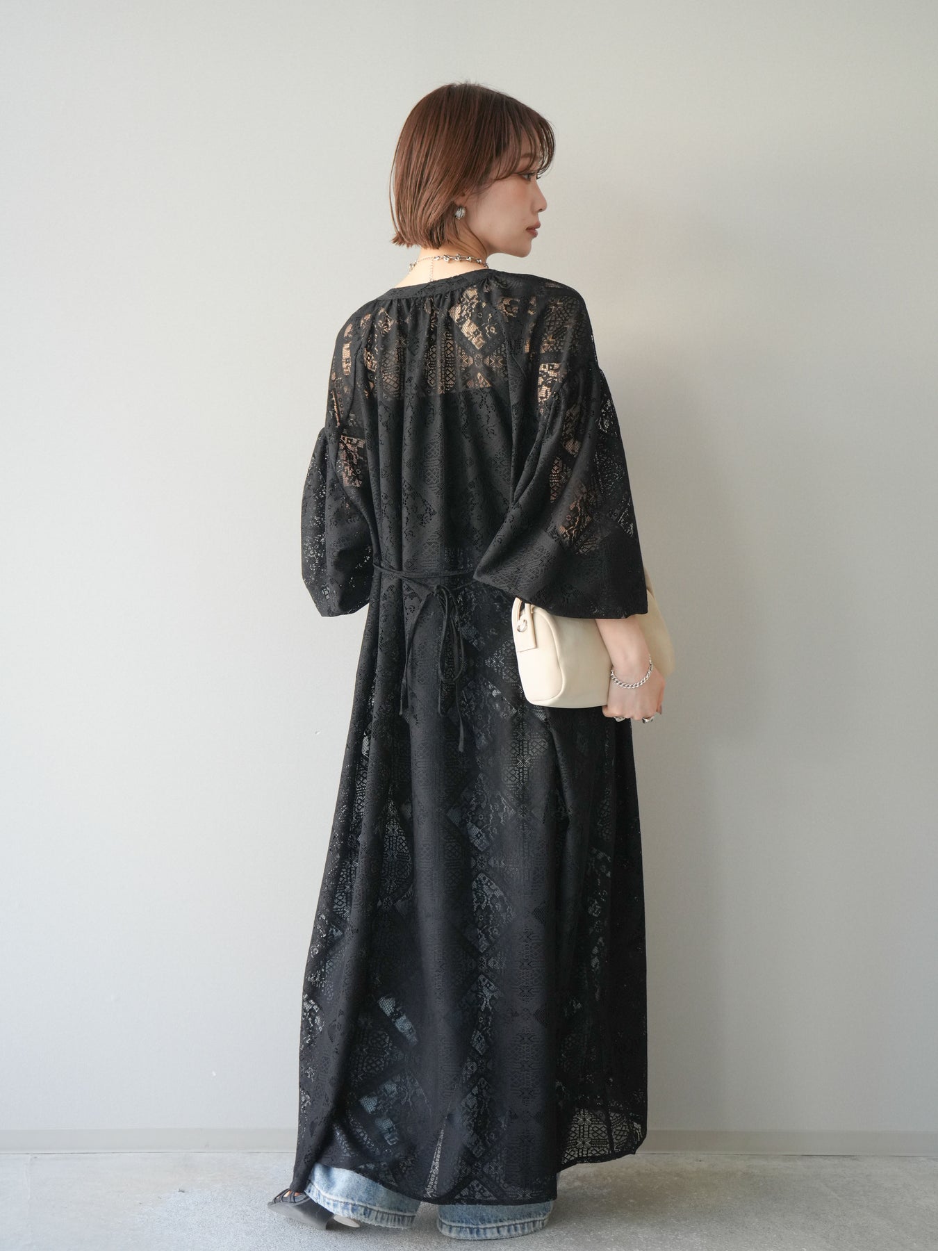 這款長裙採用奢華精緻的蕾絲布料製成。這款輕薄透氣的上衣,只需隨意披上,就能為任何造型增添一絲優雅。寬鬆的版型,腰間飾有緞帶,可調式鬆緊,打造更顯身材的造型。前開襟設計,方便穿脫,疊穿在洋裝或褲裝外,更顯精緻優雅。這款百搭單品適合各種場合,從日常穿著到特殊場合,都能輕鬆駕馭,四季皆宜。 *請注意,除下裝和吊帶背心(內衣)外,其他商品均不包含內衣。