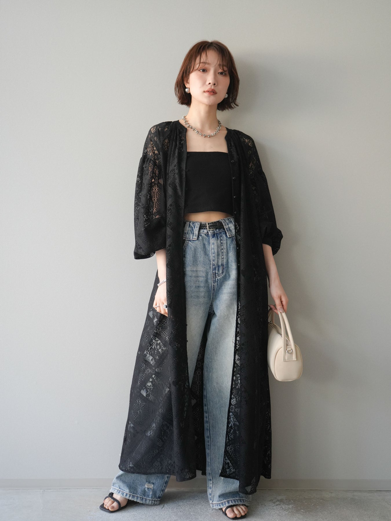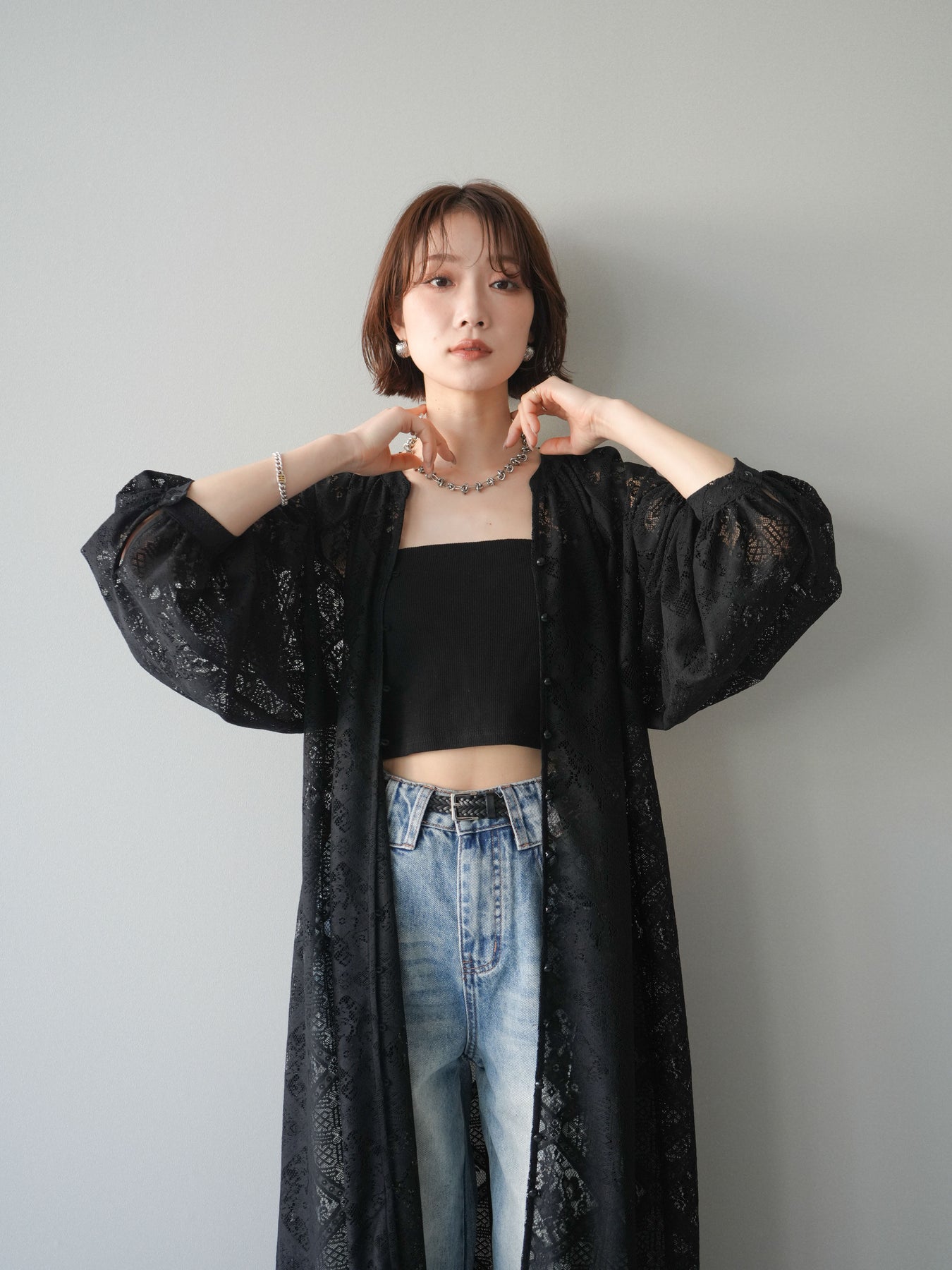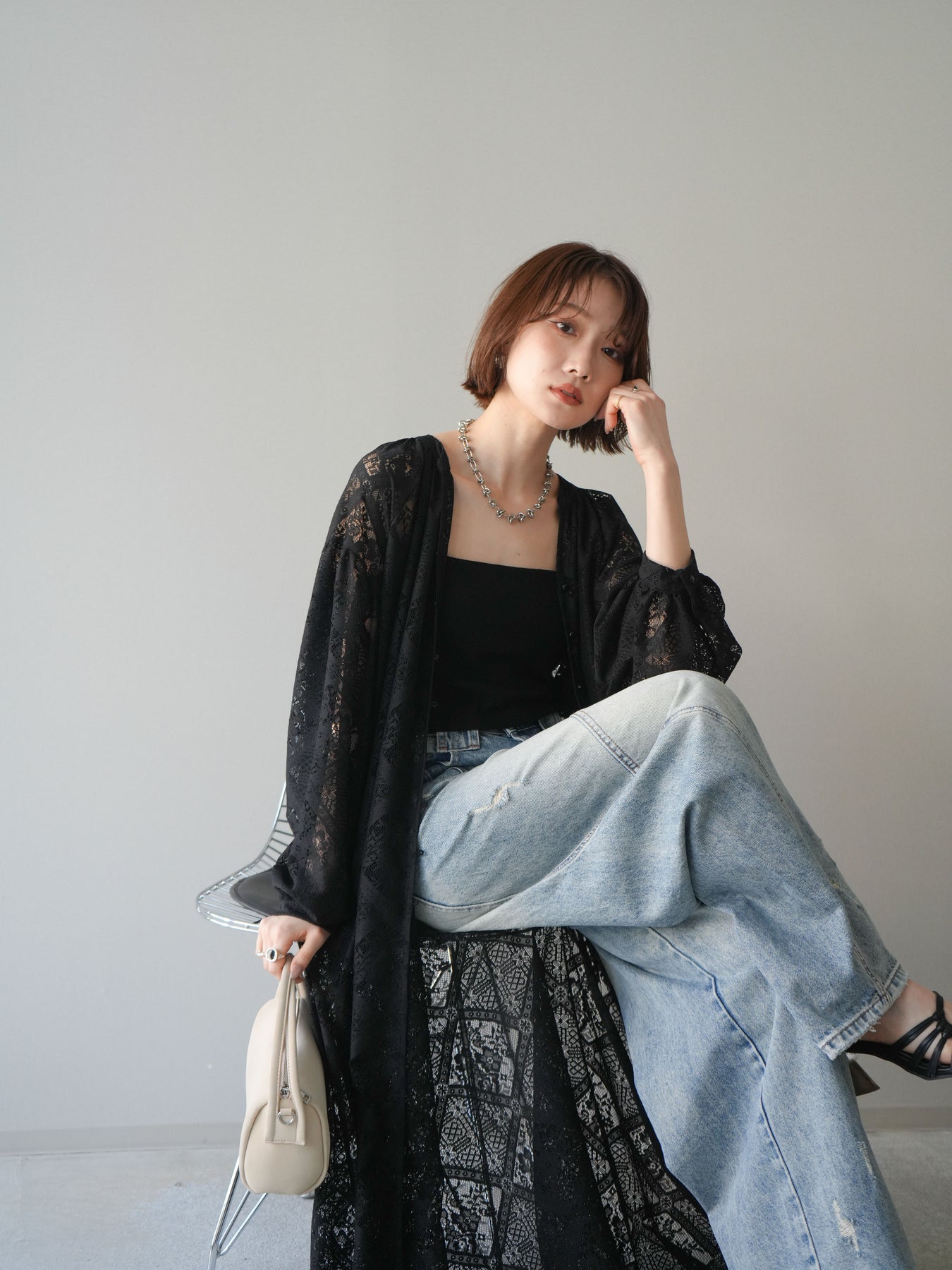 這款長裙採用奢華精緻的蕾絲布料製成。這款輕薄透氣的上衣,只需隨意披上,就能為任何造型增添一絲優雅。寬鬆的版型,腰間飾有緞帶,可調式鬆緊,打造更顯身材的造型。前開襟設計,方便穿脫,疊穿在洋裝或褲裝外,更顯精緻優雅。這款百搭單品適合各種場合,從日常穿著到特殊場合,都能輕鬆駕馭,四季皆宜。 *請注意,除下裝和吊帶背心(內衣)外,其他商品均不包含內衣。