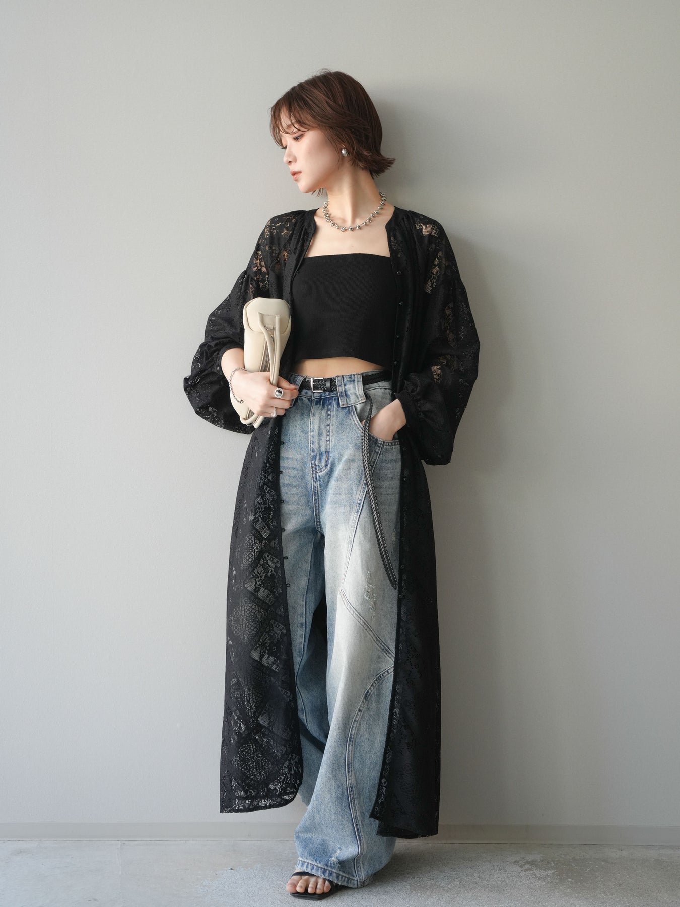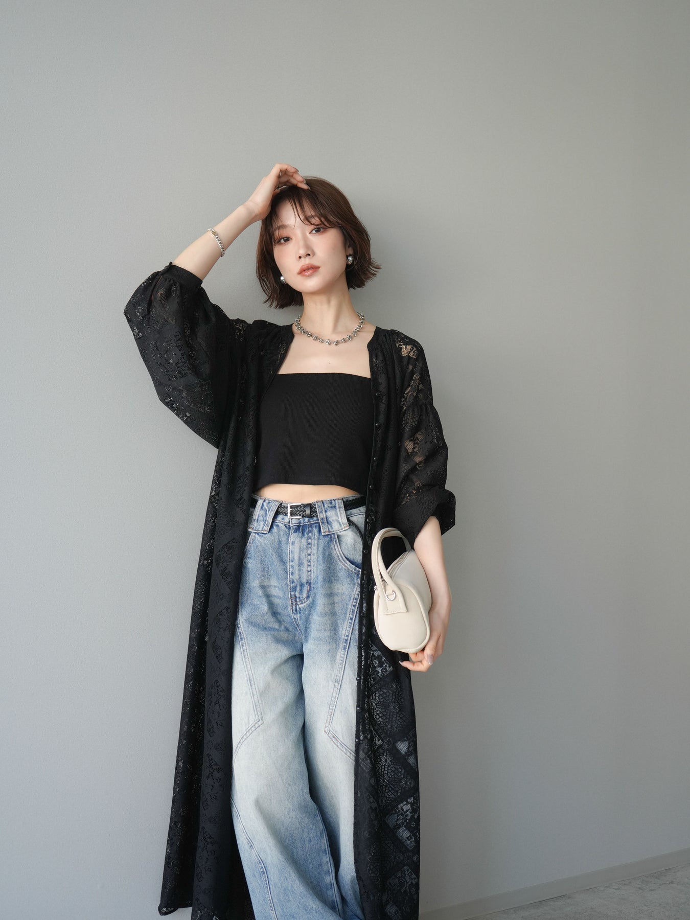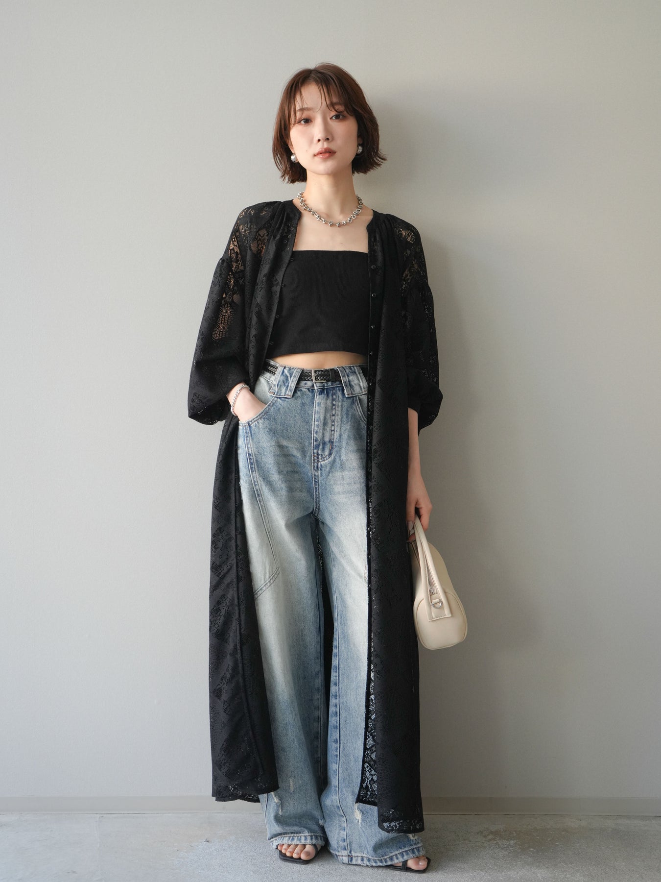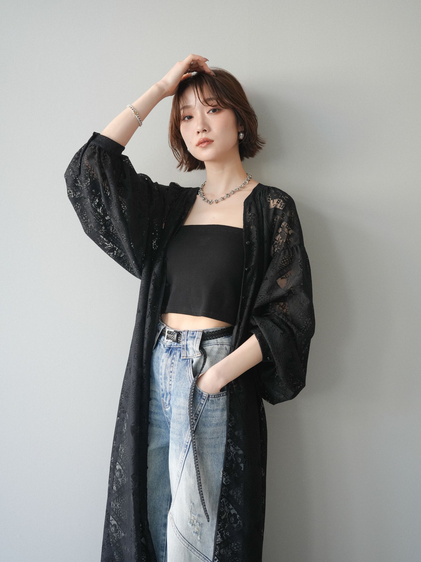 這款長裙採用奢華精緻的蕾絲布料製成。這款輕薄透氣的上衣,只需隨意披上,就能為任何造型增添一絲優雅。寬鬆的版型,腰間飾有緞帶,可調式鬆緊,打造更顯身材的造型。前開襟設計,方便穿脫,疊穿在洋裝或褲裝外,更顯精緻優雅。這款百搭單品適合各種場合,從日常穿著到特殊場合,都能輕鬆駕馭,四季皆宜。 *請注意,除下裝和吊帶背心(內衣)外,其他商品均不包含內衣。