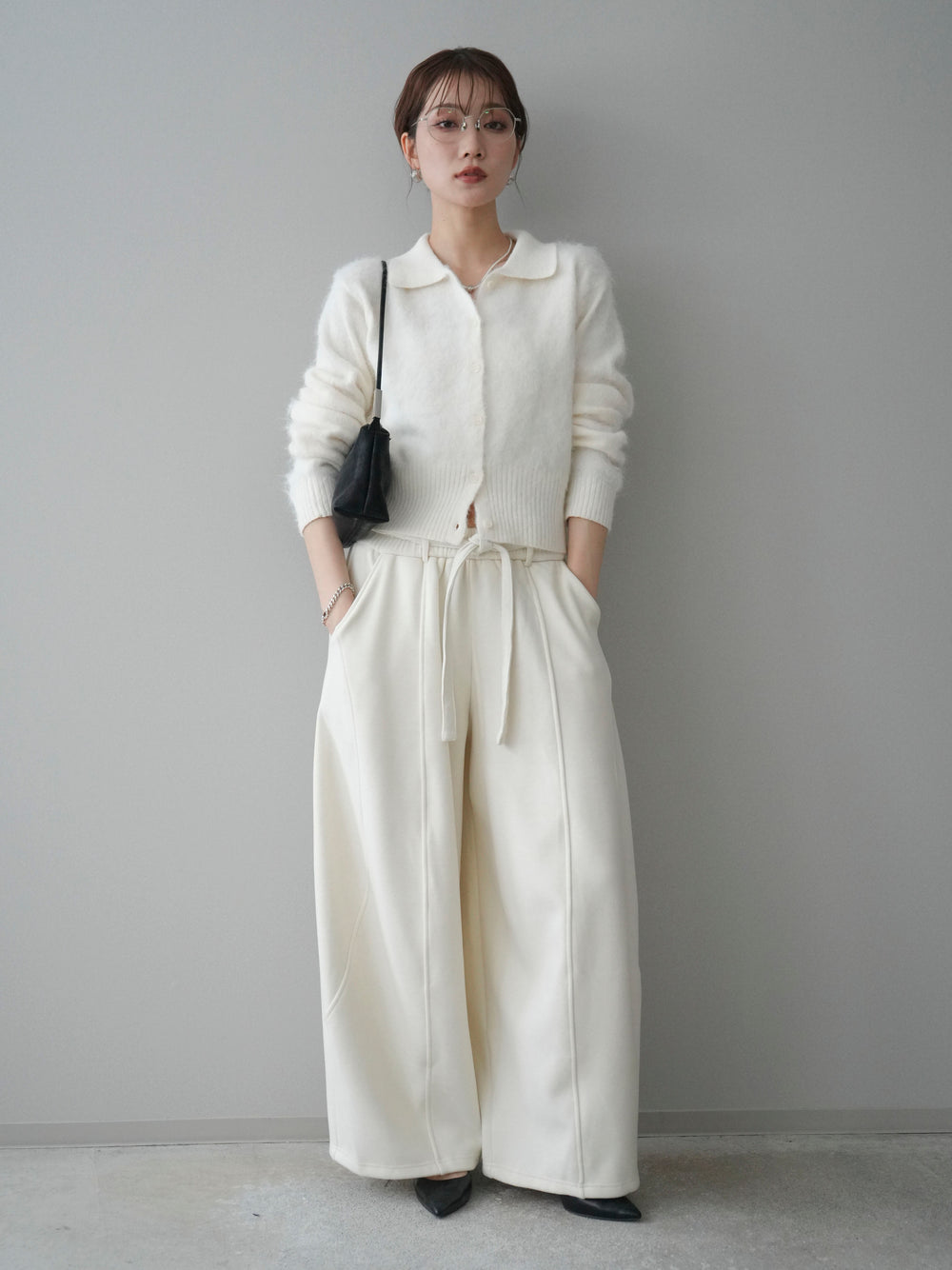 [SET]モヘア衿付きボタンプルオーバー+ウエストベルトカーブラインスエットパンツ(2set)