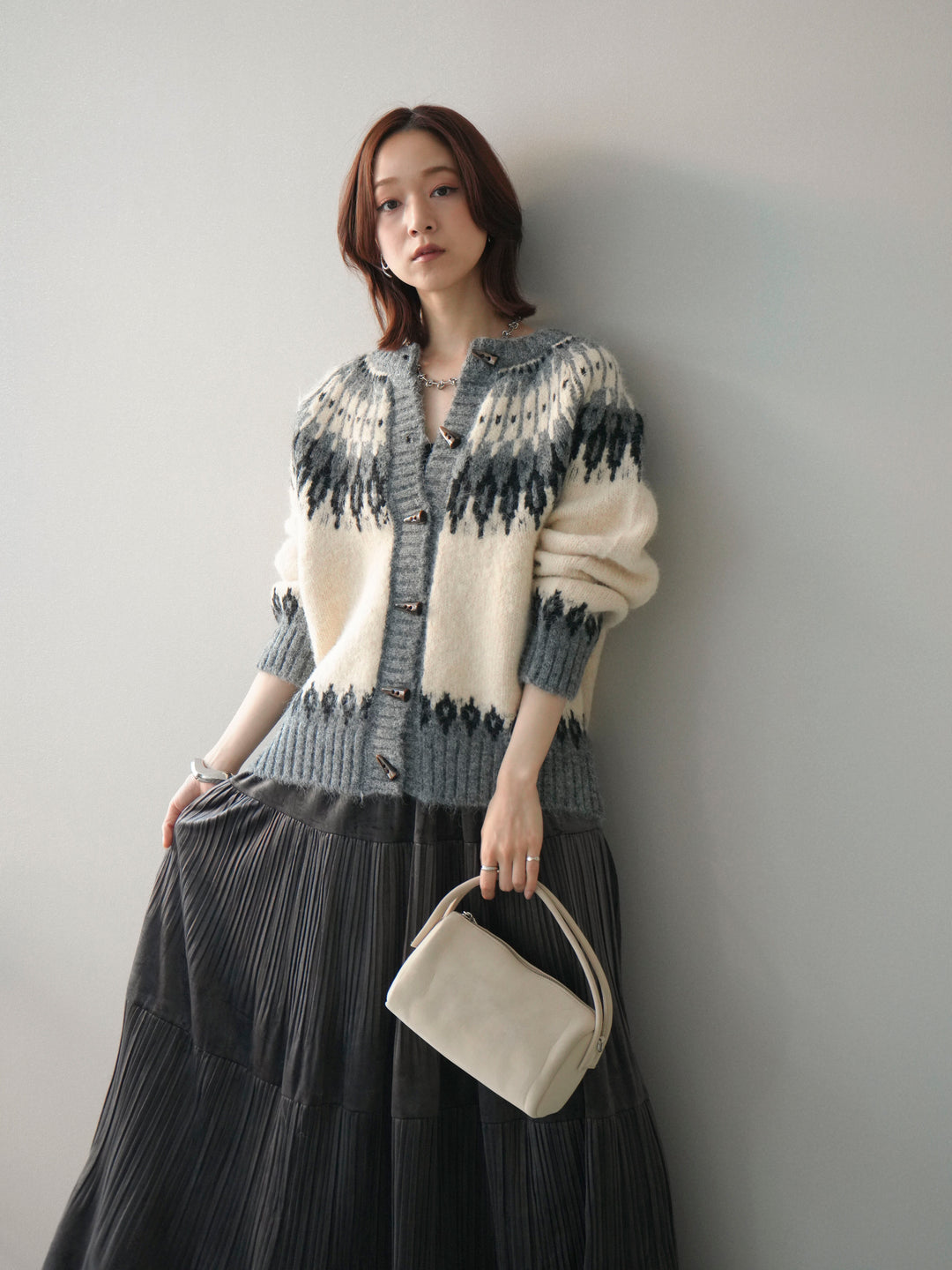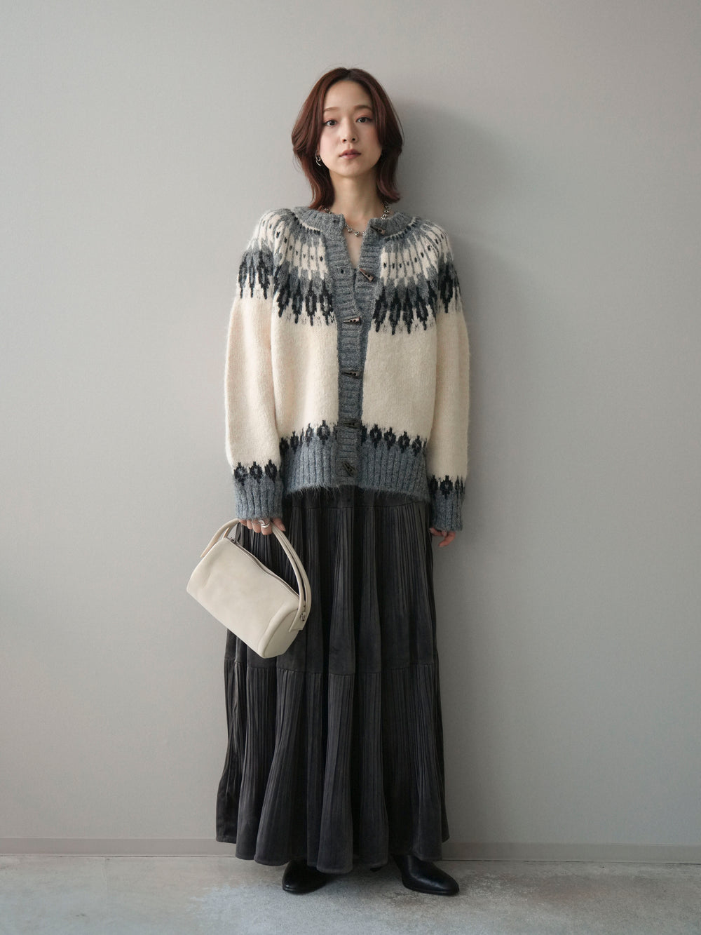 [SET]トグルボタン求心柄ニットカーディガン+ベロアティアードワッシャースカート(2set)