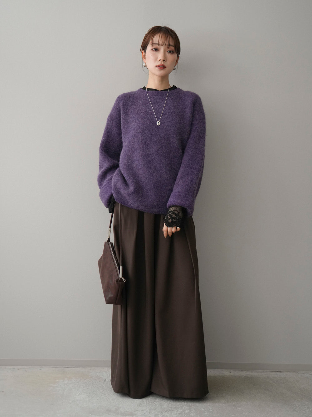 [SET]モヘア衿付きボタンプルオーバー+テープベルトタックバギーパンツ(2set)