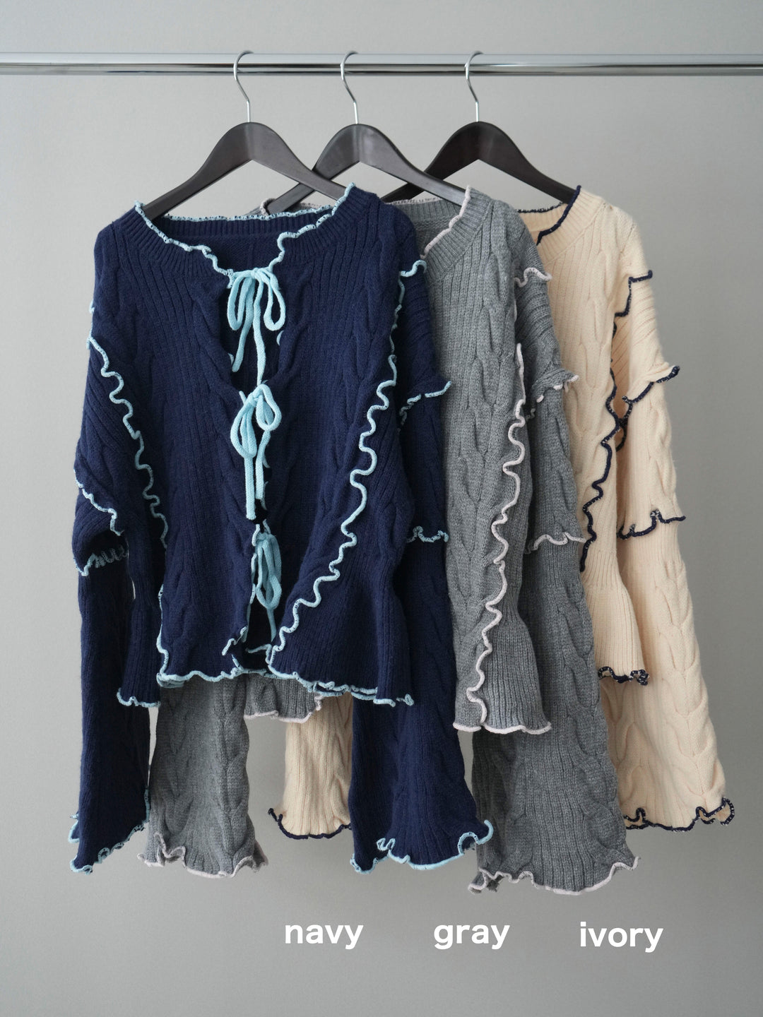 [SET]フロントリボン配色メローニットカーディガン+フロントリボン配色メローニットカーディガン(2set)