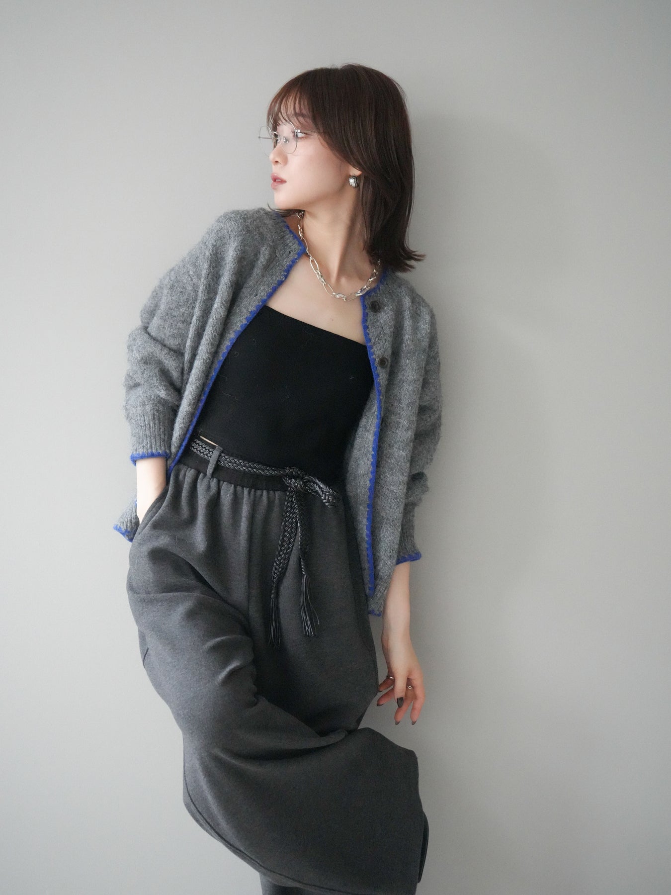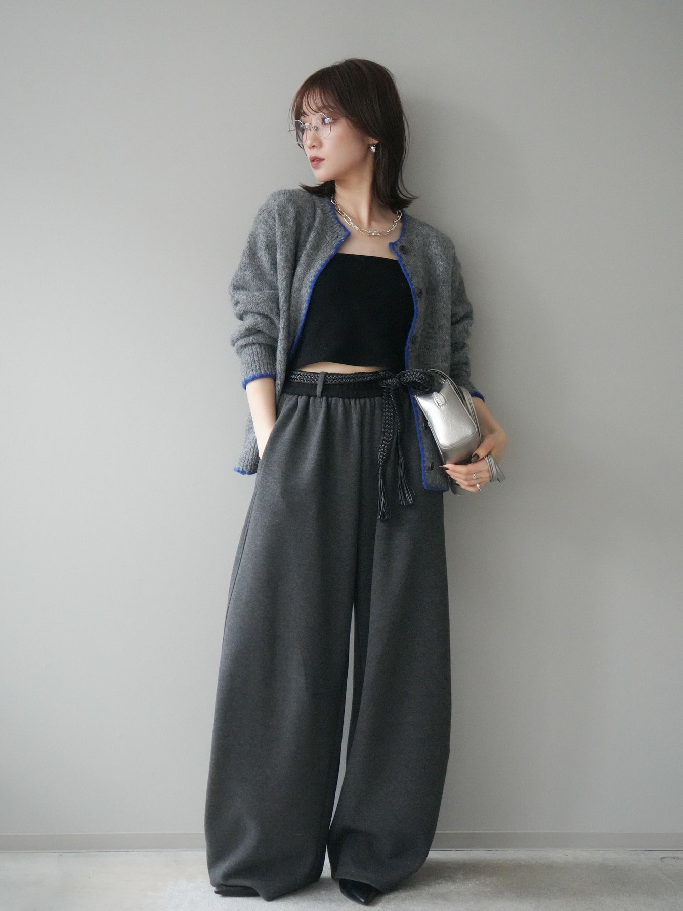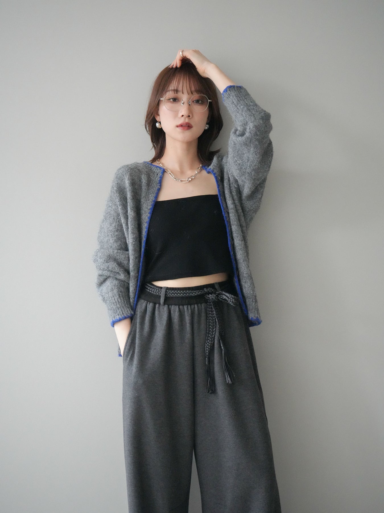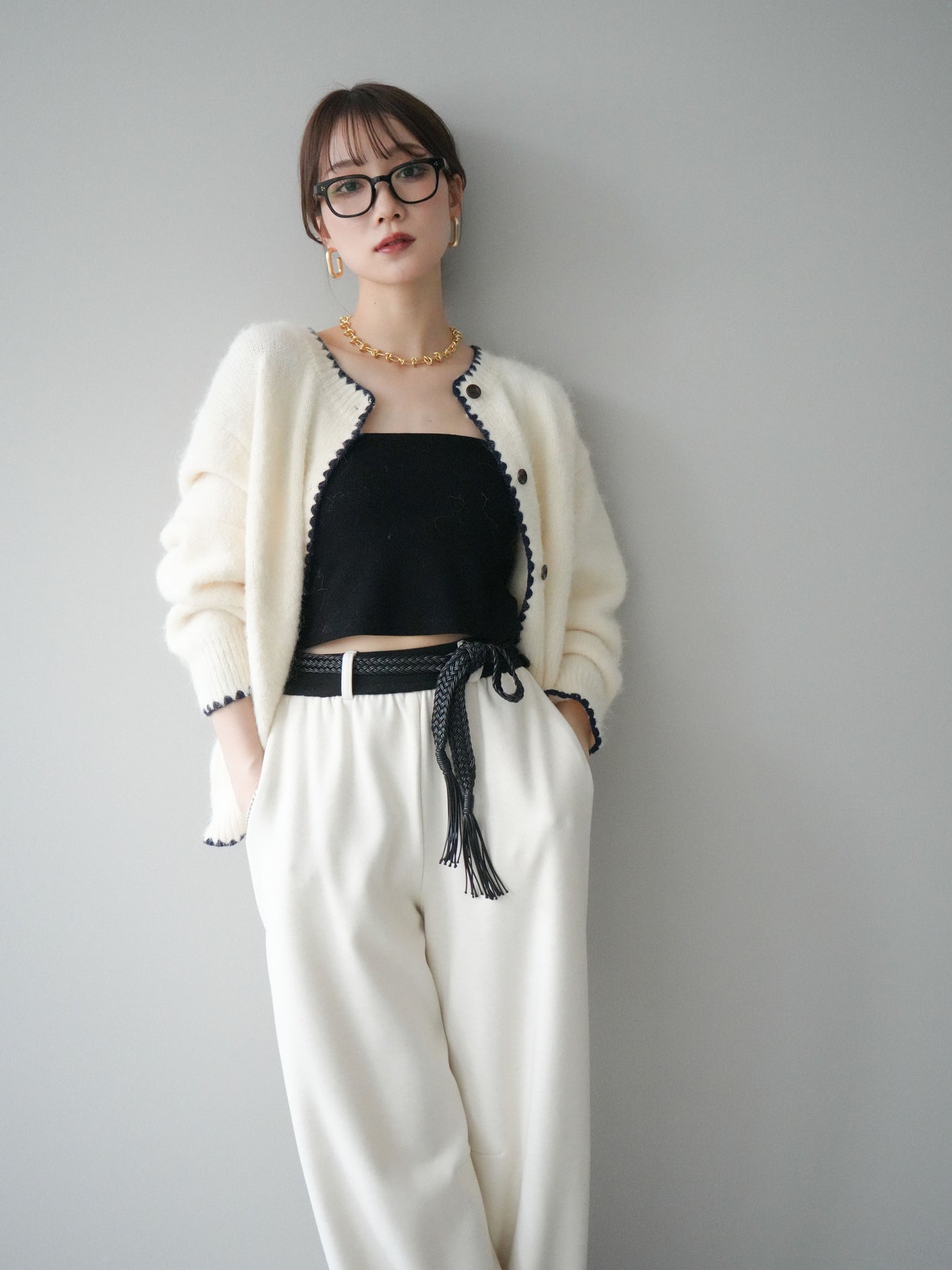 ◆ [予約]編み込みベルト付きウエスト配色スエットパンツ