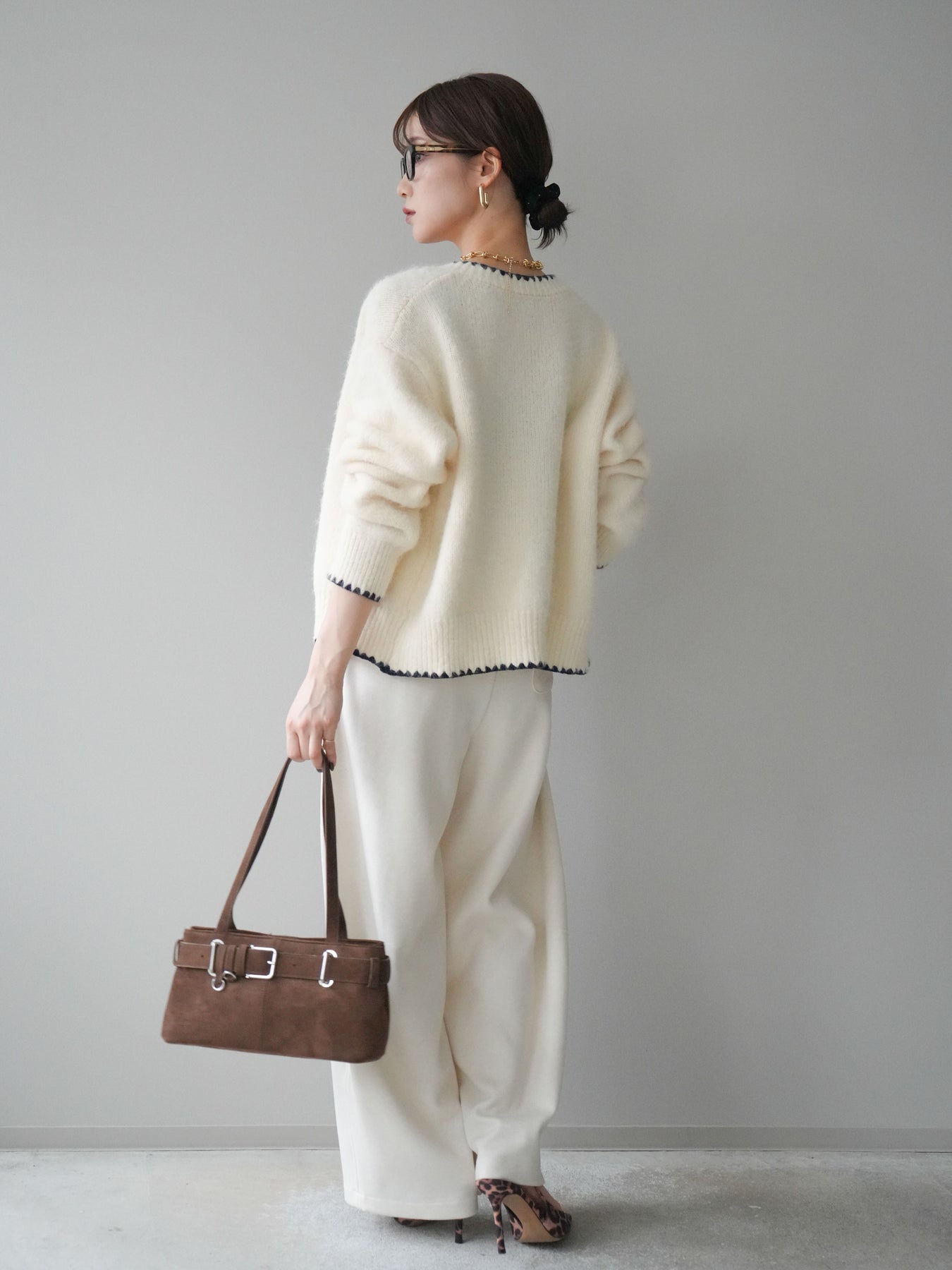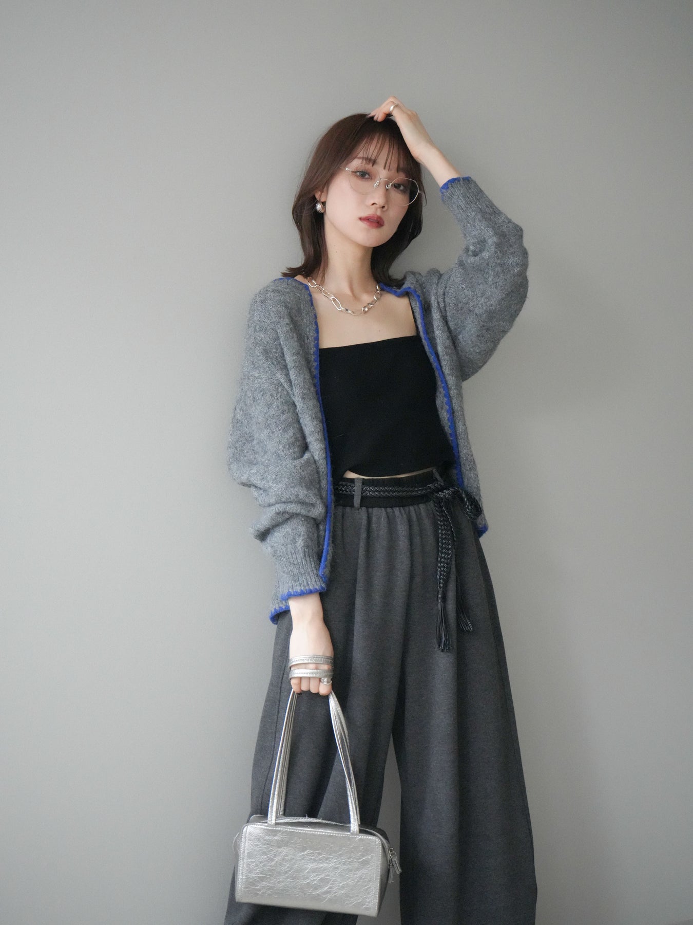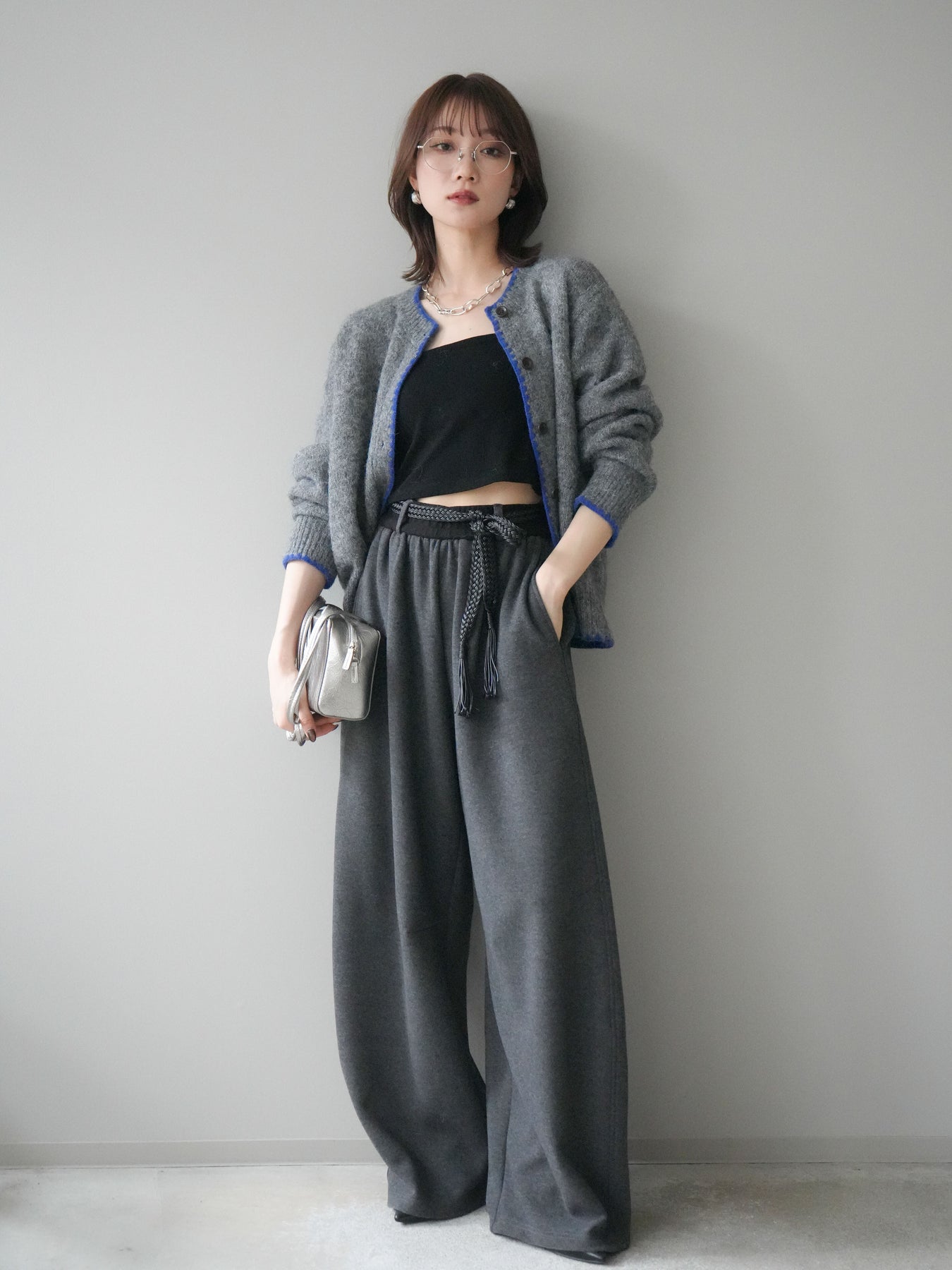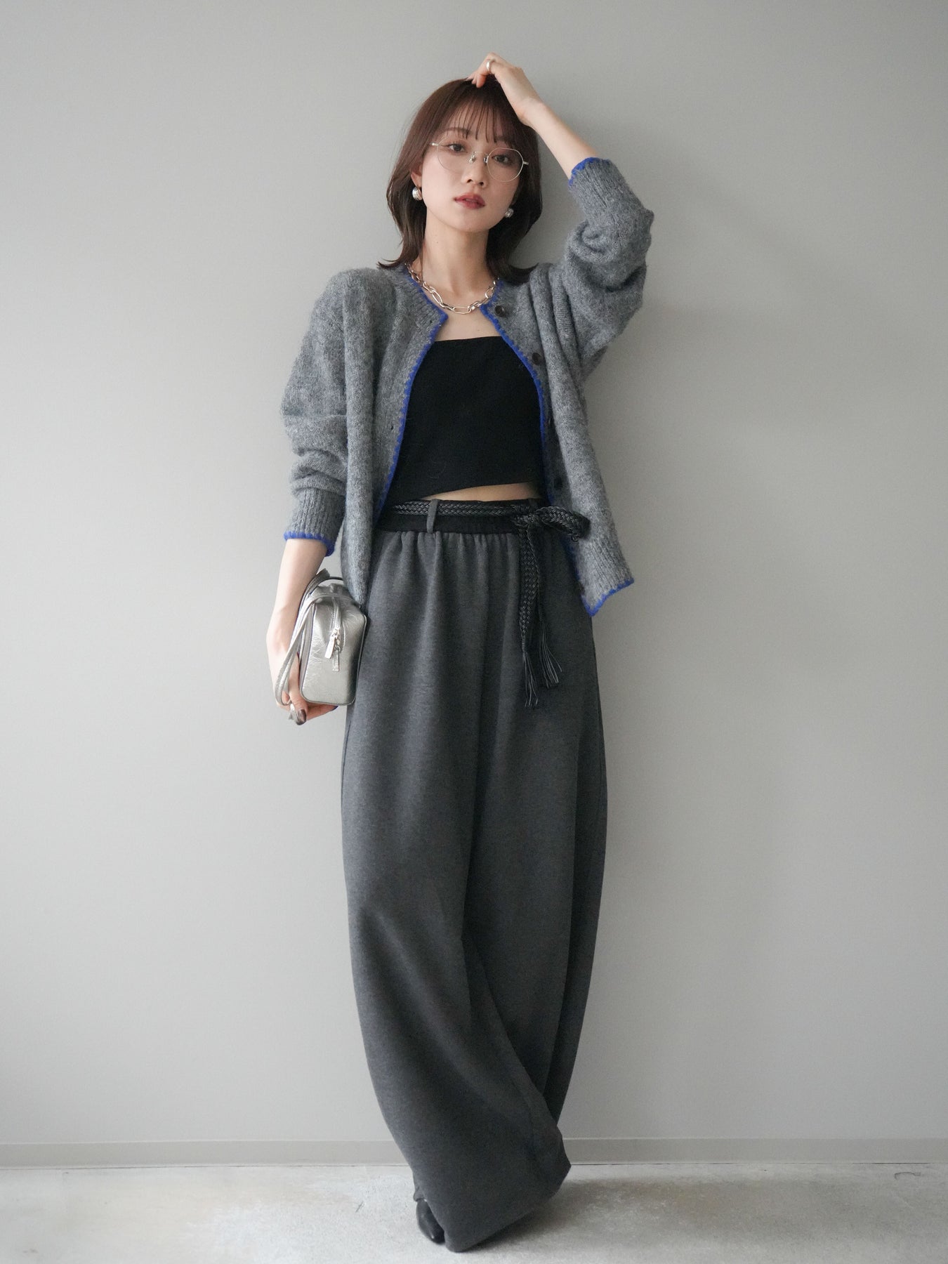 ◆ [予約]編み込みベルト付きウエスト配色スエットパンツ
