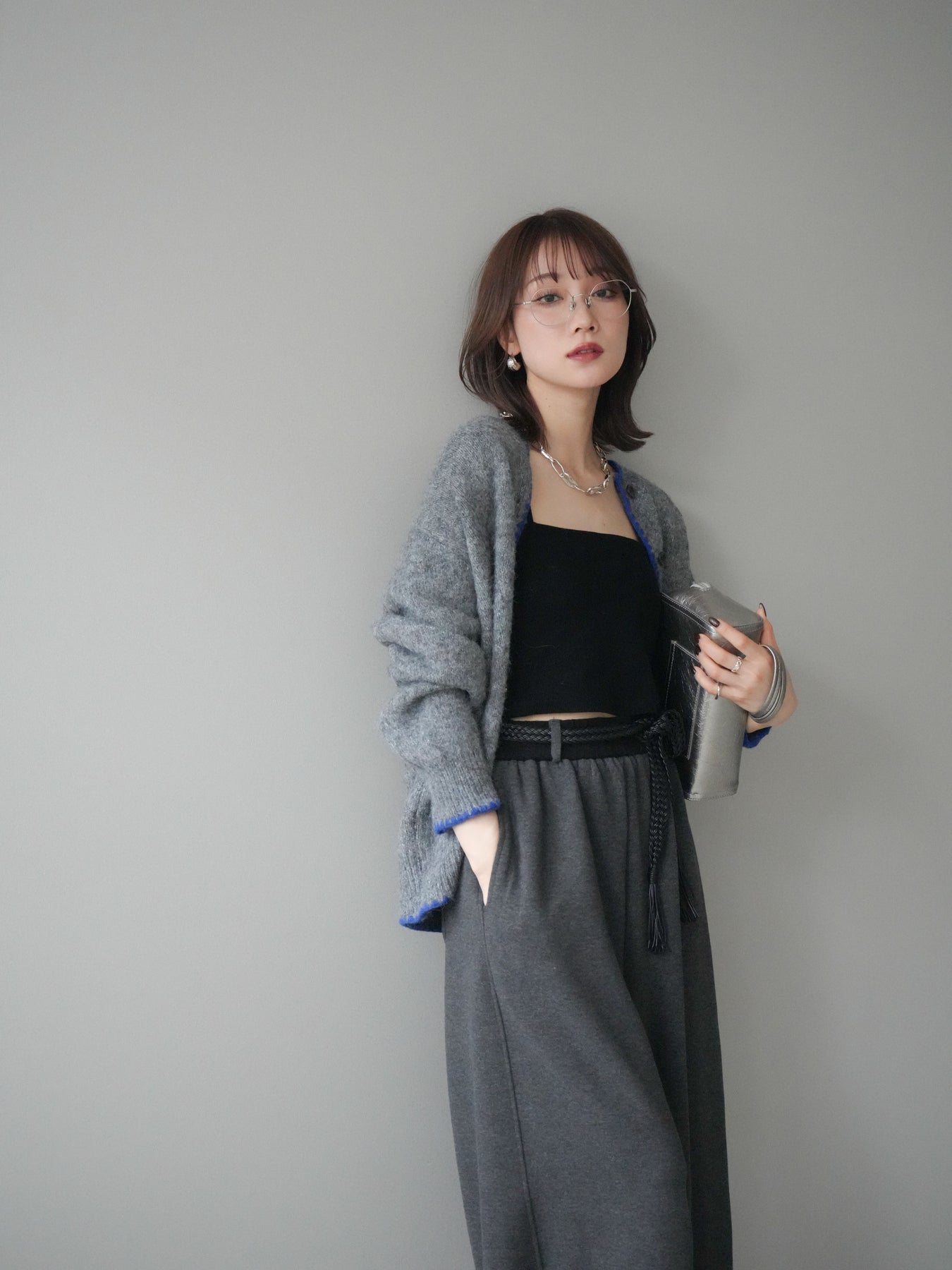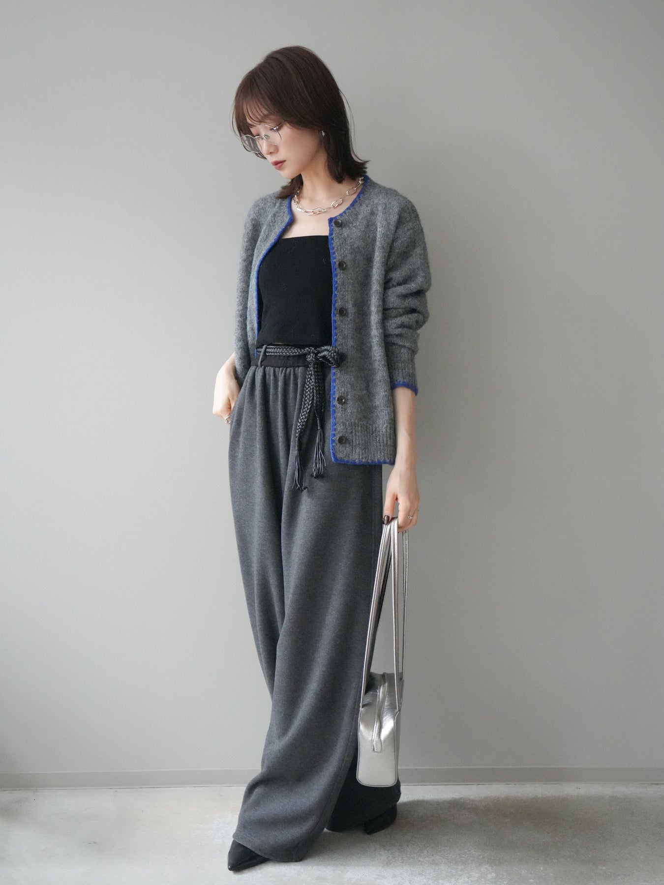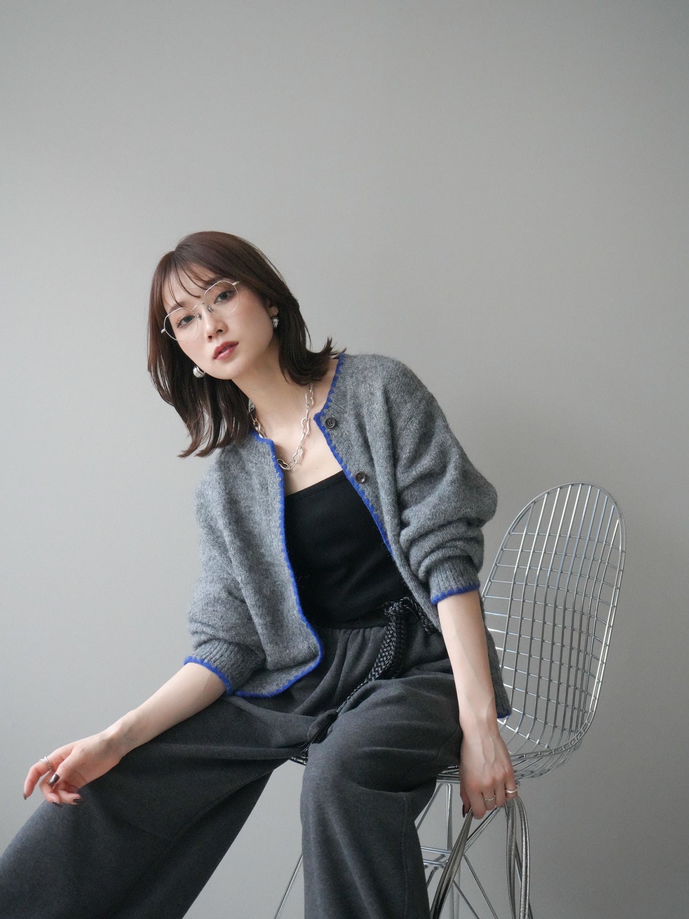 フロントや裾、袖口に施した三角ステッチがポイントになるニットカーディガン。柔らかな風合いのニット素材がふんわりとした優しい雰囲気を演出し、シンプルなシルエットの中にほどよいアクセントをプラスします。ゆるやかなドロップショルダーが抜け感をもたらし、羽織りとしてもトップス風にも使える万能な一枚。デニムやワイドパンツ、スカートなど幅広いコーディネートに合わせやすく、デイリーに重宝するアイテムです。 ※ボトムス、キャミソール(インナー)以外の商品は一律でインナーは付属していません。