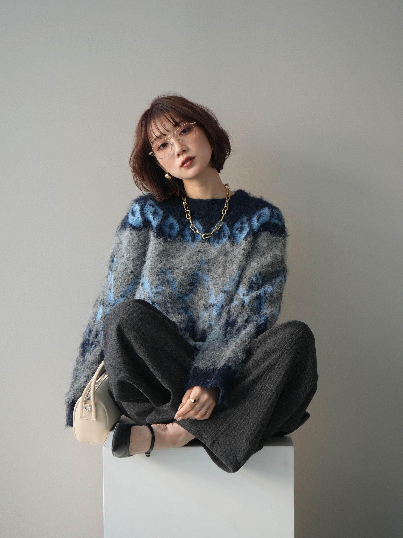 ◆ [予約]シャギーニュアンス柄ニットプルオーバー
