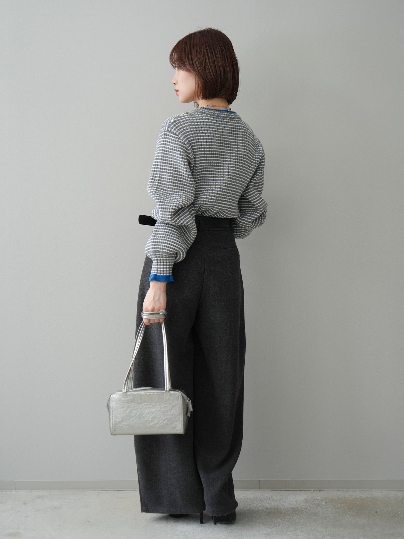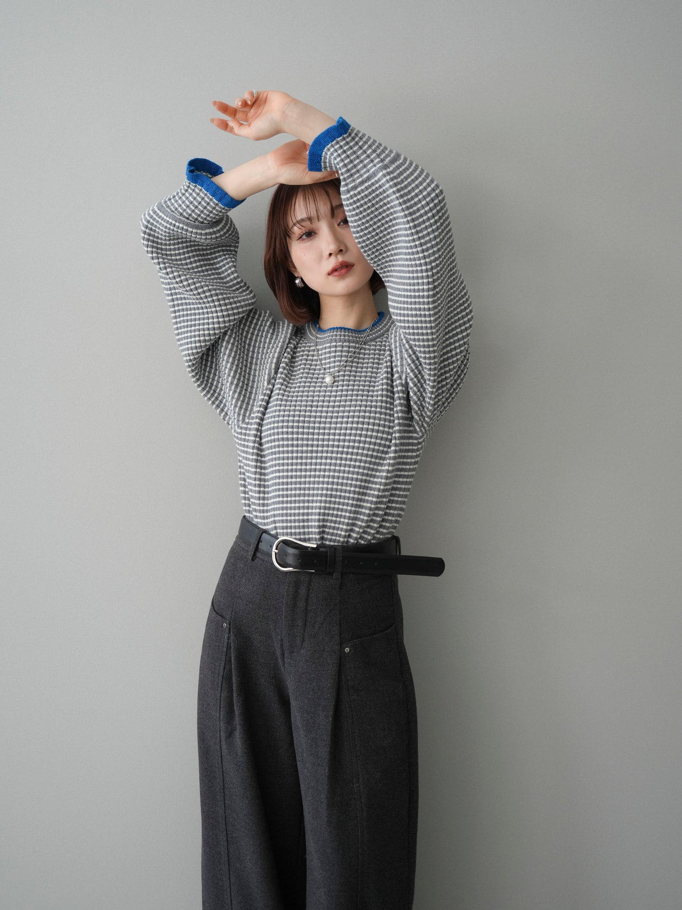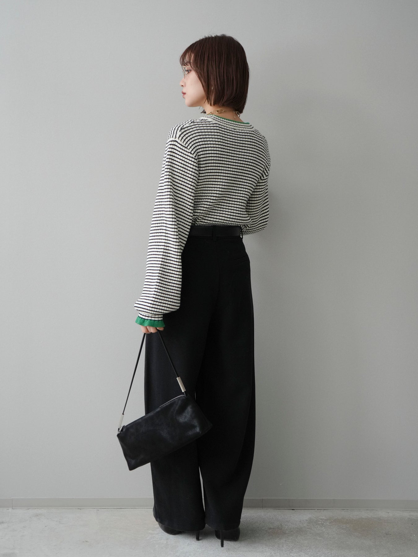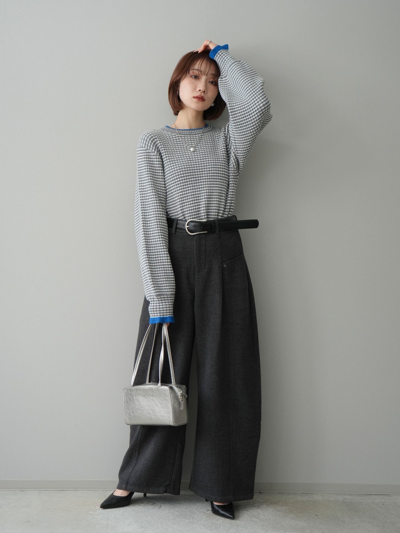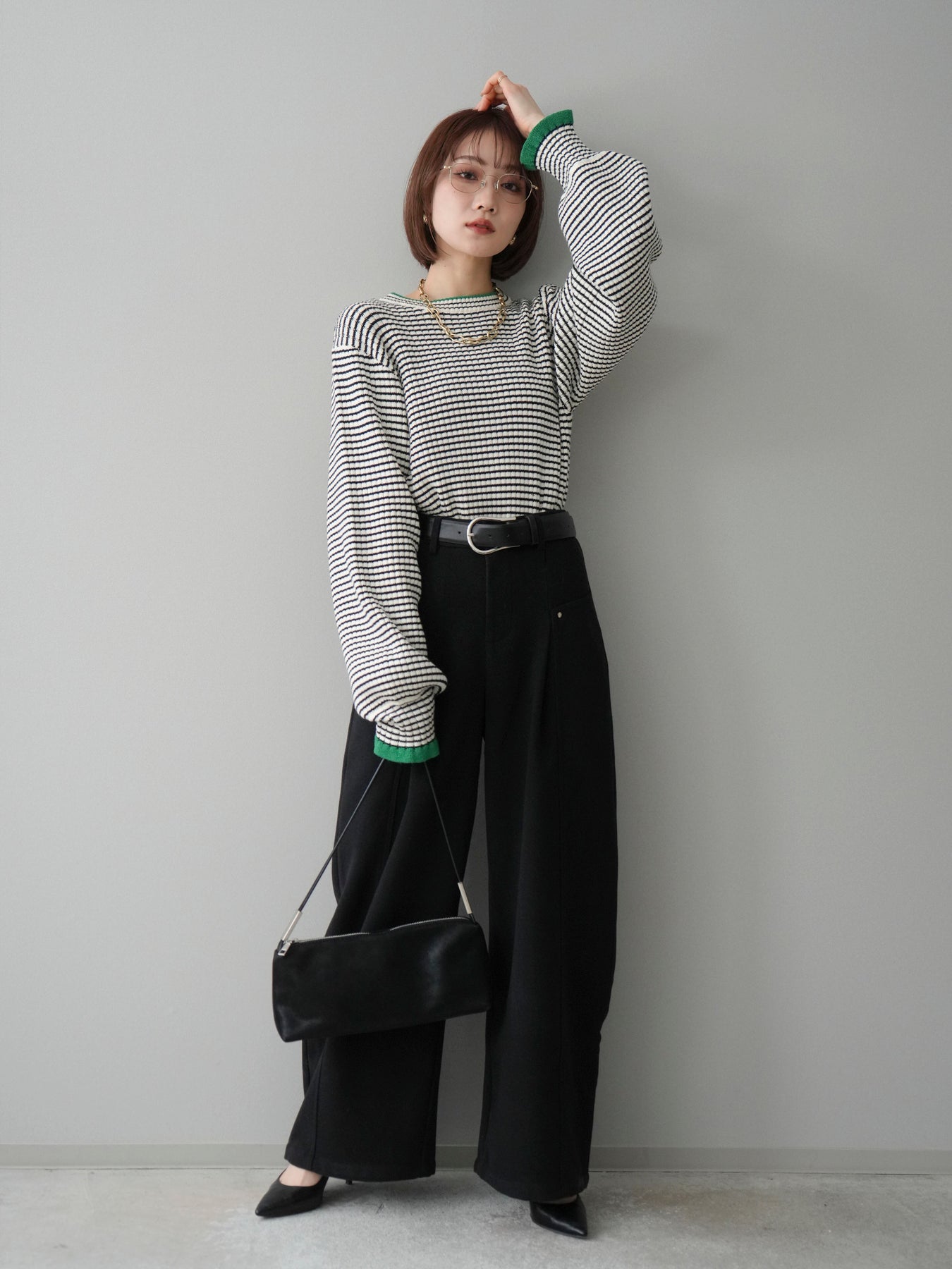 [SET]ラメ異素材ボーダーリブニットプルオーバー+ベルト付起毛コクーンパンツ(2set)