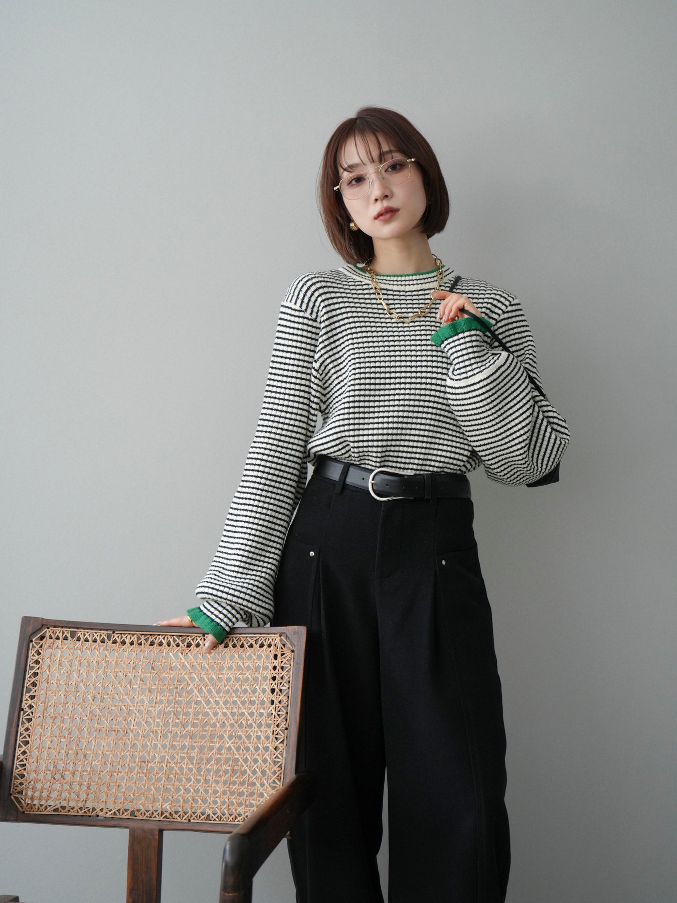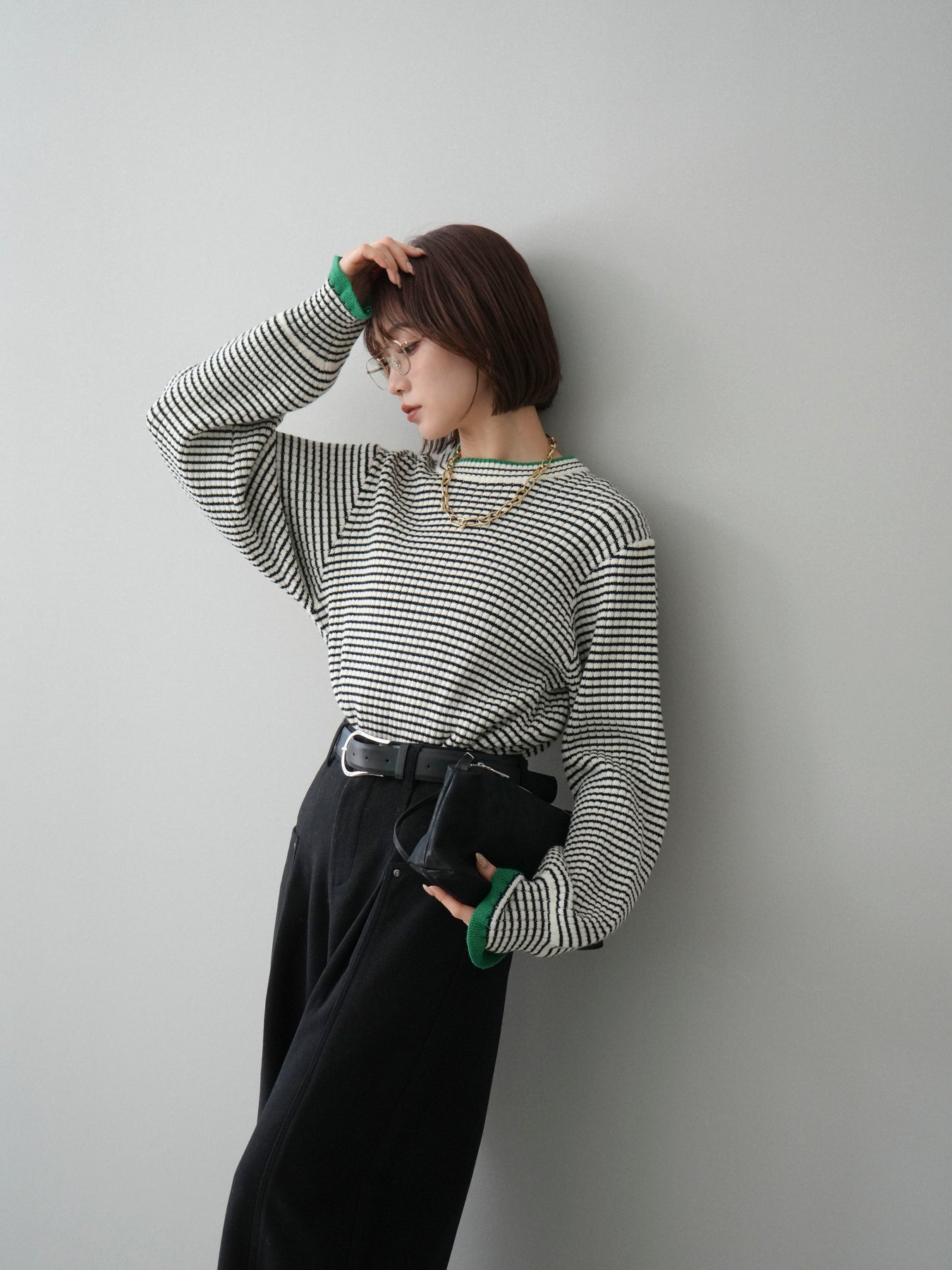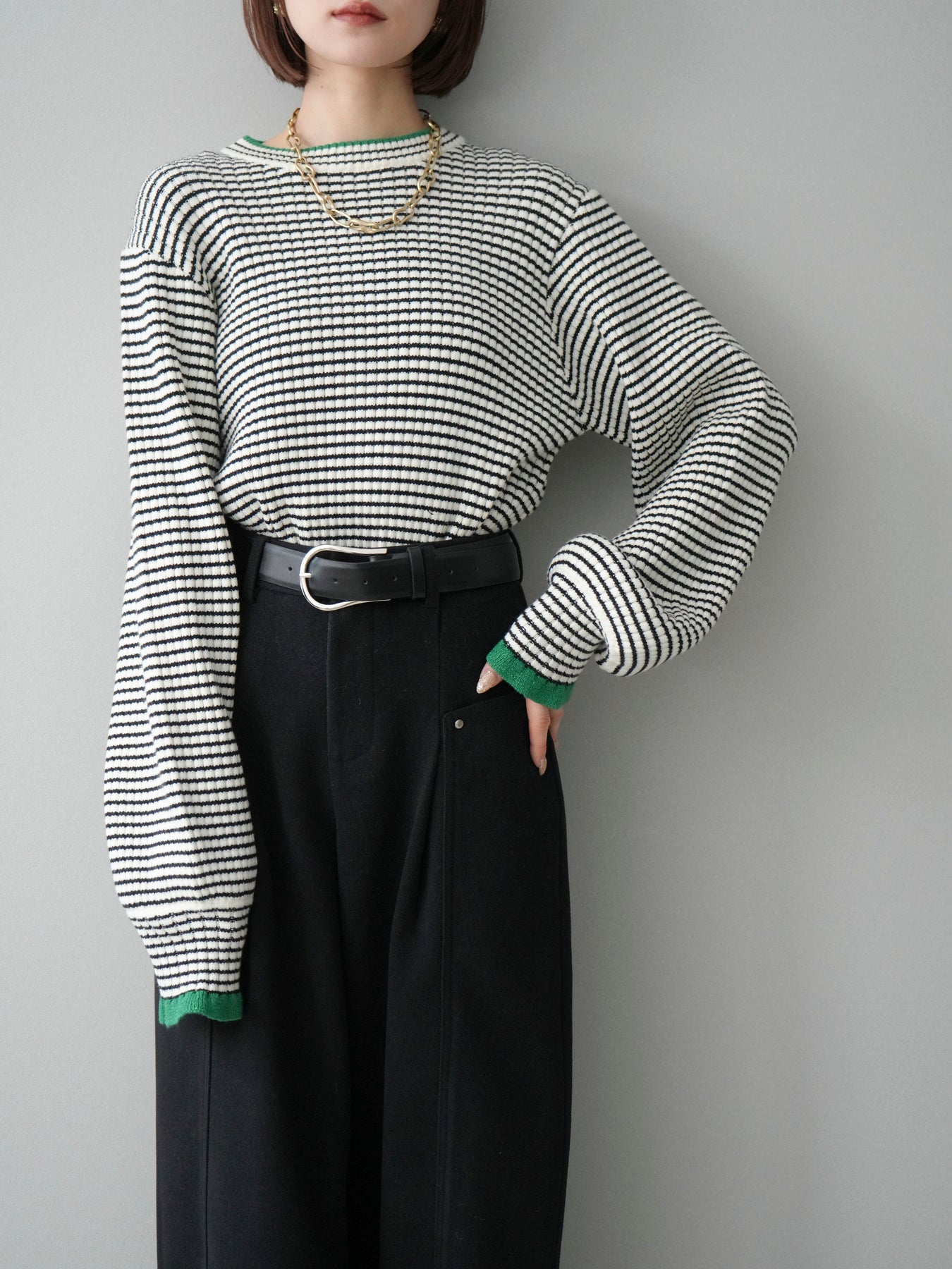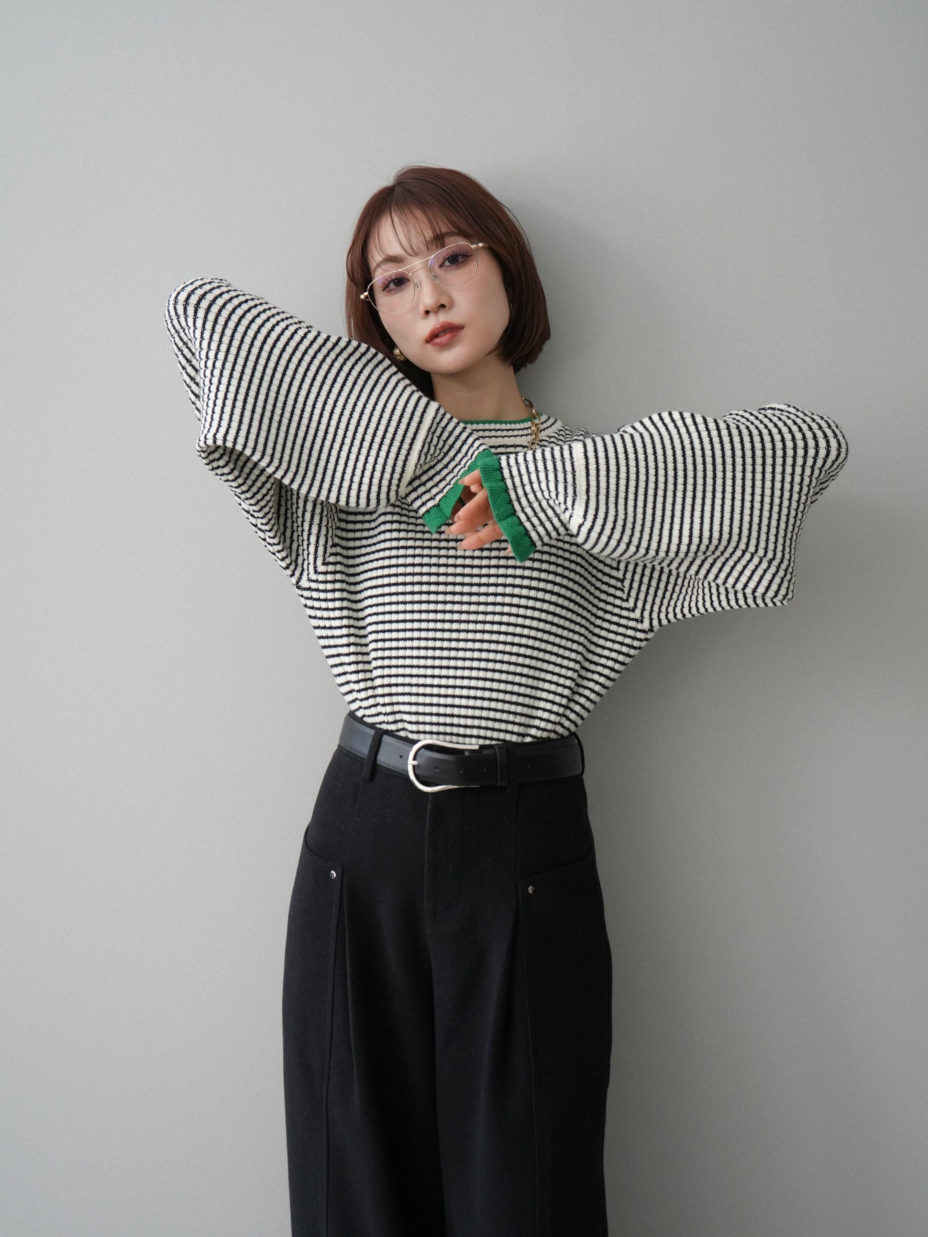 [予約]ラメ異素材ボーダーリブニットプルオーバー