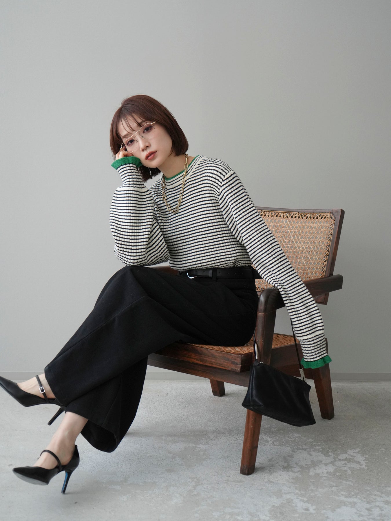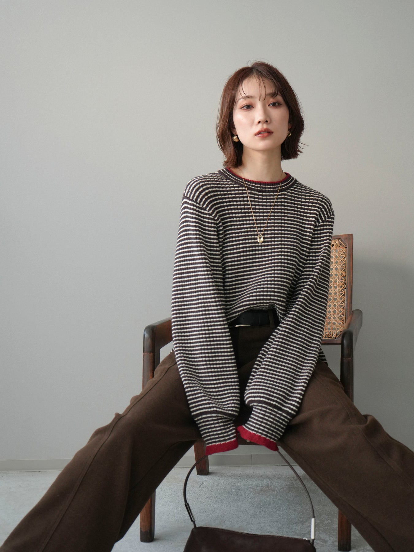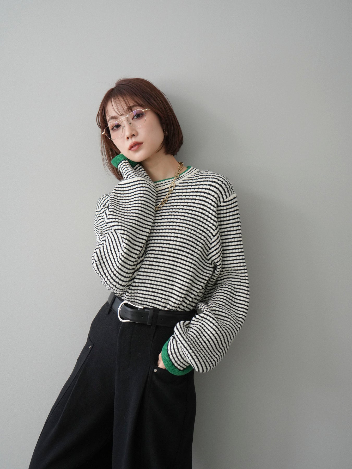 ◆ [予約]ラメ異素材ボーダーリブニットプルオーバー