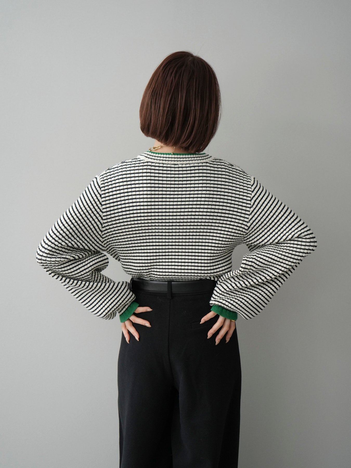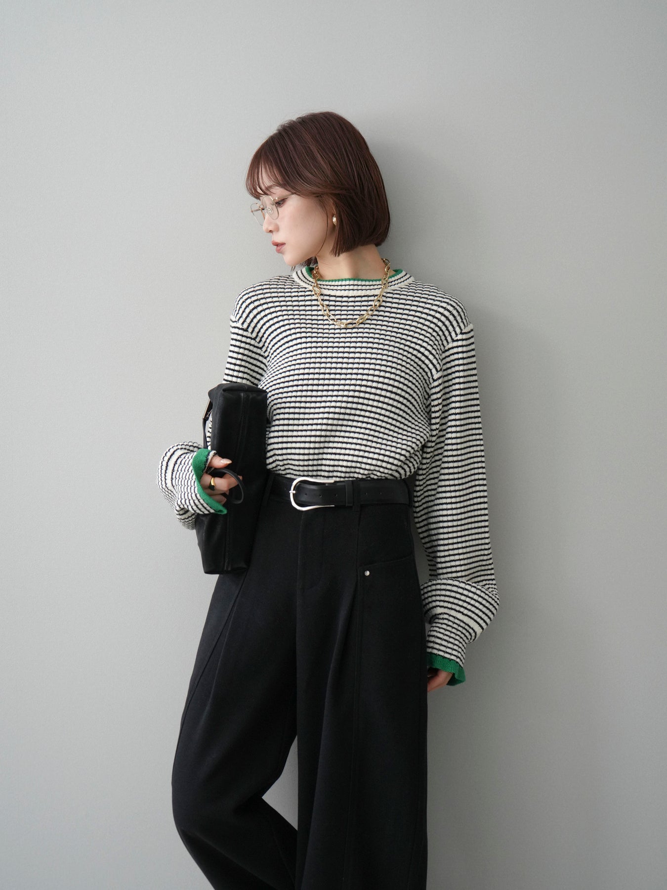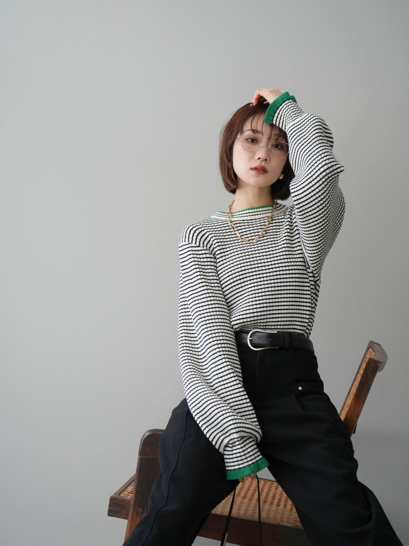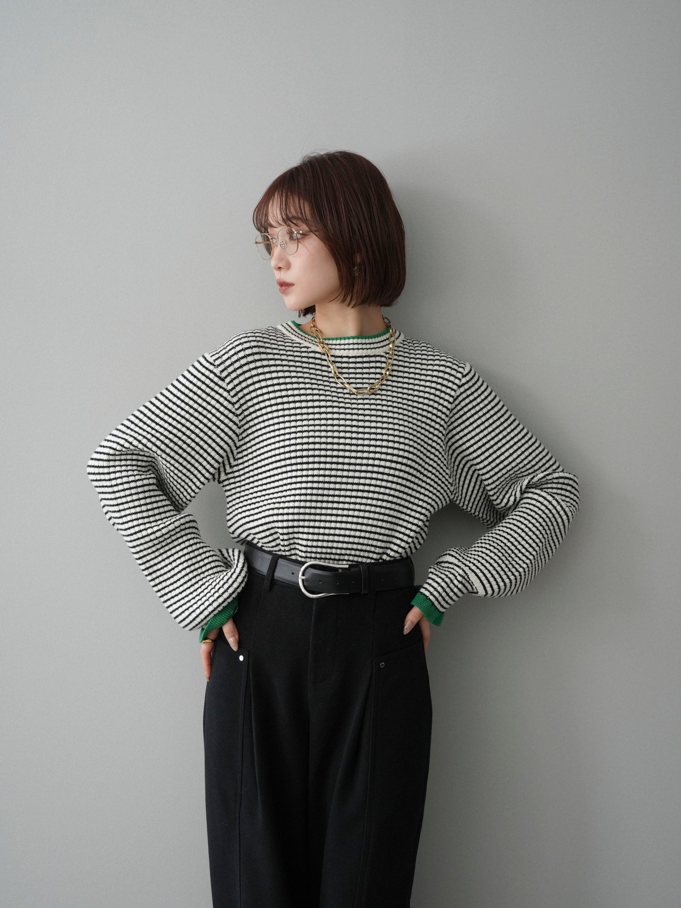 ◆ [予約]ラメ異素材ボーダーリブニットプルオーバー