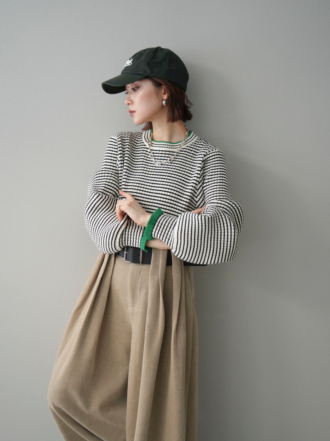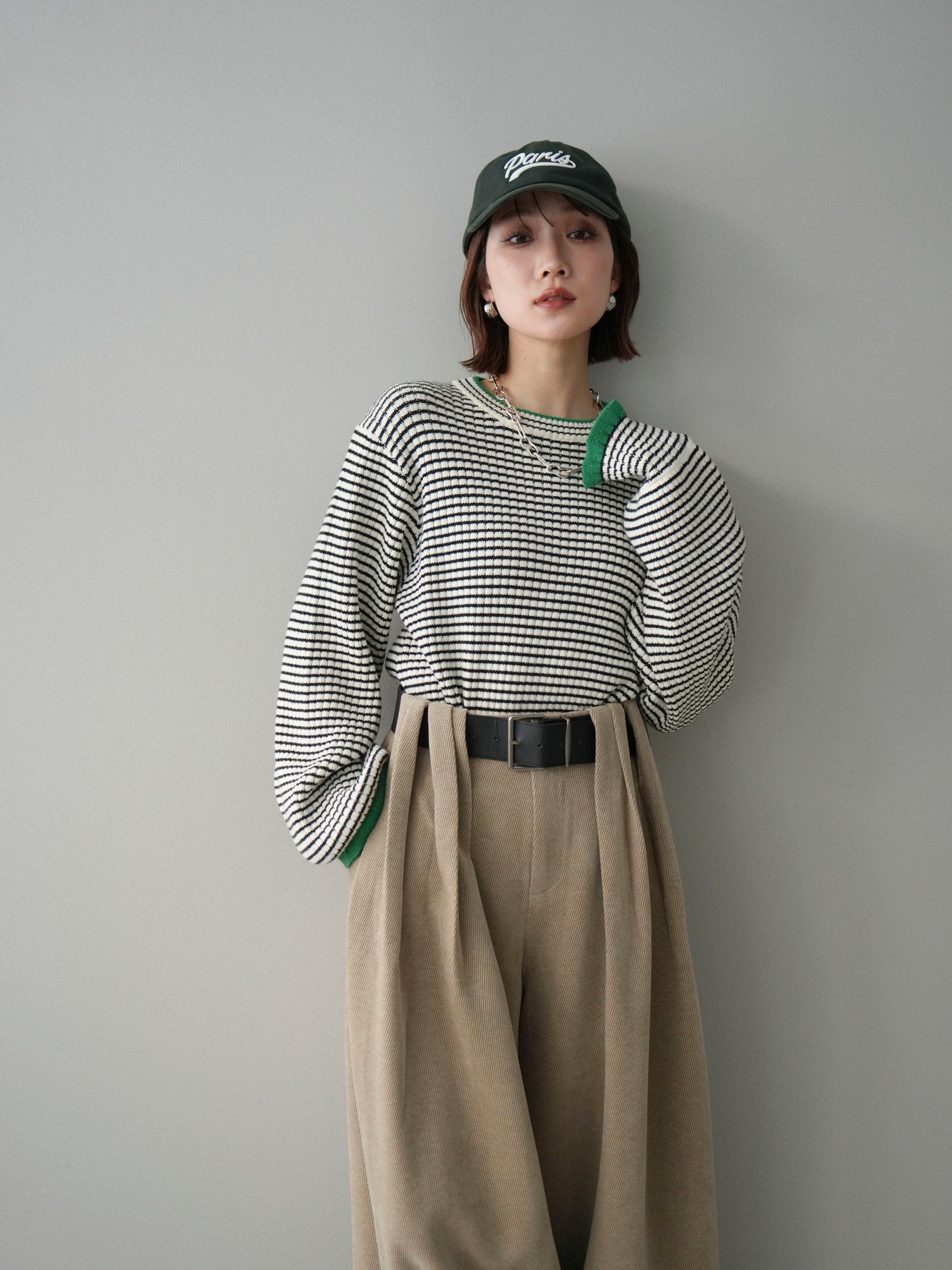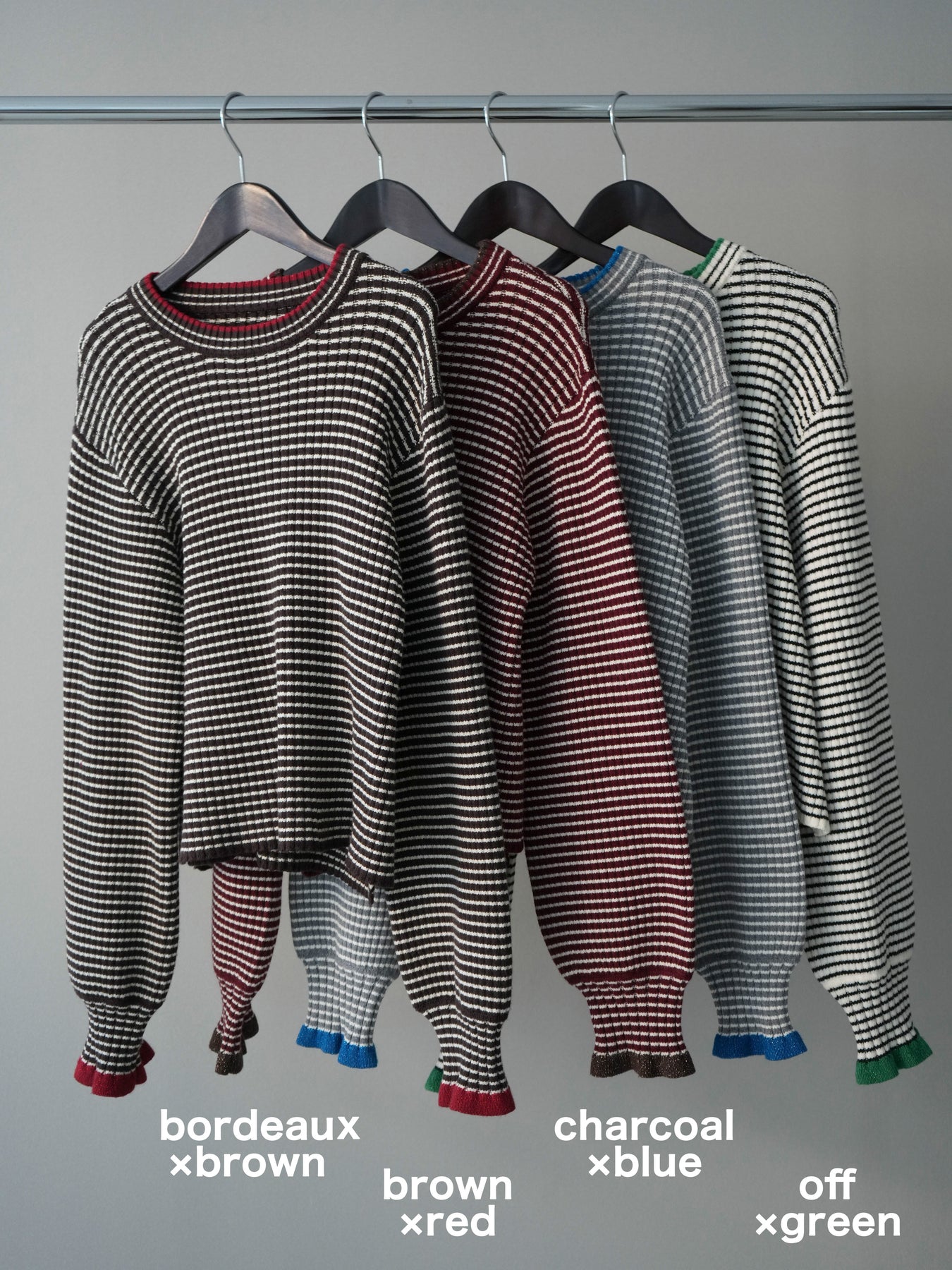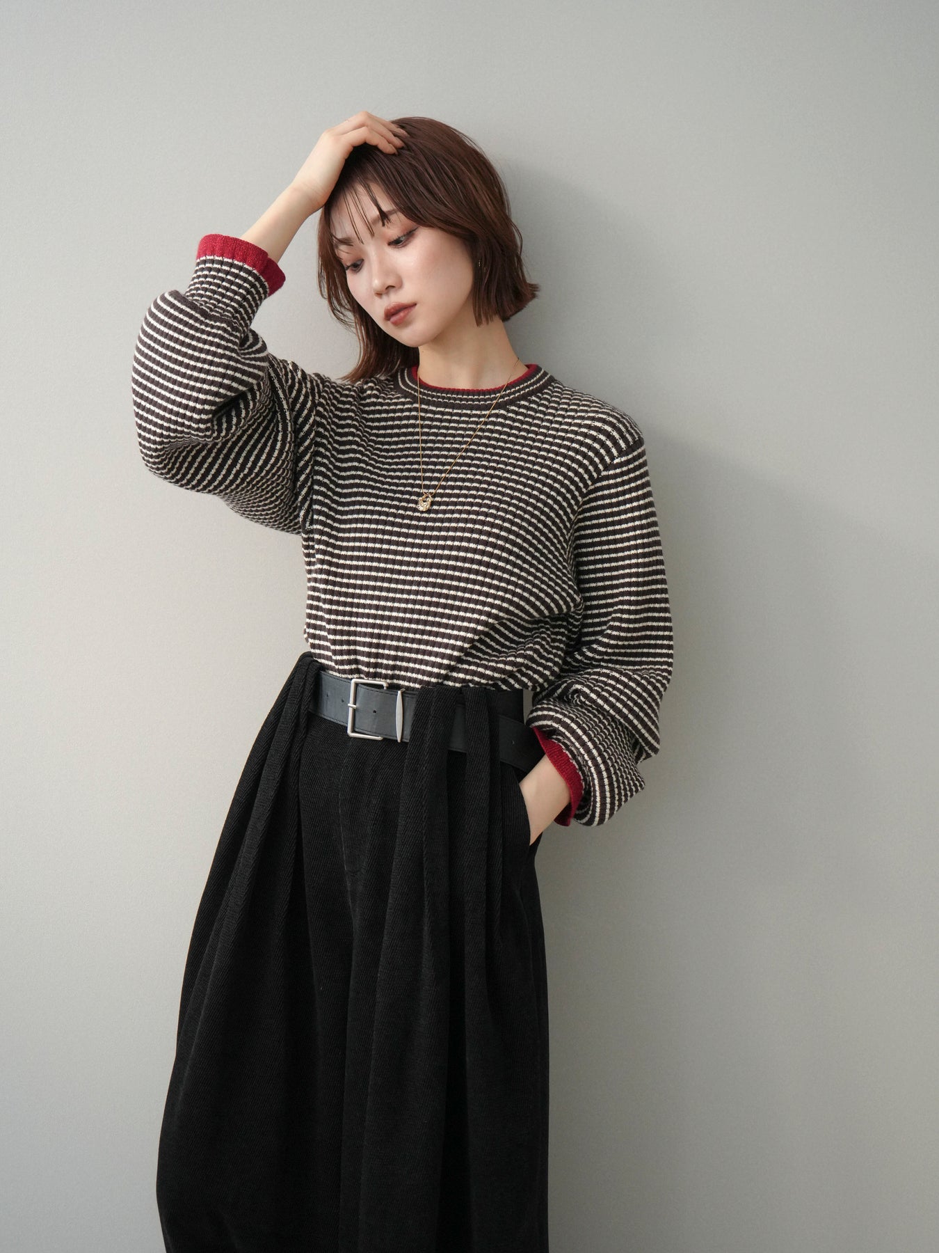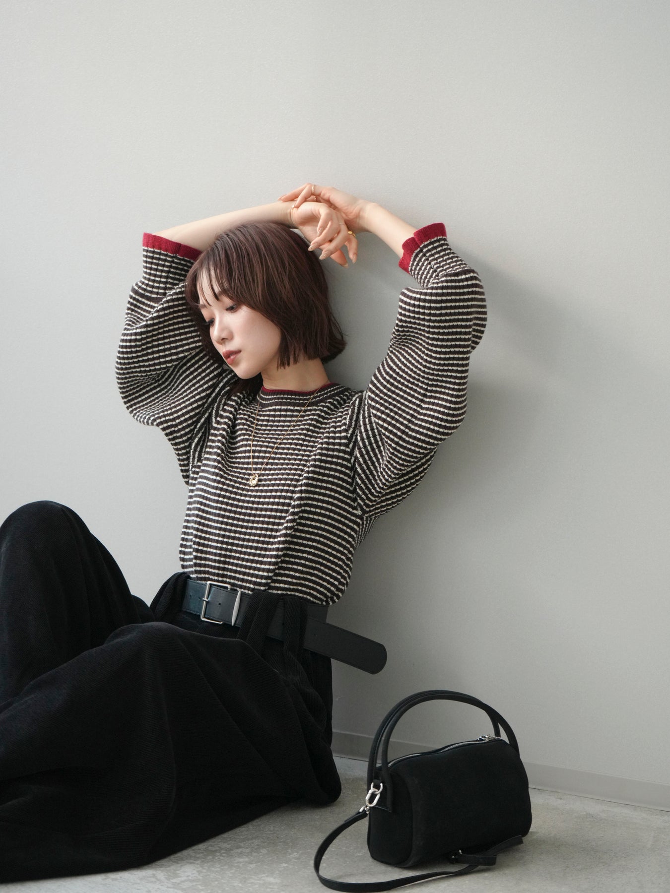 ◆ [予約]ラメ異素材ボーダーリブニットプルオーバー