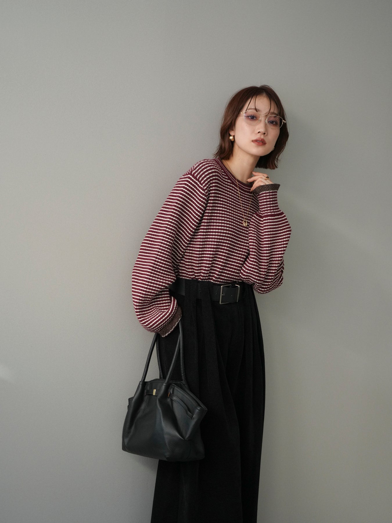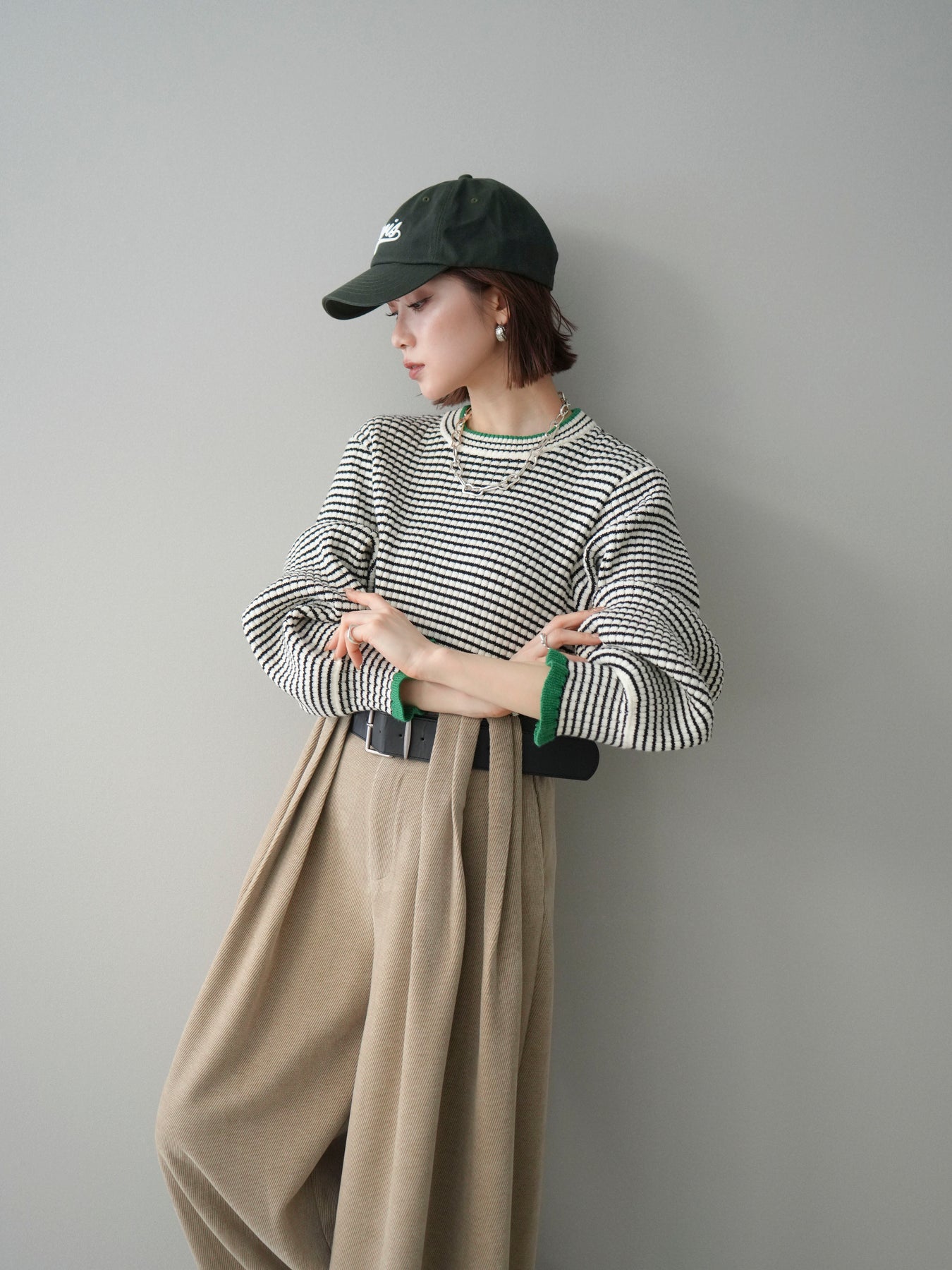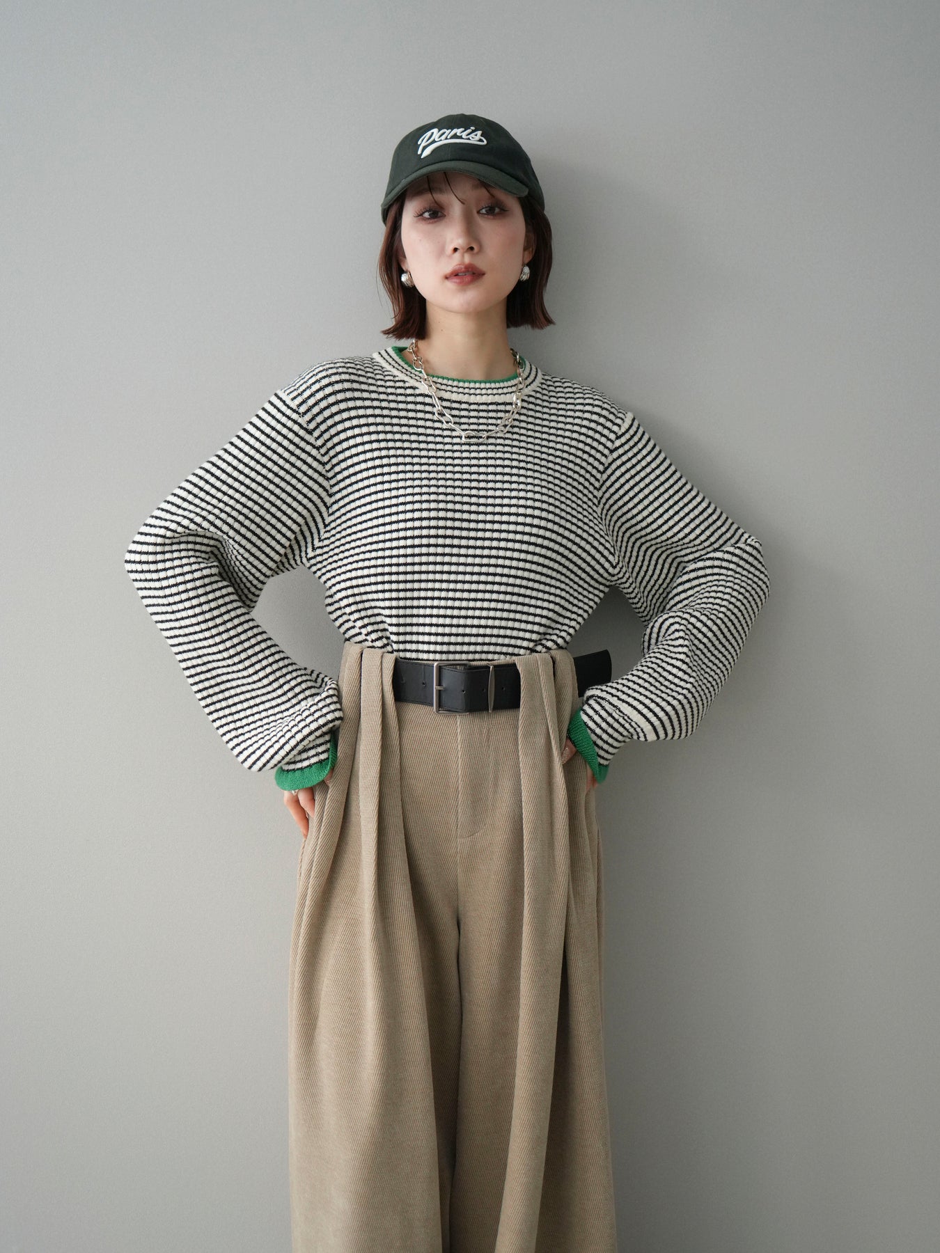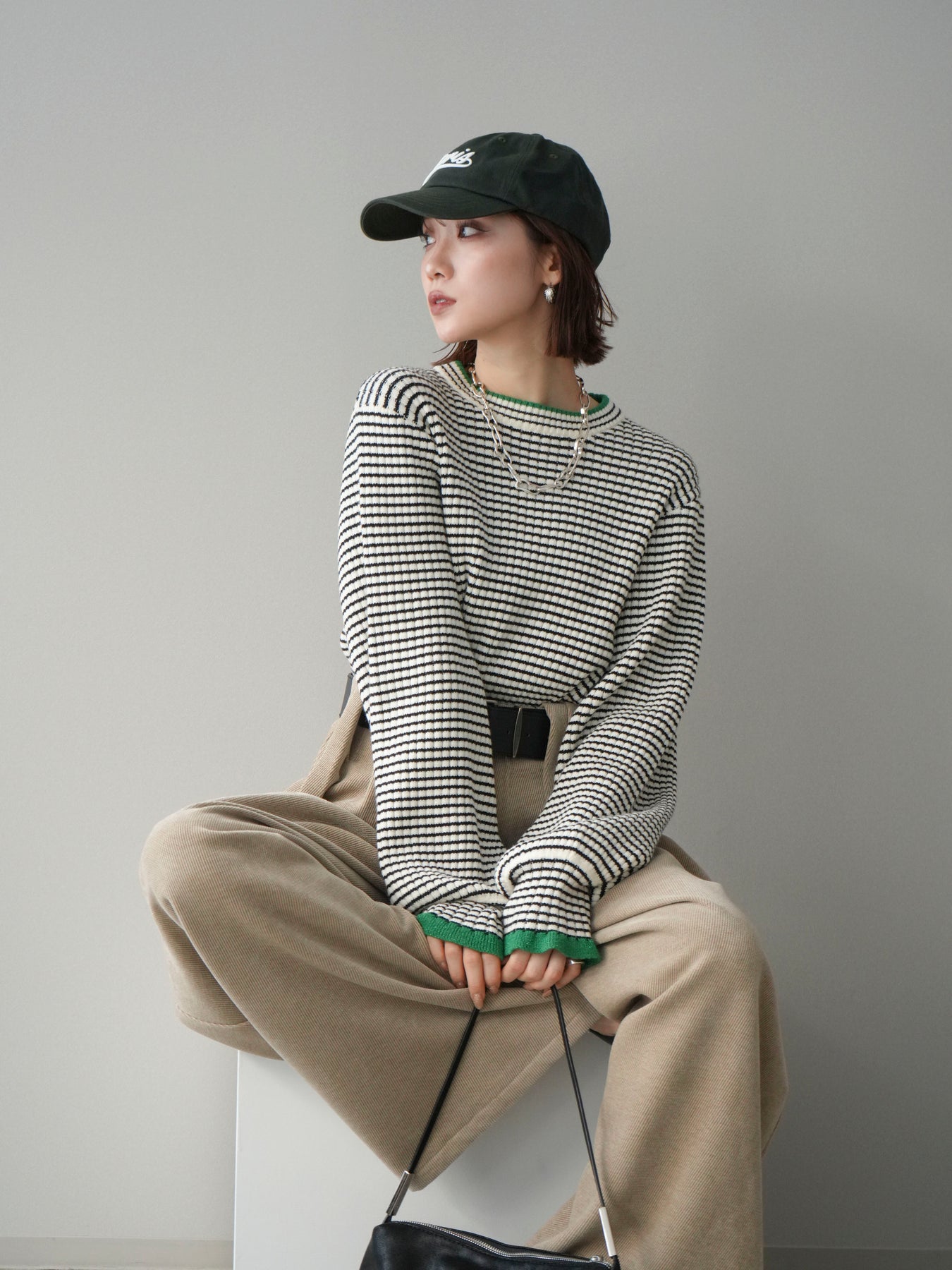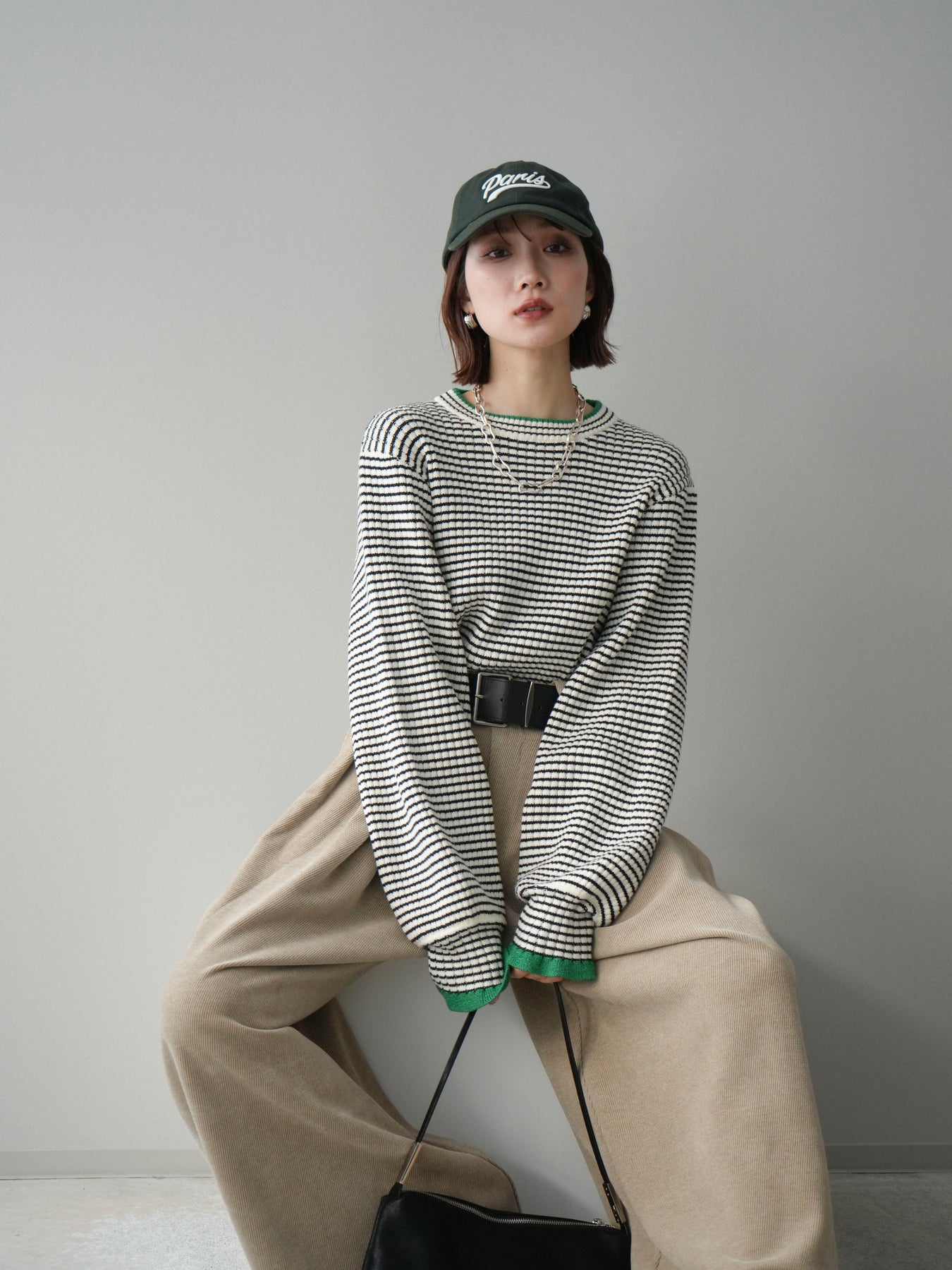 ◆ [予約]ラメ異素材ボーダーリブニットプルオーバー