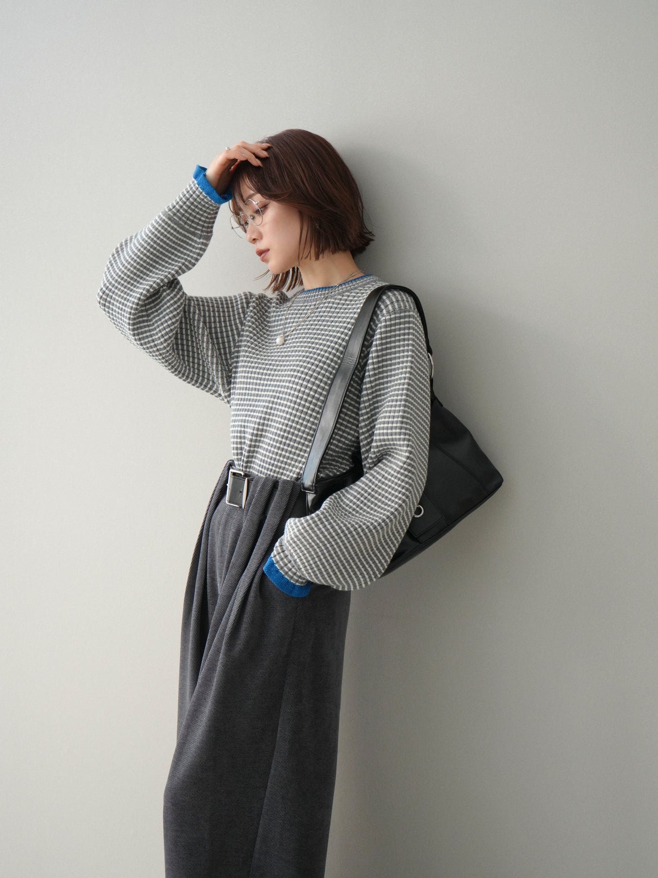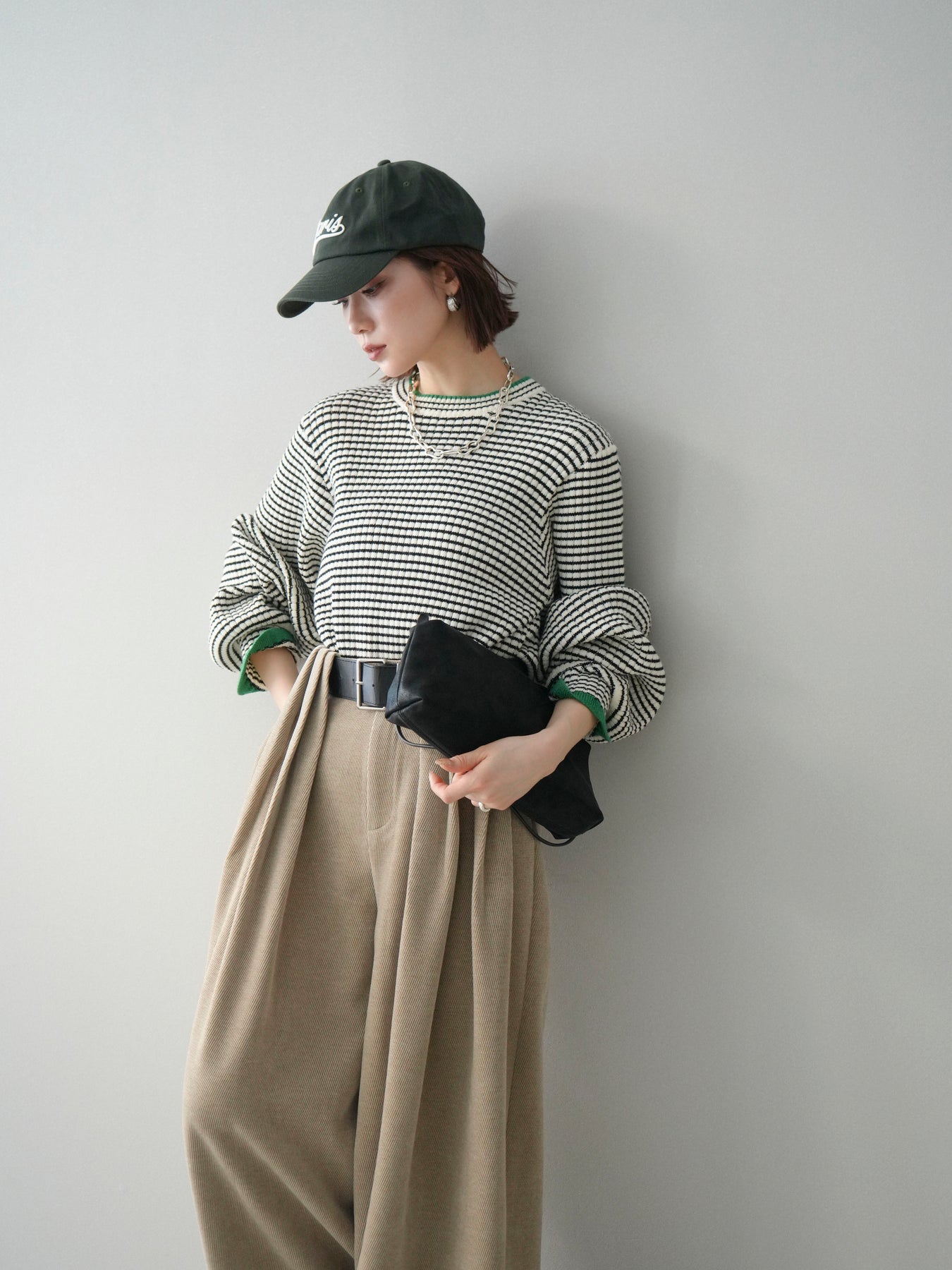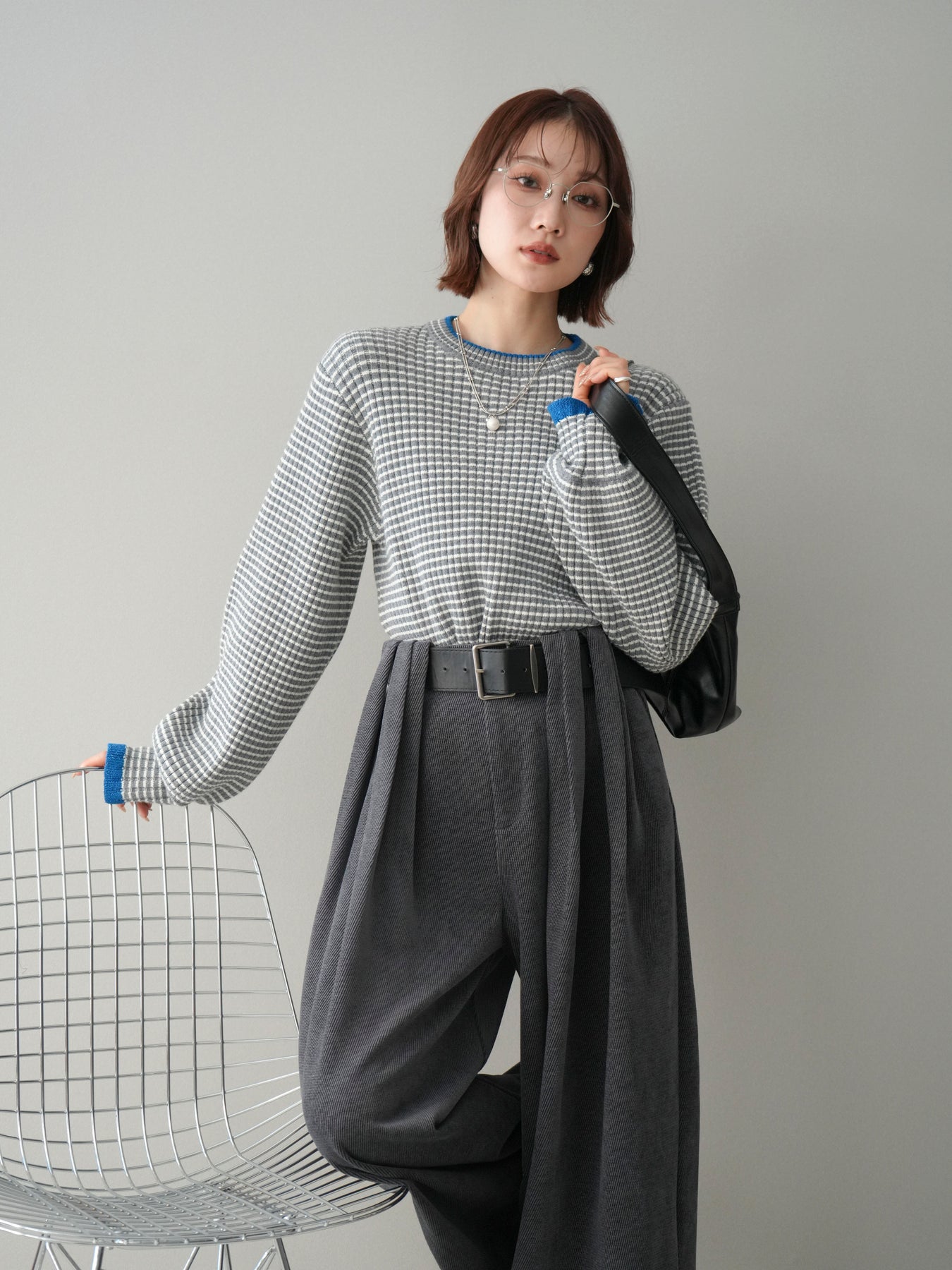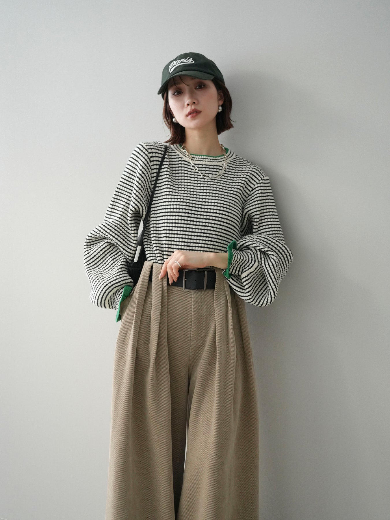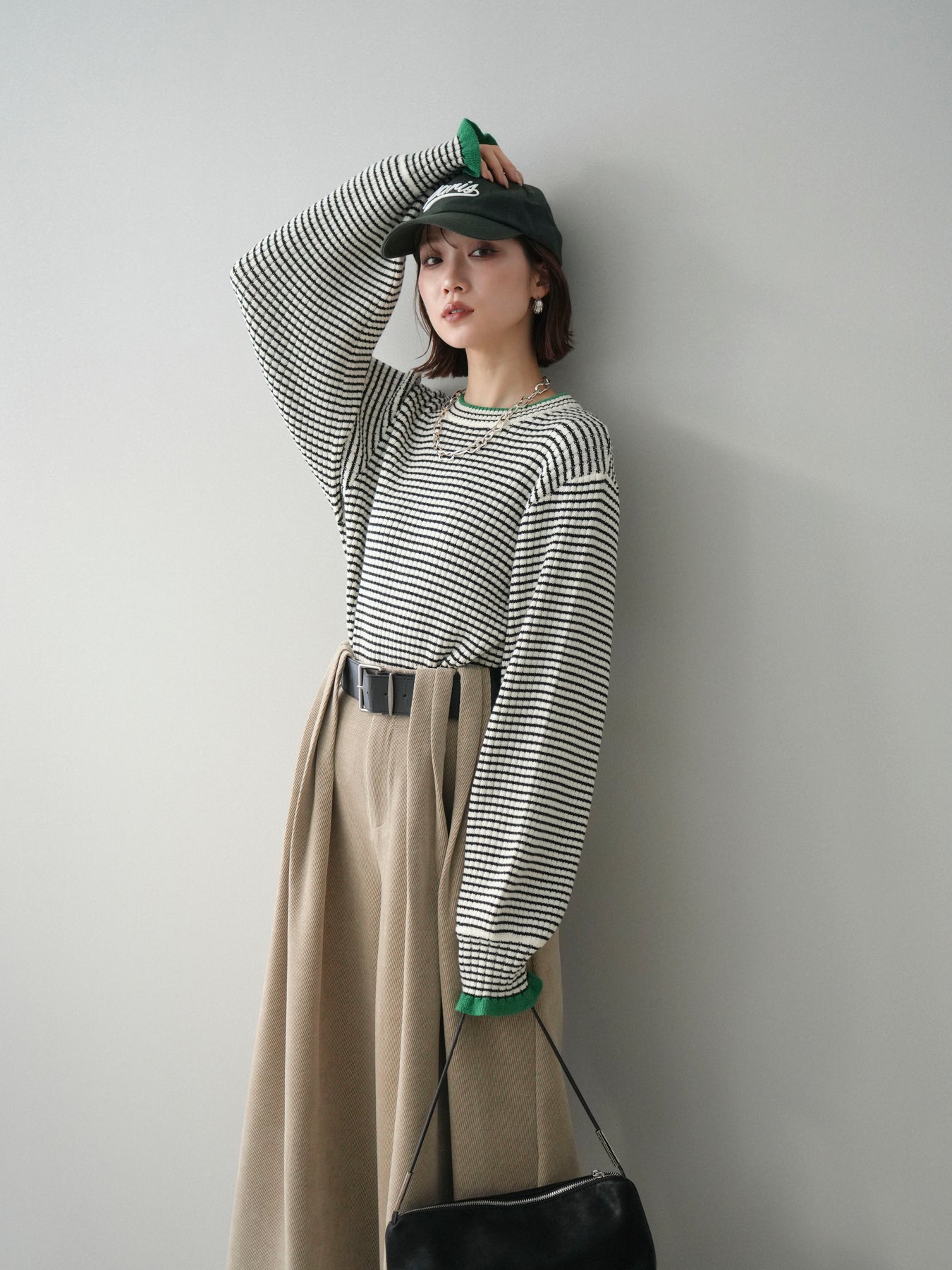 ◆ [予約]ラメ異素材ボーダーリブニットプルオーバー