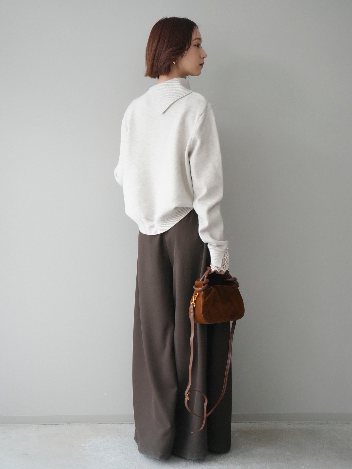 ・お手入れ方法:水温30℃以下手洗いでのお洗濯をお薦めします。素材の特性上、洗濯の際に色落ち・縮みが生じる恐れがありますので単独で・短時間でのお洗濯をお薦めします。裏返してネットに入れ手洗いコースで洗濯、洗濯後は形を整えてから干してください。※タンブラー乾燥は控えてください。 色落ち・色移りを防ぐため、必ず単独で洗ってください。濡れたままの状態で擦れると、色落ち色移りすることがあります。つけ置き洗いや雨や汗で濡れたまま放置は避け、速やかに処理してください。着用中の摩擦や汗、水濡れ、濃淡差があるものとの重ね着にご注意ください。また、素材の特性上伸びやすい為ハンガーの使用はお控えいただき畳んで保管ください。