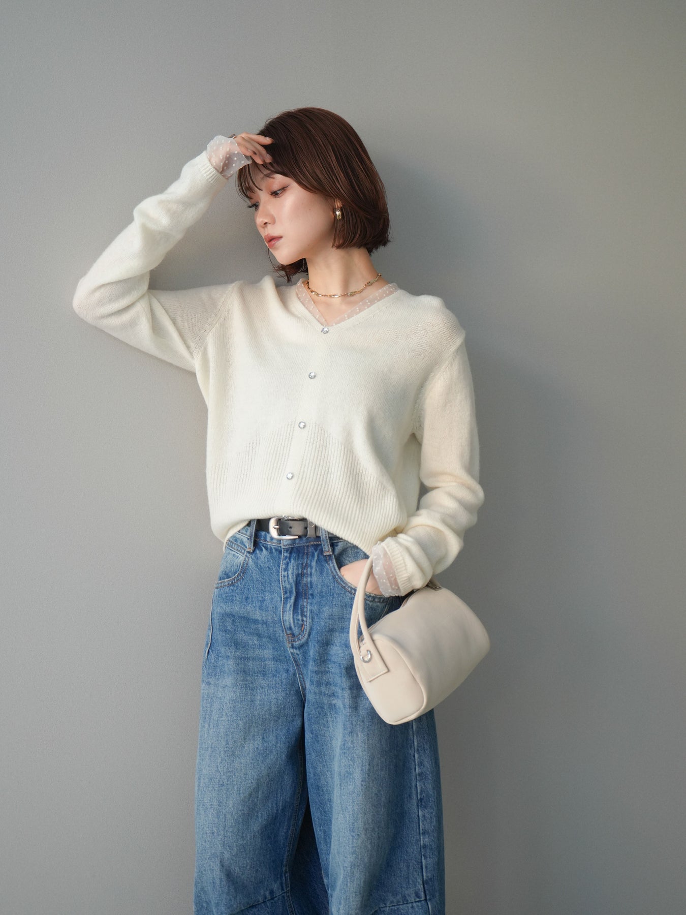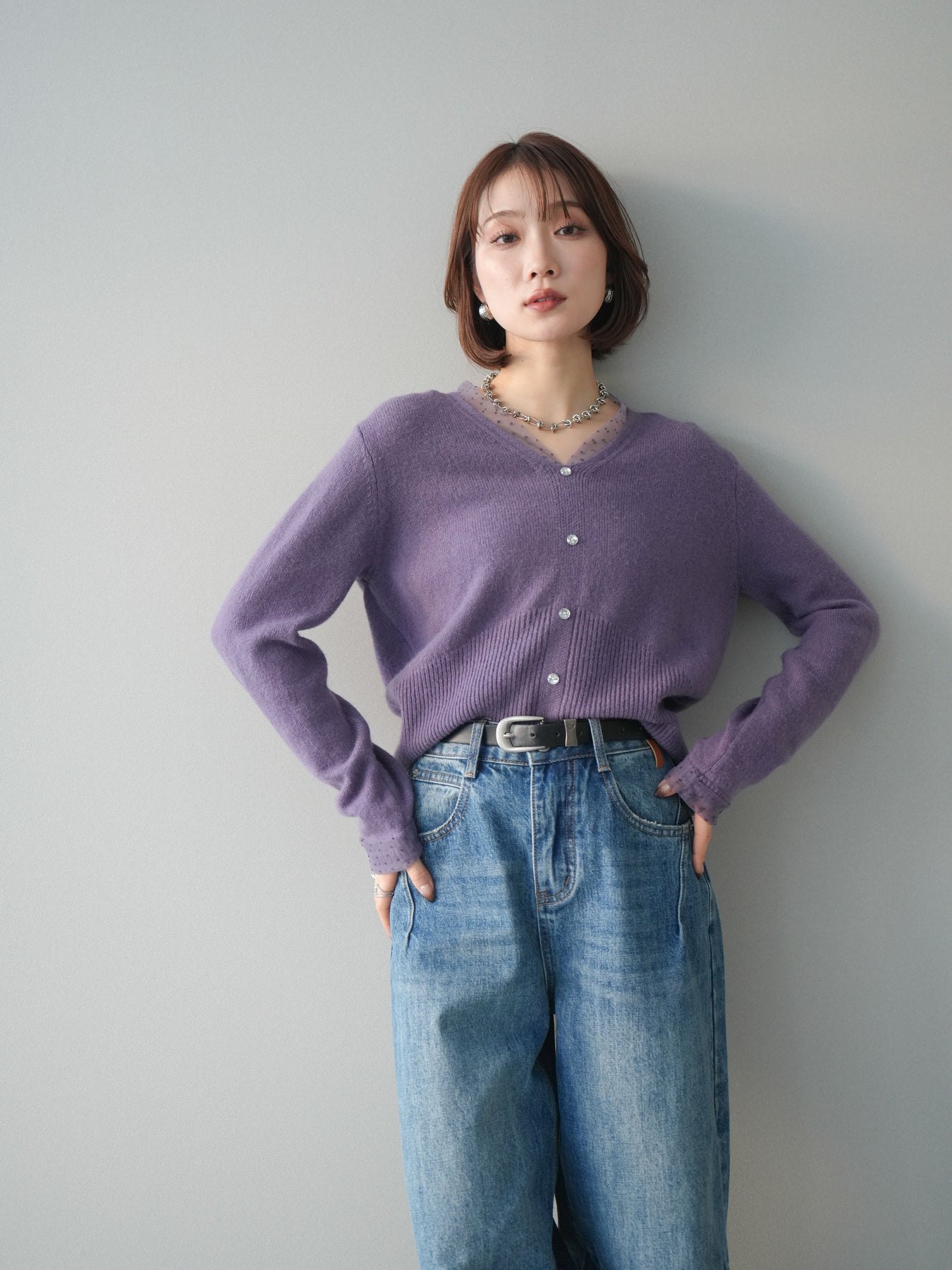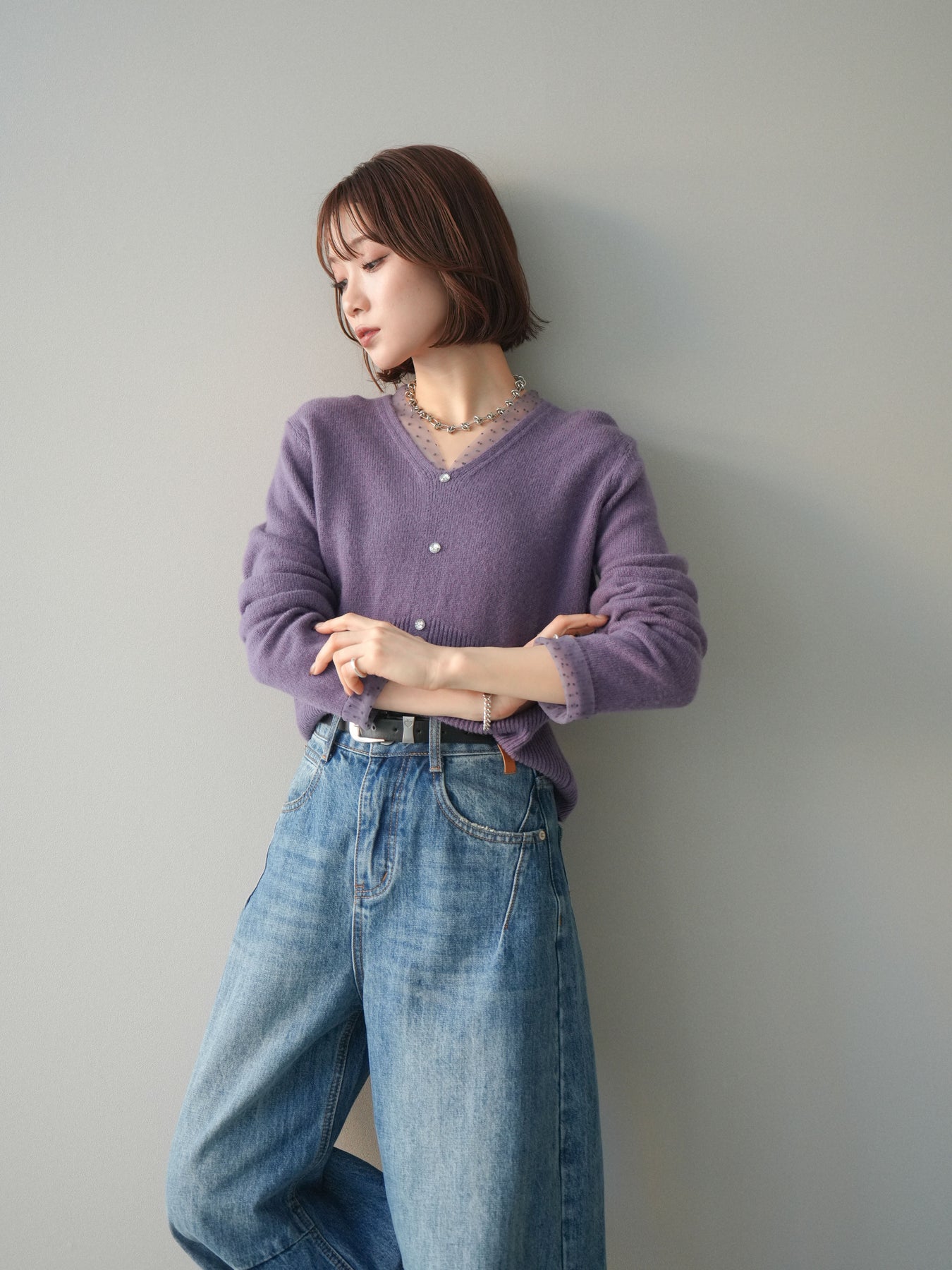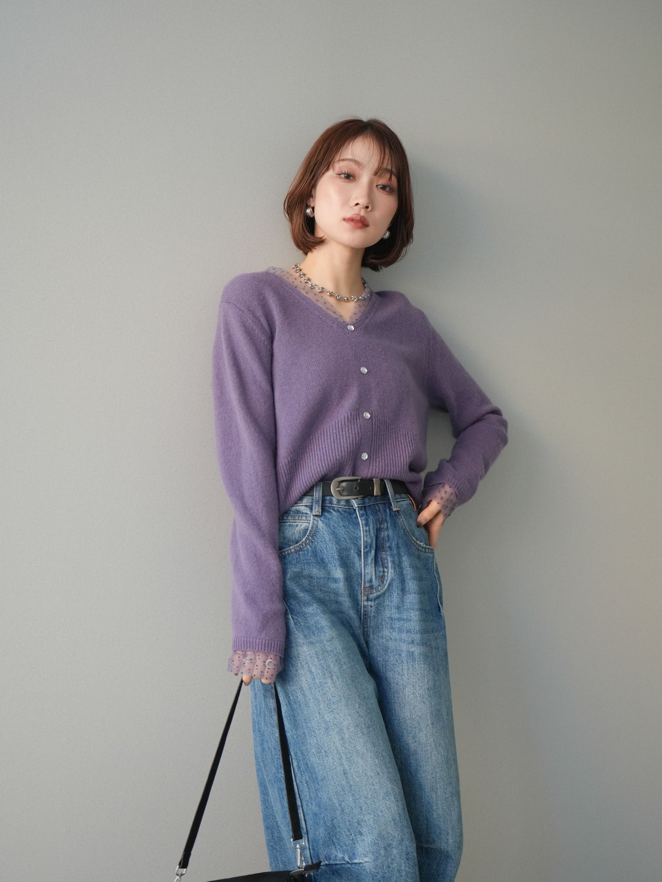 繊細なドットチュールを重ねたレイヤードデザインが、上品な華やかさを添えるニットトップス。襟元と袖口から覗くチュールが女性らしいニュアンスをプラスし、ボタンディテールが全体をすっきりとまとめてくれます。柔らかく肌ざわりの良いニット素材で着心地も快適。シルエットは程よくゆとりがありつつも品よく見えるバランスに仕上げており、シンプルなボトムと合わせるだけでスタイリングが完成します。デイリーから特別なシーンまで幅広く使える、着映えトップスです。 ※ボトムス、キャミソール(インナー)以外の商品は一律でインナーは付属していません。