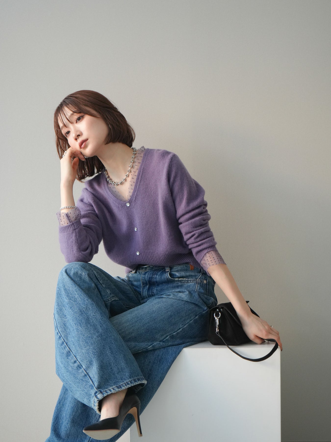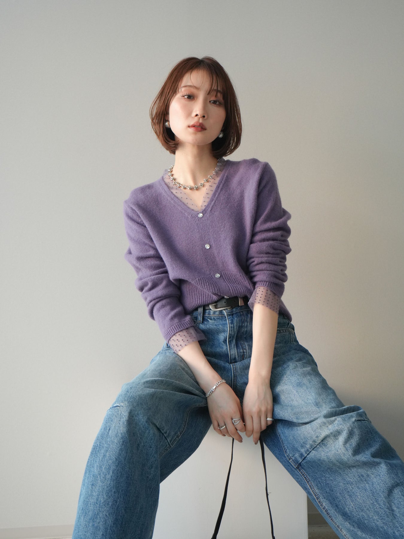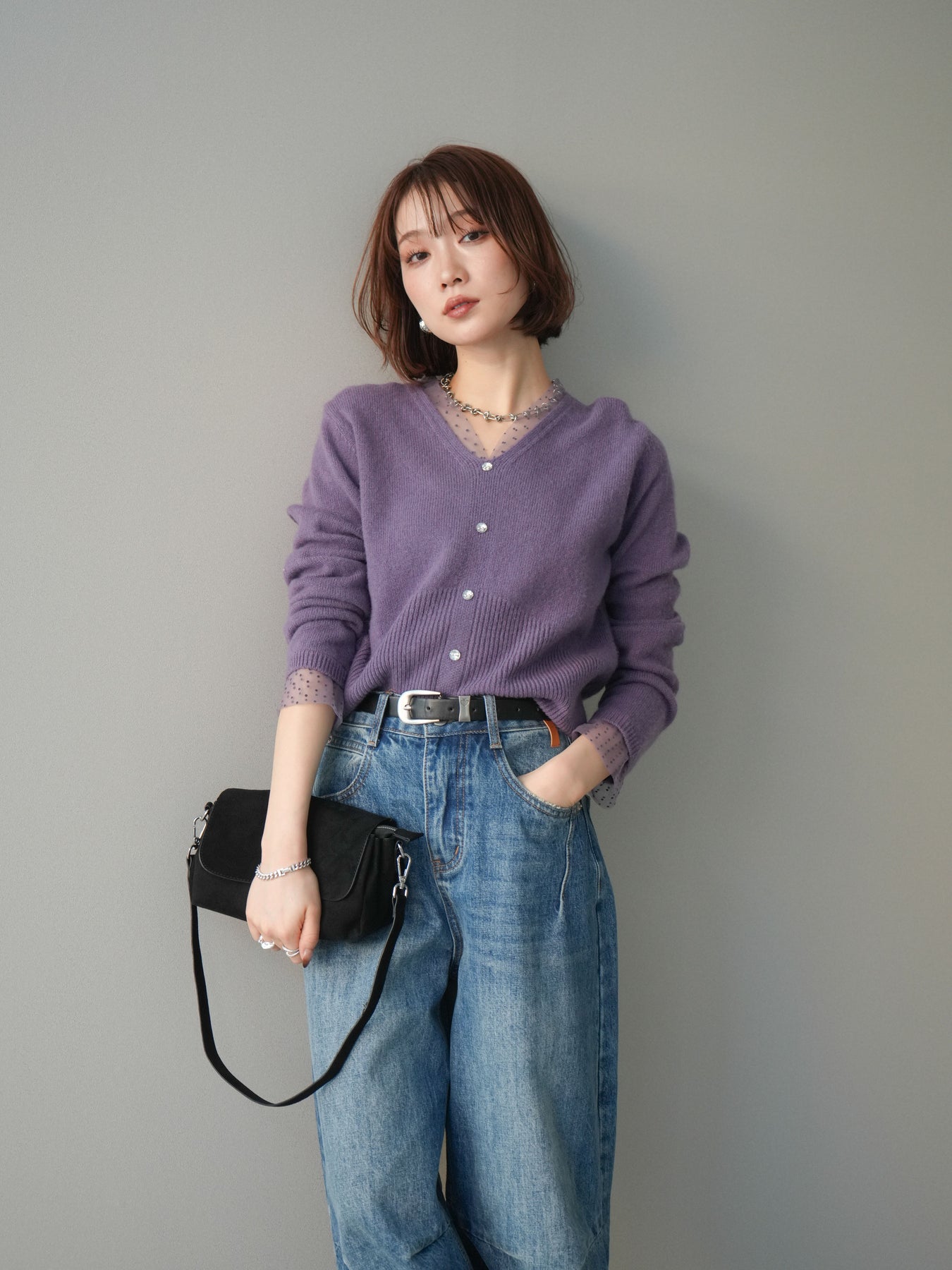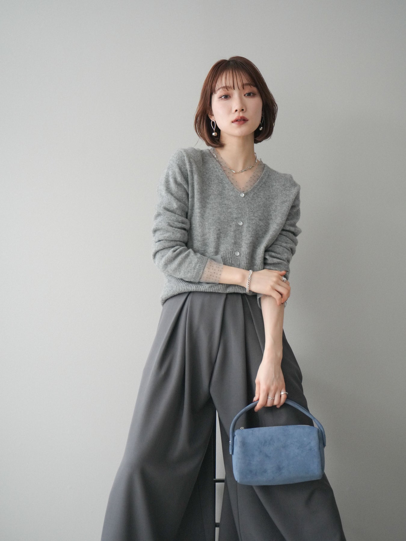 繊細なドットチュールを重ねたレイヤードデザインが、上品な華やかさを添えるニットトップス。襟元と袖口から覗くチュールが女性らしいニュアンスをプラスし、ボタンディテールが全体をすっきりとまとめてくれます。柔らかく肌ざわりの良いニット素材で着心地も快適。シルエットは程よくゆとりがありつつも品よく見えるバランスに仕上げており、シンプルなボトムと合わせるだけでスタイリングが完成します。デイリーから特別なシーンまで幅広く使える、着映えトップスです。 ※ボトムス、キャミソール(インナー)以外の商品は一律でインナーは付属していません。