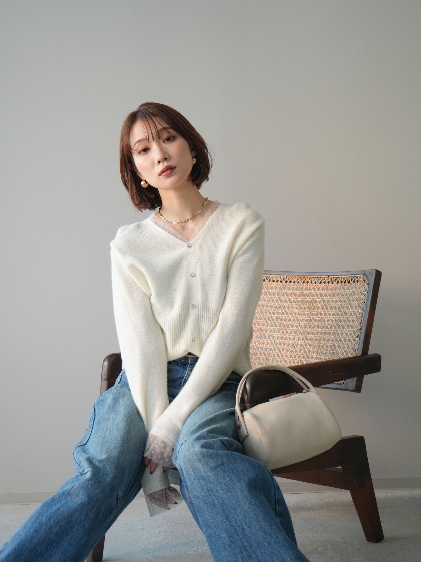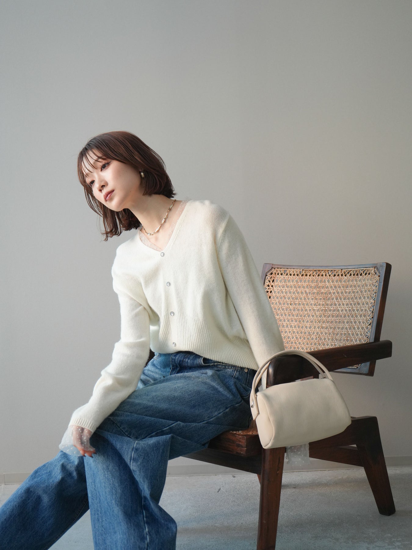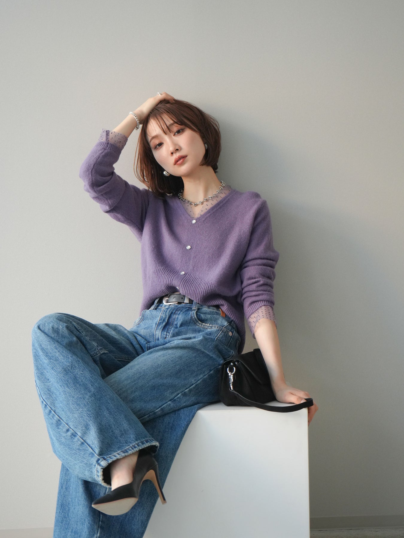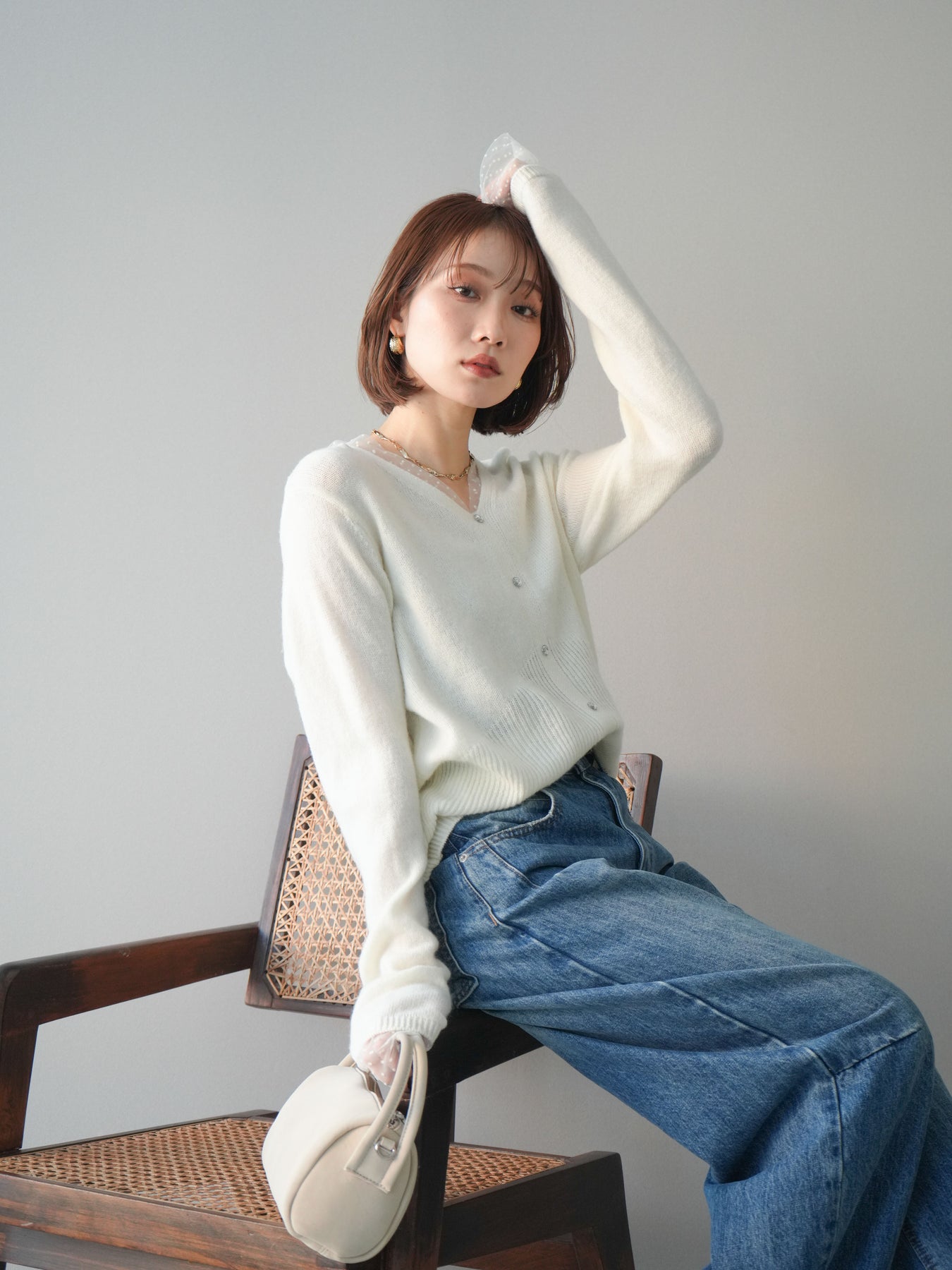 繊細なドットチュールを重ねたレイヤードデザインが、上品な華やかさを添えるニットトップス。襟元と袖口から覗くチュールが女性らしいニュアンスをプラスし、ボタンディテールが全体をすっきりとまとめてくれます。柔らかく肌ざわりの良いニット素材で着心地も快適。シルエットは程よくゆとりがありつつも品よく見えるバランスに仕上げており、シンプルなボトムと合わせるだけでスタイリングが完成します。デイリーから特別なシーンまで幅広く使える、着映えトップスです。 ※ボトムス、キャミソール(インナー)以外の商品は一律でインナーは付属していません。