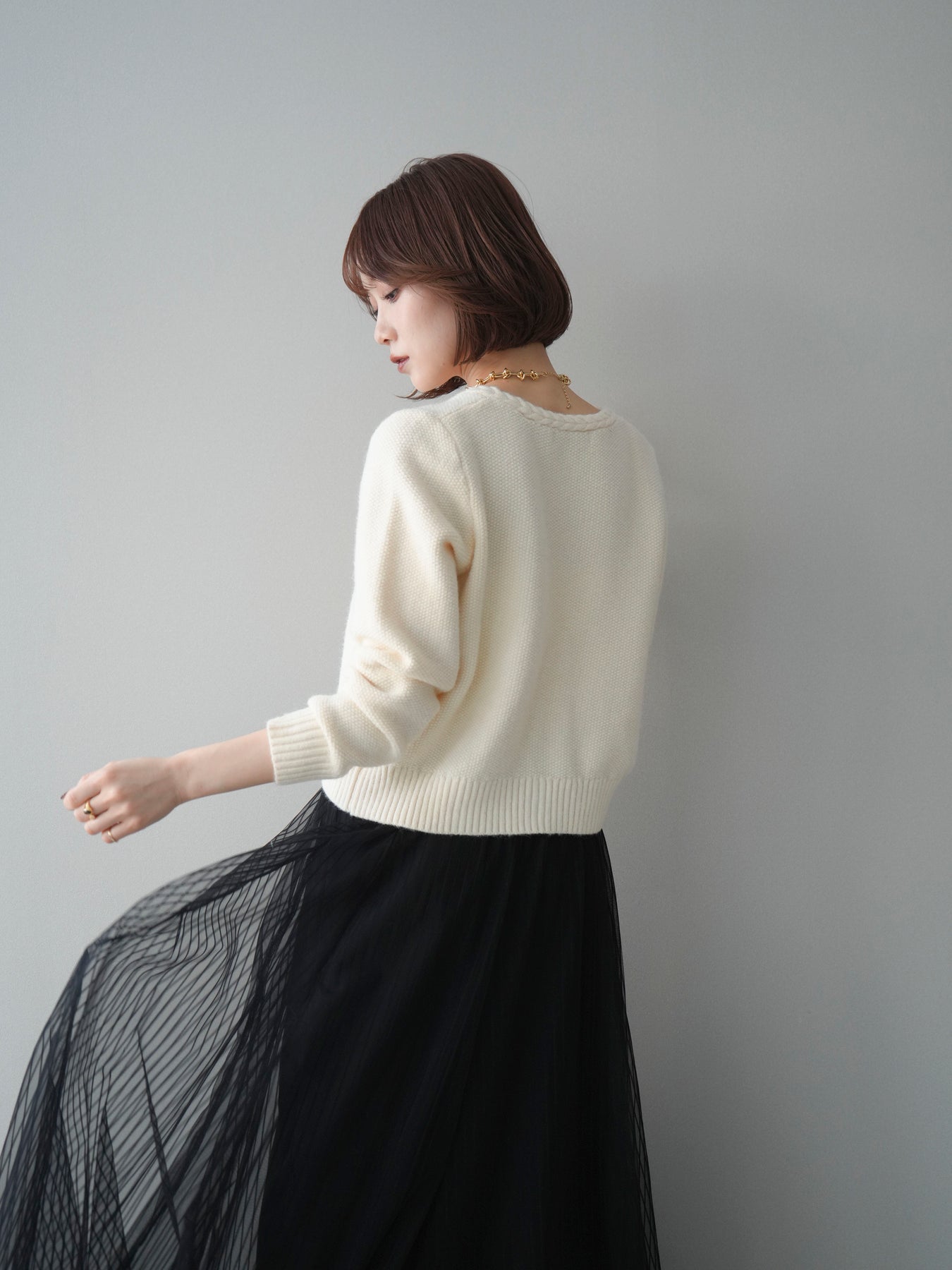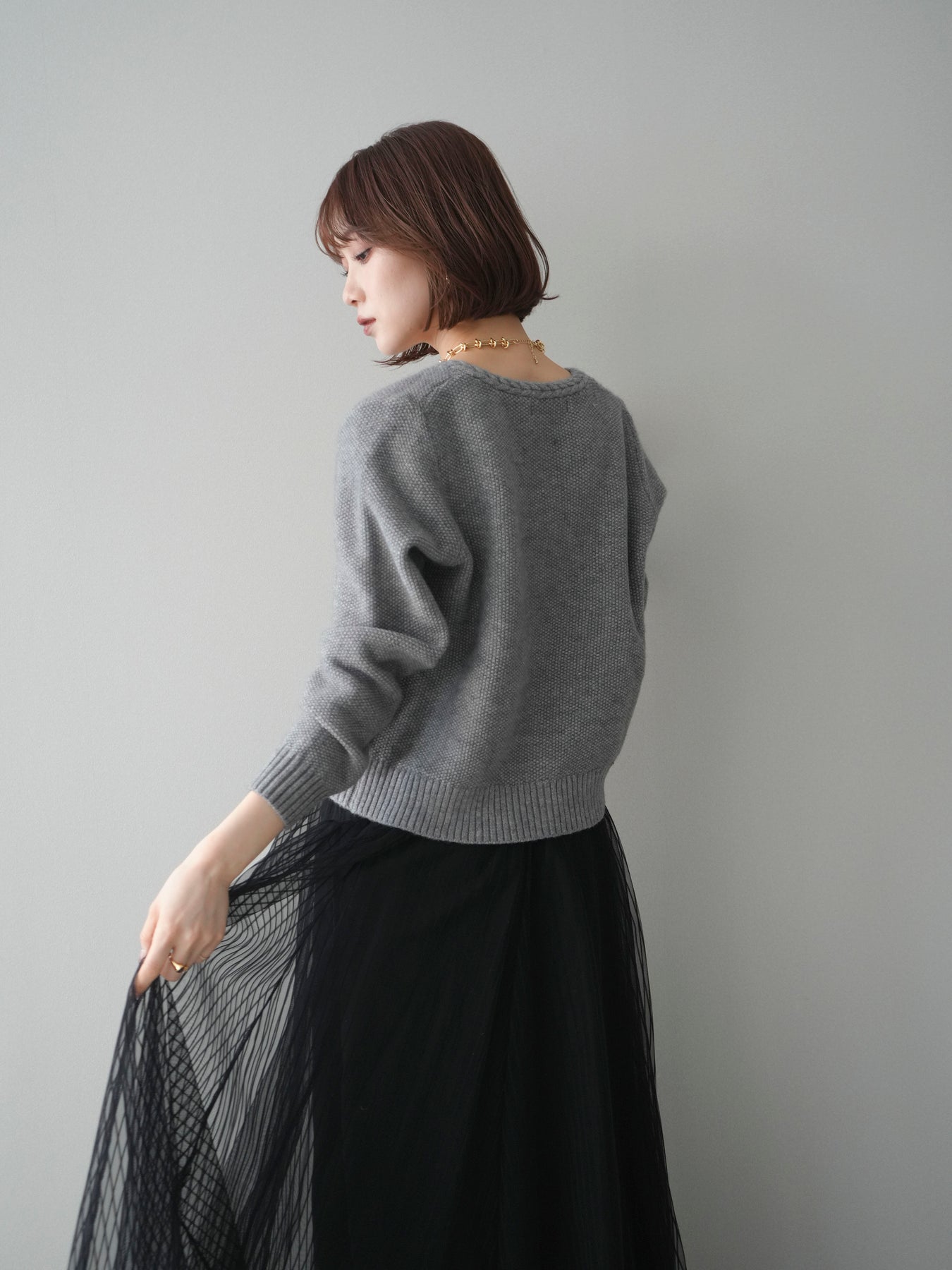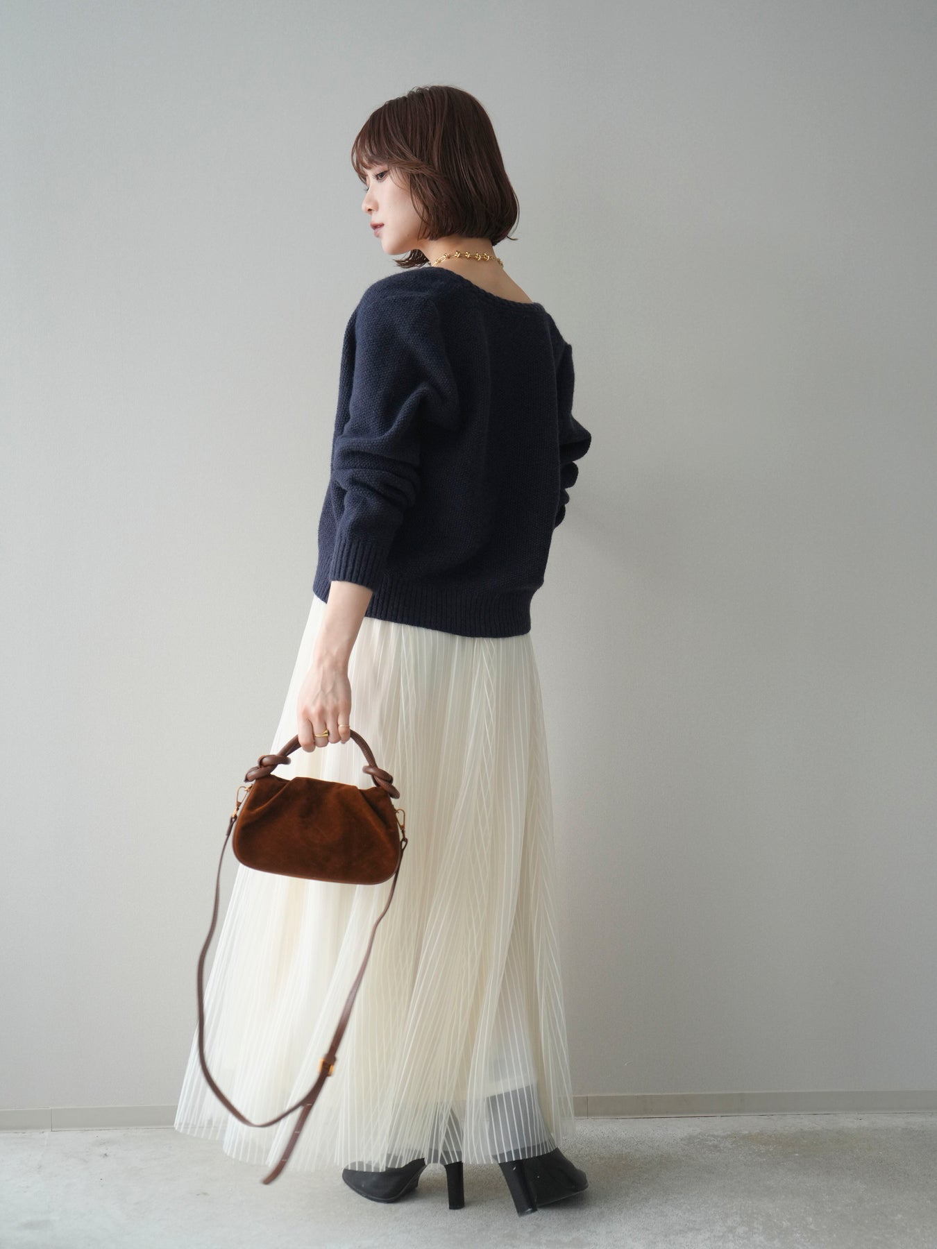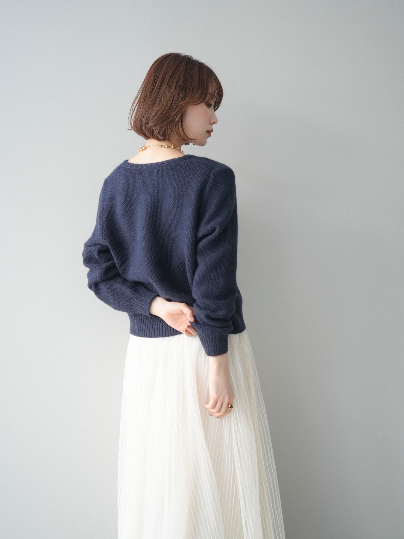 ・お手入れ方法:水温30℃以下手洗い優しく押し洗いでのお洗濯をお薦めします。素材の特性上、洗濯の際に毛抜け・色落ち・縮みが生じる恐れがありますので単独で・短時間でのお洗濯をお薦めします。裏返してネットに入れ手洗いコースで洗濯、洗濯後は形を整えてから干してください。※タンブラー乾燥は控えてください。 濡れたままの状態で擦れると、色落ち色移りすることがあります。つけ置き洗いや雨や汗で濡れたまま放置は避け、速やかに処理してください。着用中の摩擦や汗、水濡れ、濃淡差があるものとの重ね着にご注意ください。 また、素材の特性上伸びやすい為ハンガーの使用はお控えいただき畳んで保管ください。
