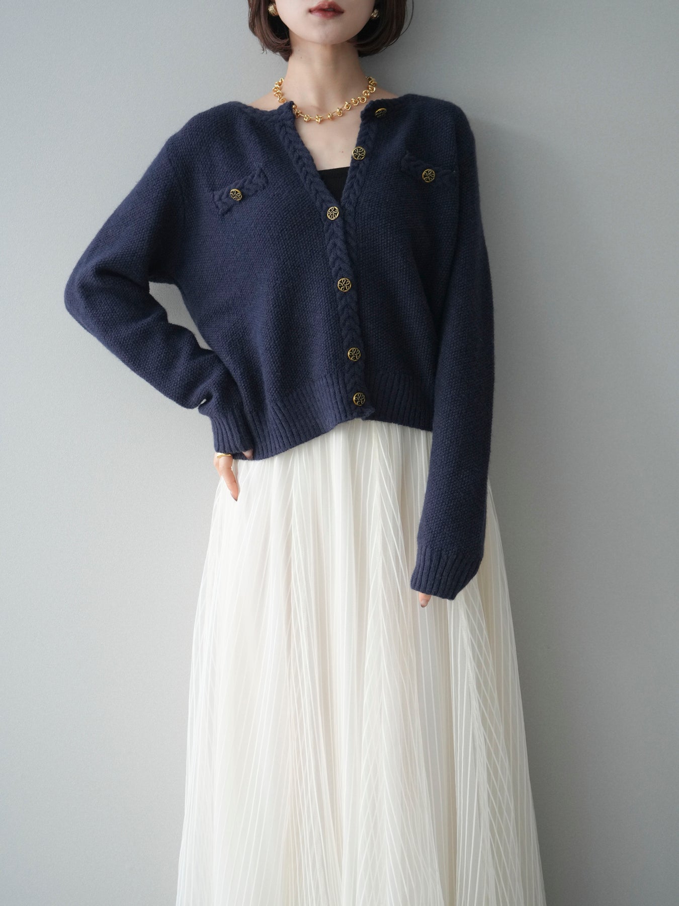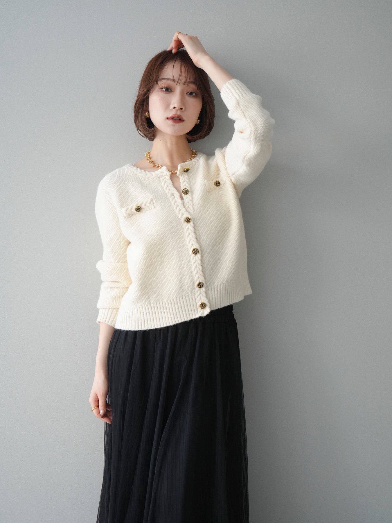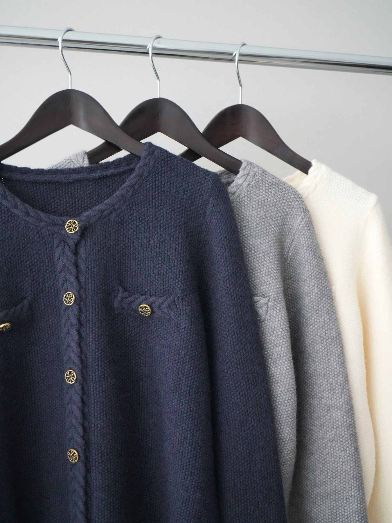 ◆ [予約]編みこみアンティークボタンニットカーディガン