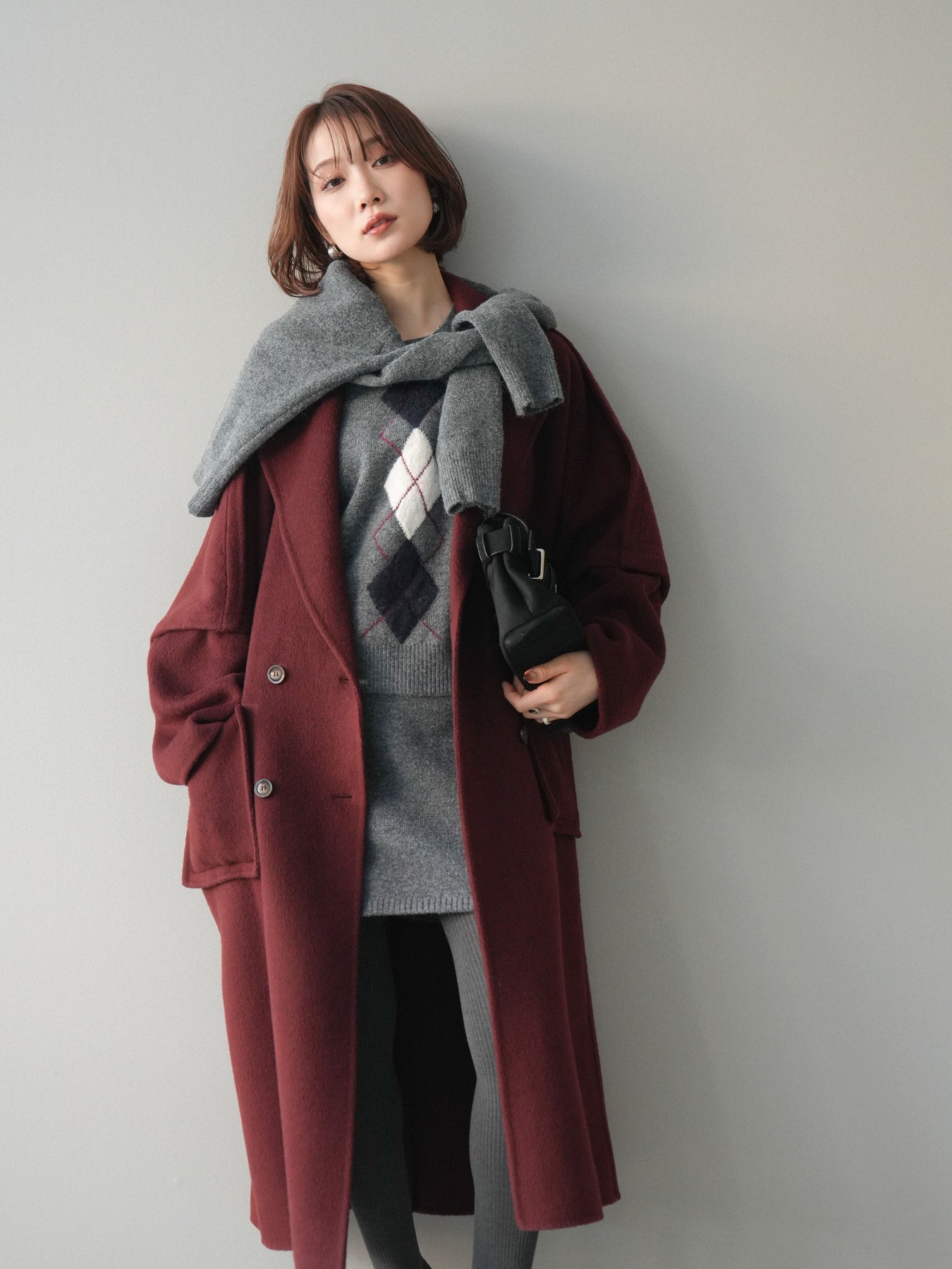 上質なカシミヤ混素材を贅沢に使用したダブルブレストロングコート。ふんわりとした柔らかさと軽やかな着心地が際立ち、身体を包み込むような暖かさが魅力の一枚です。ゆったりとしたシルエットながらも、深めのラペルやダブルボタンのディテールが洗練された印象を与え、羽織るだけでスタイリングを格上げしてくれます。大きめのポケットがデザインのアクセントになりつつ、実用性も兼備。シンプルな装いに合わせるだけで高級感が漂う、大人のワードローブに欠かせないロングコートです。