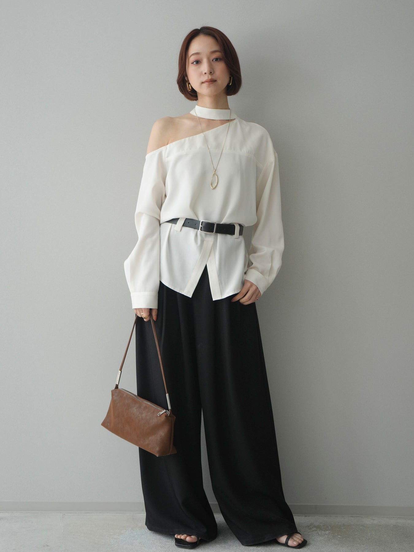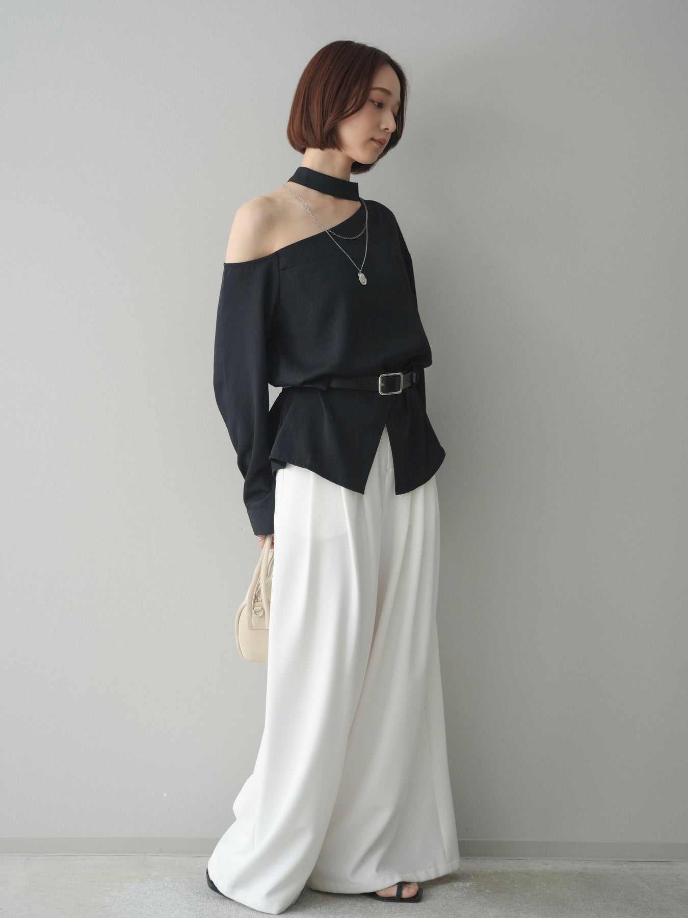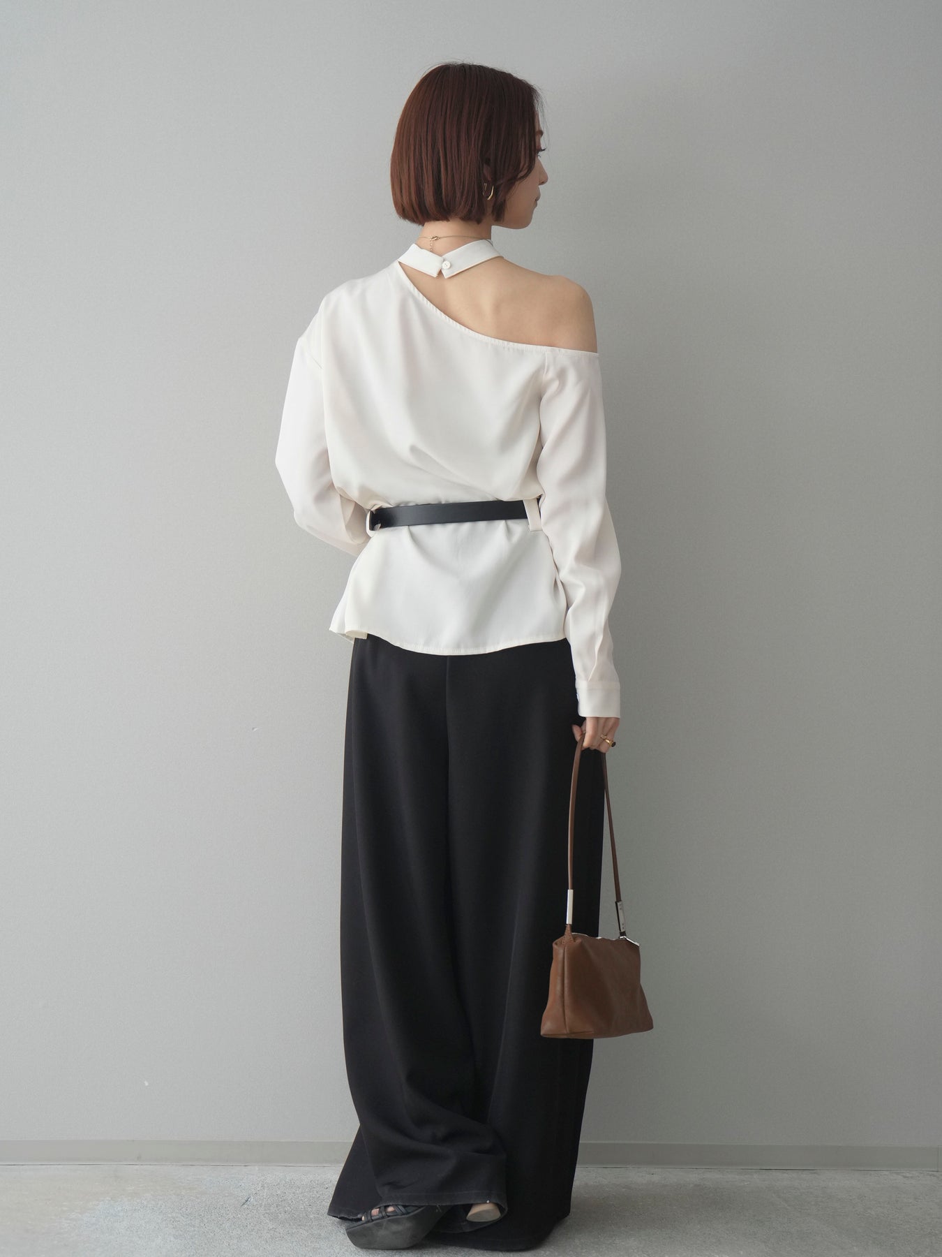 ◆ [予約]ベルト付ワンショルダースリットブラウス