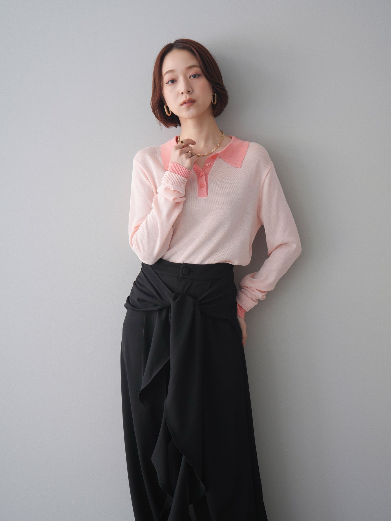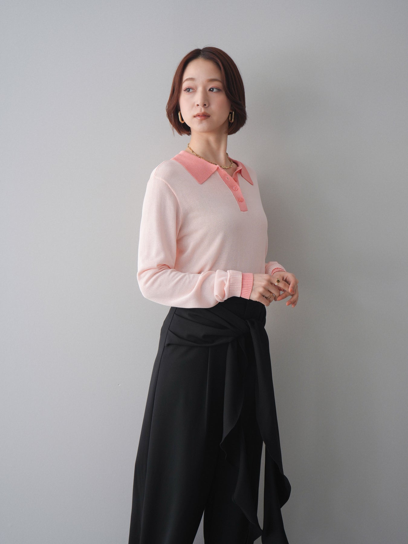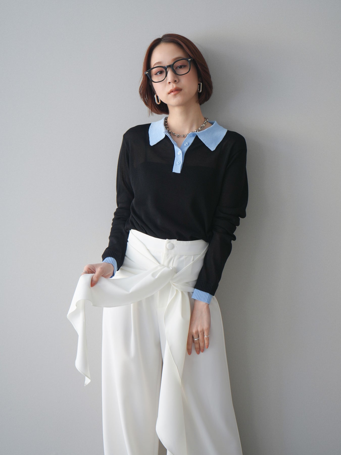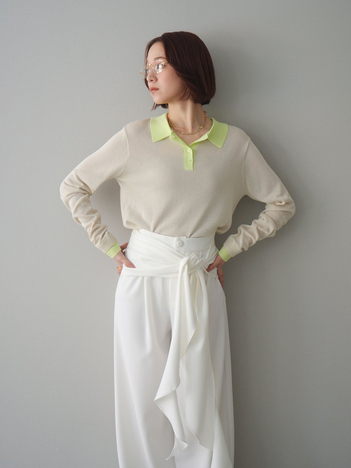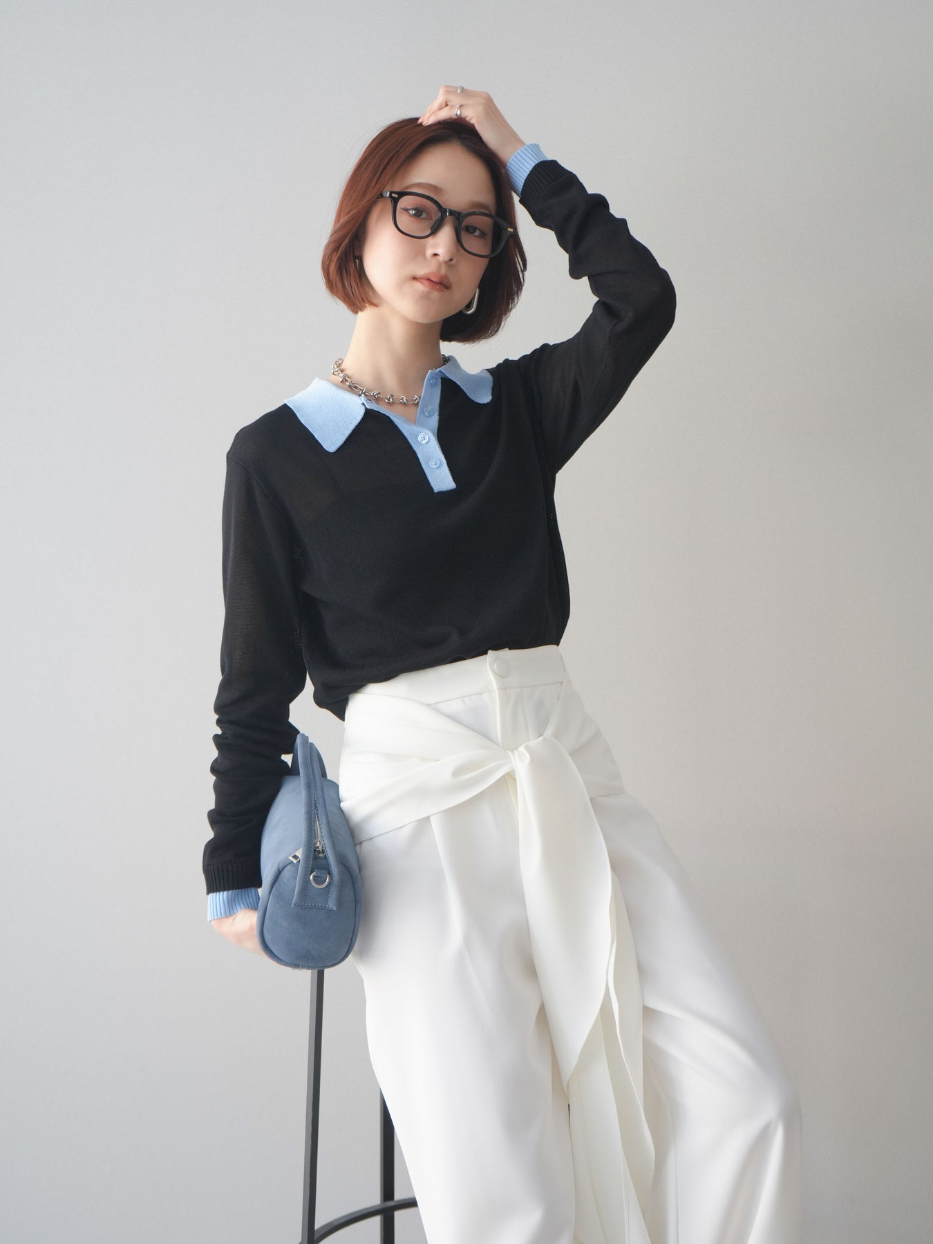 シアーな質感が軽やかな印象を与える配色デザインシアーポロニット。襟元や前立て、袖口に施したコントラストカラーがさりげないアクセントになり、シンプルながらも目を惹く一枚に仕上がっています。程よくゆとりのあるシルエットで抜け感を演出し、ボタンを開けてラフに着こなすのもおすすめ。デニムやスラックス、スカートまで幅広いボトムスと相性が良く、コーディネートに新鮮さをプラスしてくれるアイテムです。