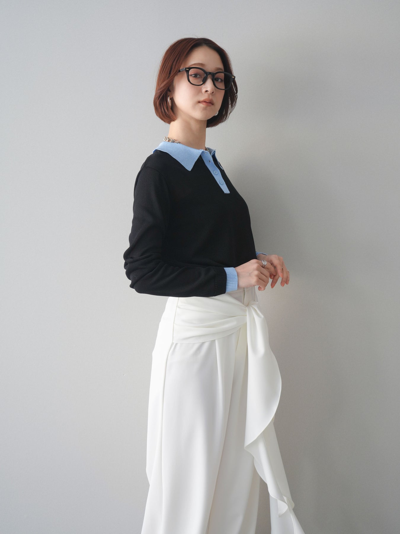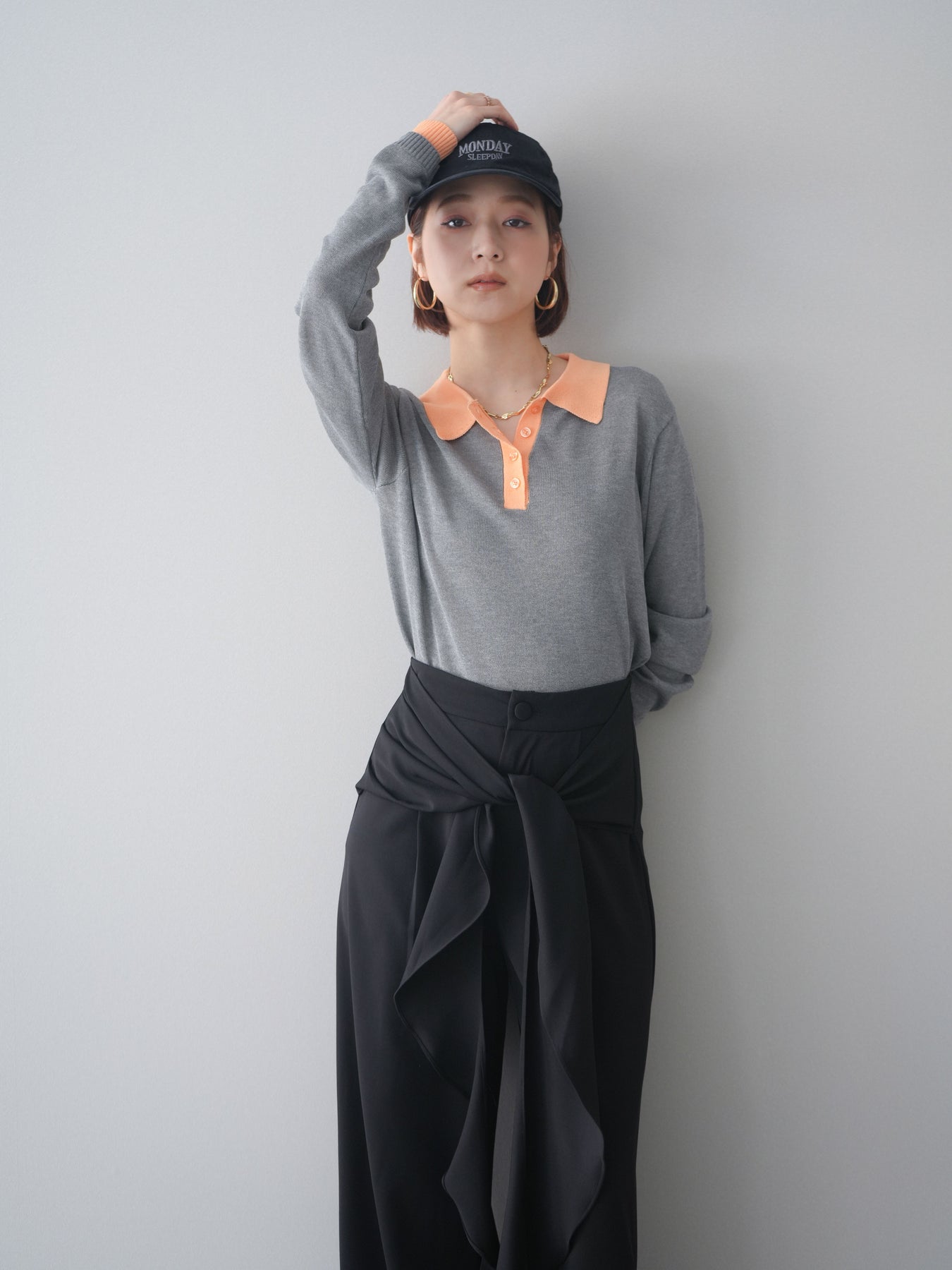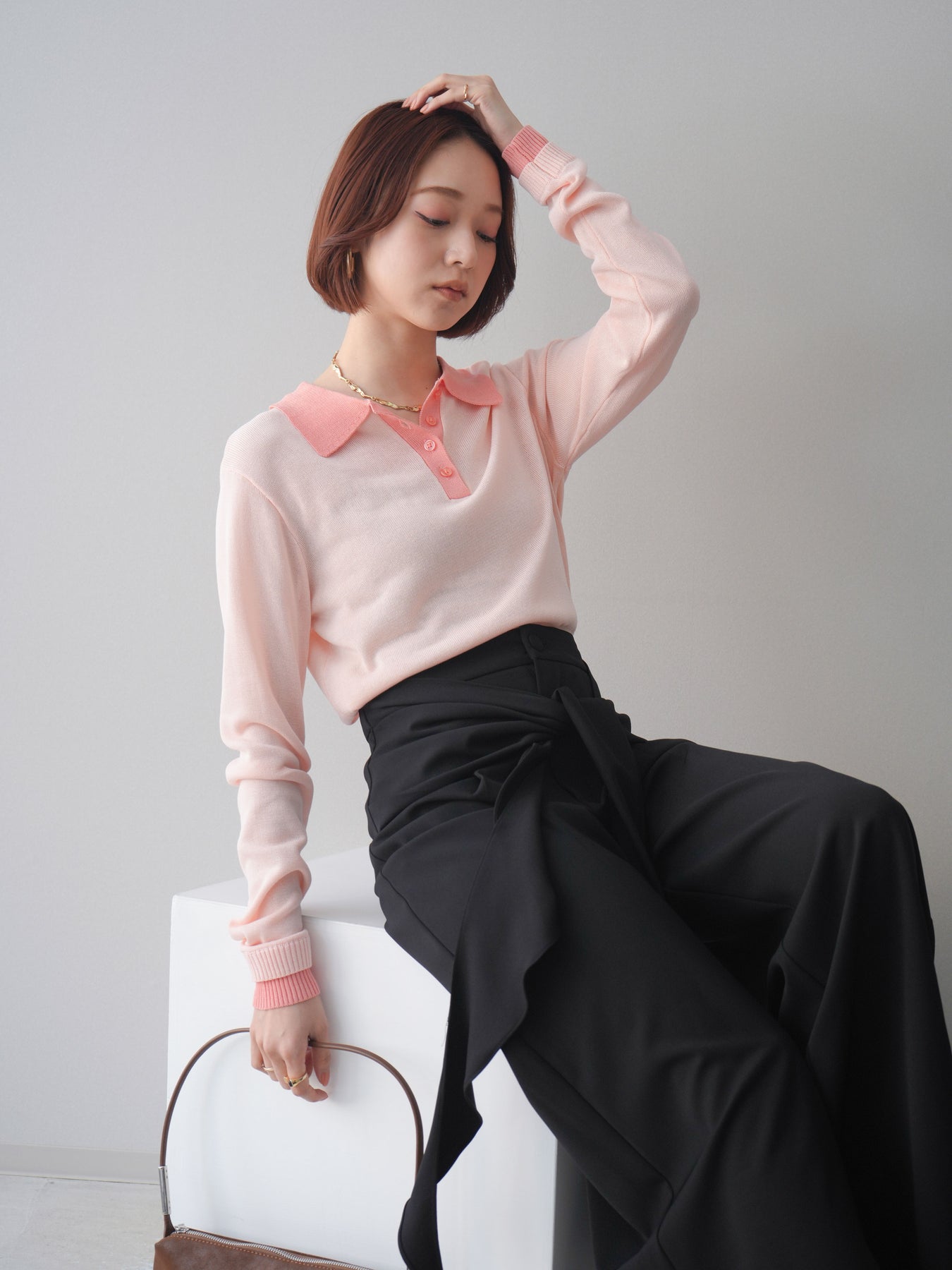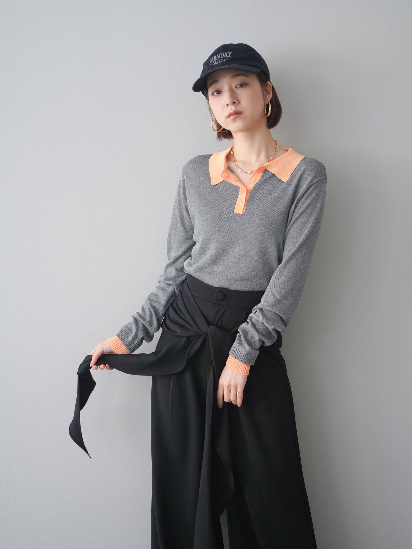 シアーな質感が軽やかな印象を与える配色デザインシアーポロニット。襟元や前立て、袖口に施したコントラストカラーがさりげないアクセントになり、シンプルながらも目を惹く一枚に仕上がっています。程よくゆとりのあるシルエットで抜け感を演出し、ボタンを開けてラフに着こなすのもおすすめ。デニムやスラックス、スカートまで幅広いボトムスと相性が良く、コーディネートに新鮮さをプラスしてくれるアイテムです。
