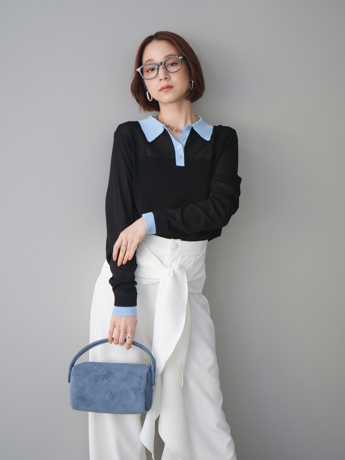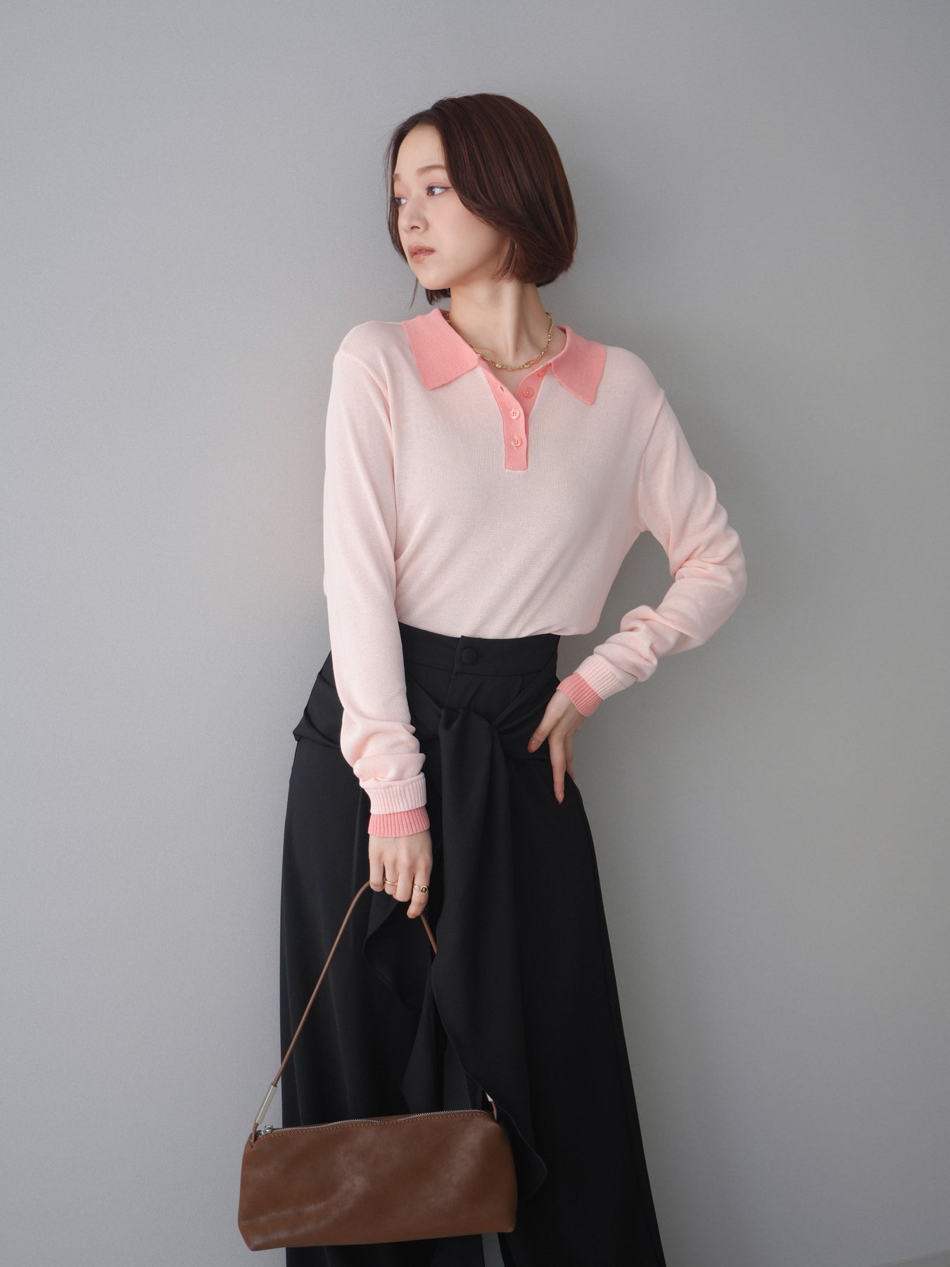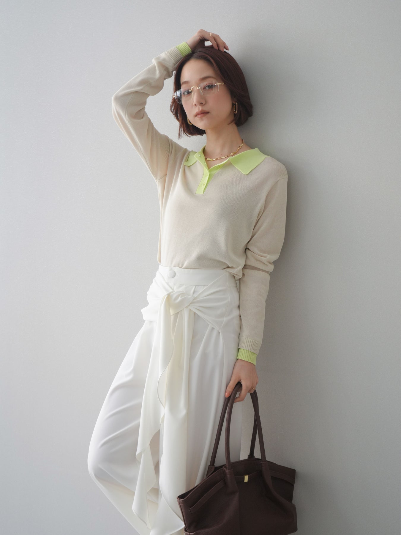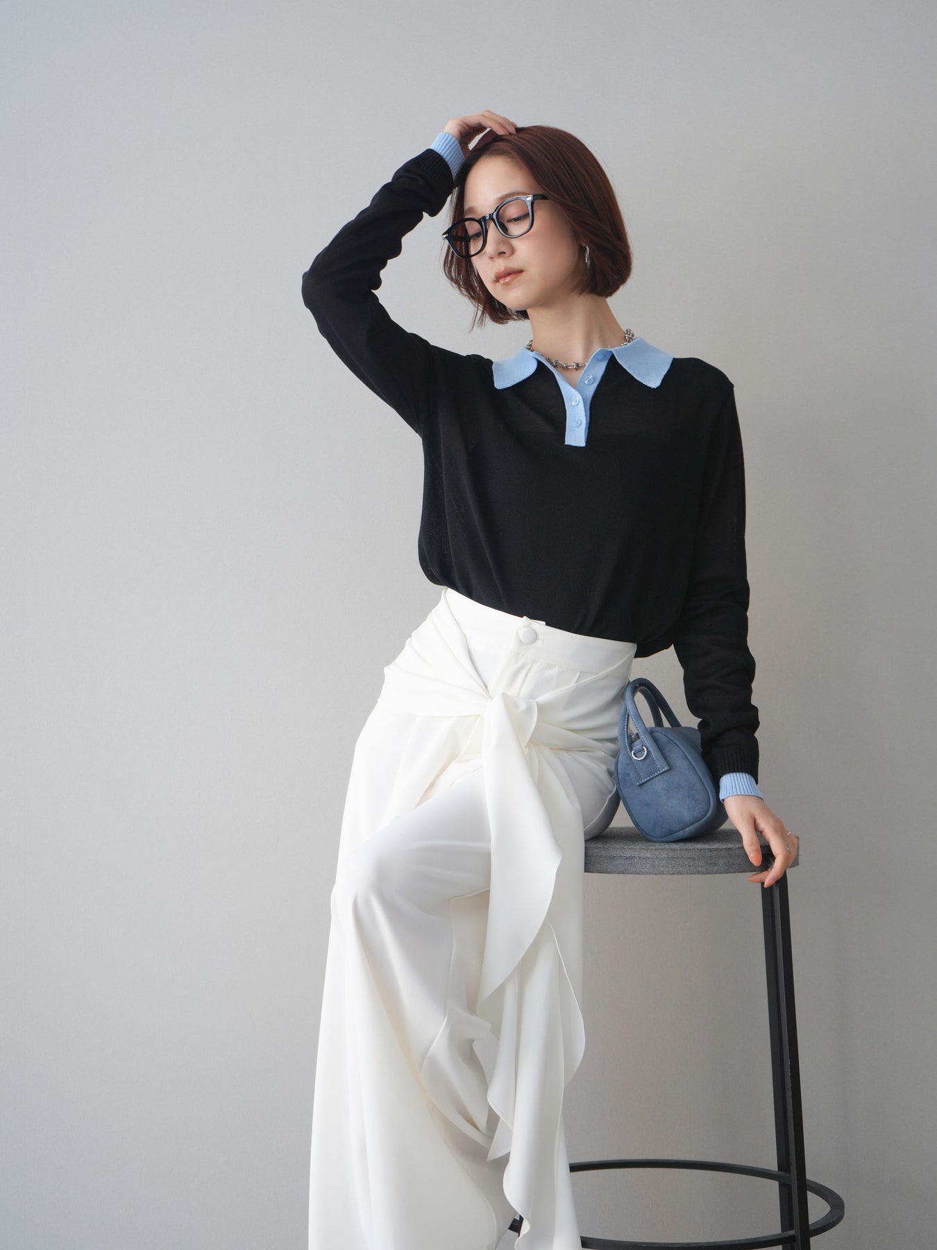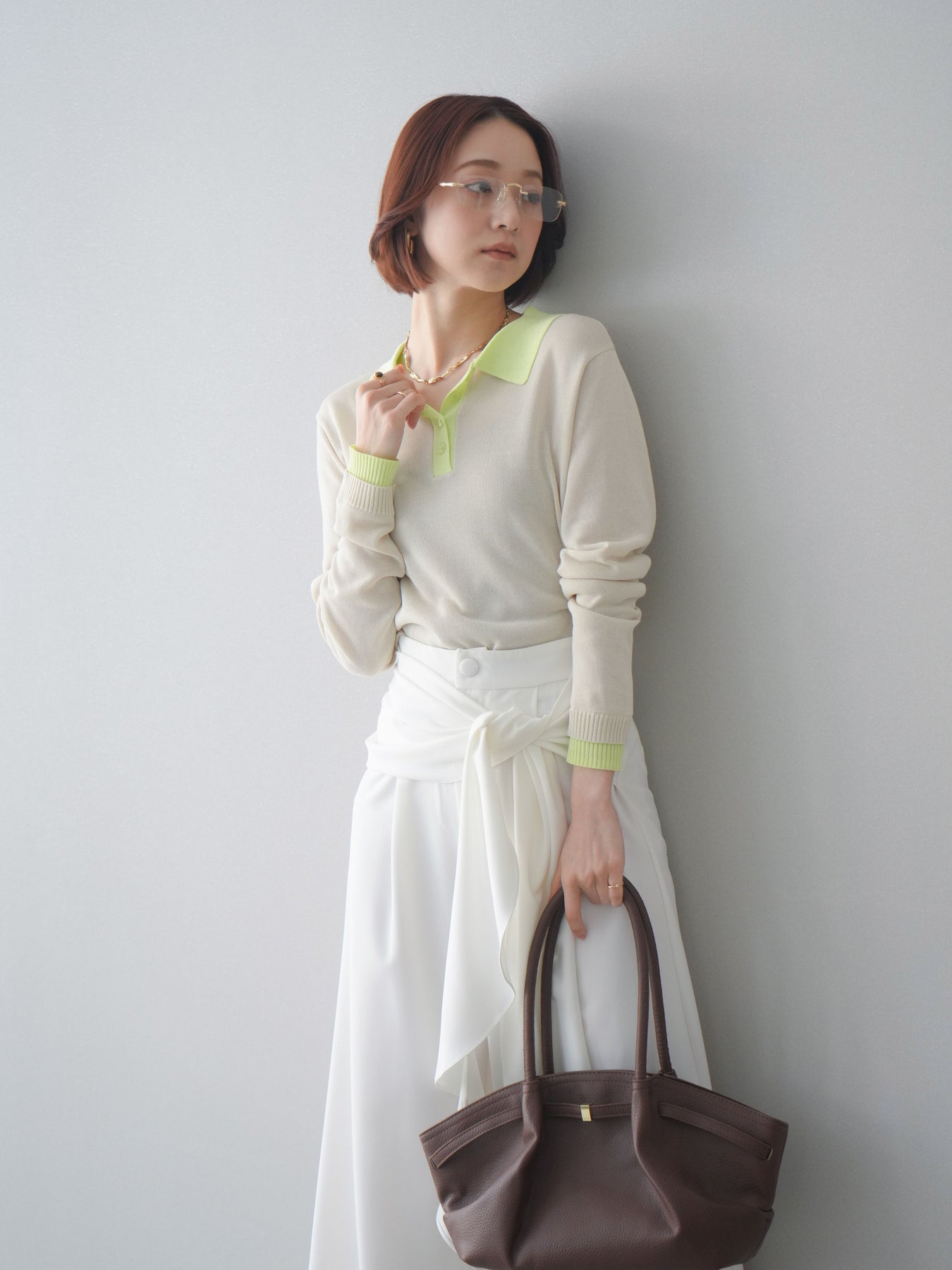 シアーな質感が軽やかな印象を与える配色デザインシアーポロニット。襟元や前立て、袖口に施したコントラストカラーがさりげないアクセントになり、シンプルながらも目を惹く一枚に仕上がっています。程よくゆとりのあるシルエットで抜け感を演出し、ボタンを開けてラフに着こなすのもおすすめ。デニムやスラックス、スカートまで幅広いボトムスと相性が良く、コーディネートに新鮮さをプラスしてくれるアイテムです。