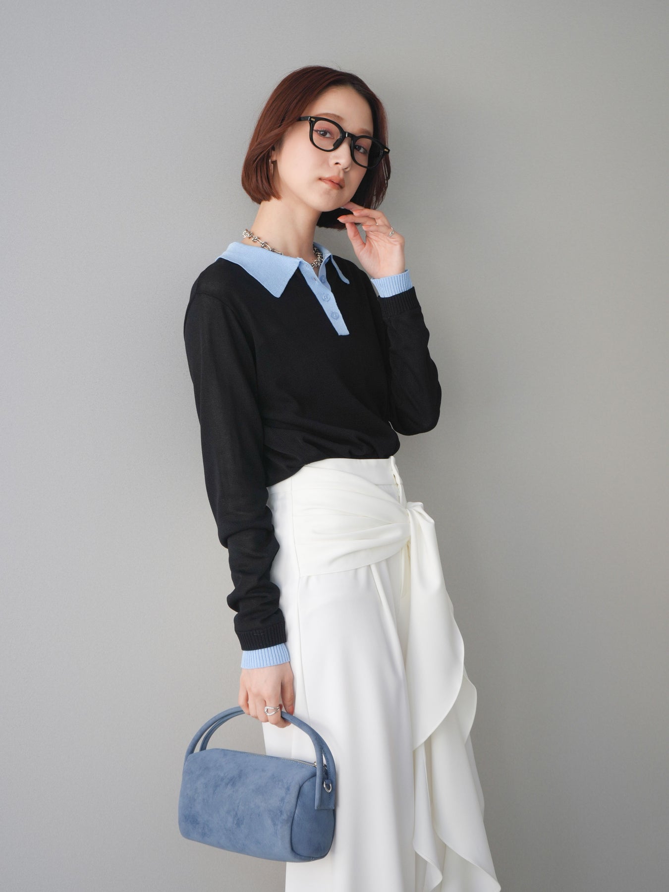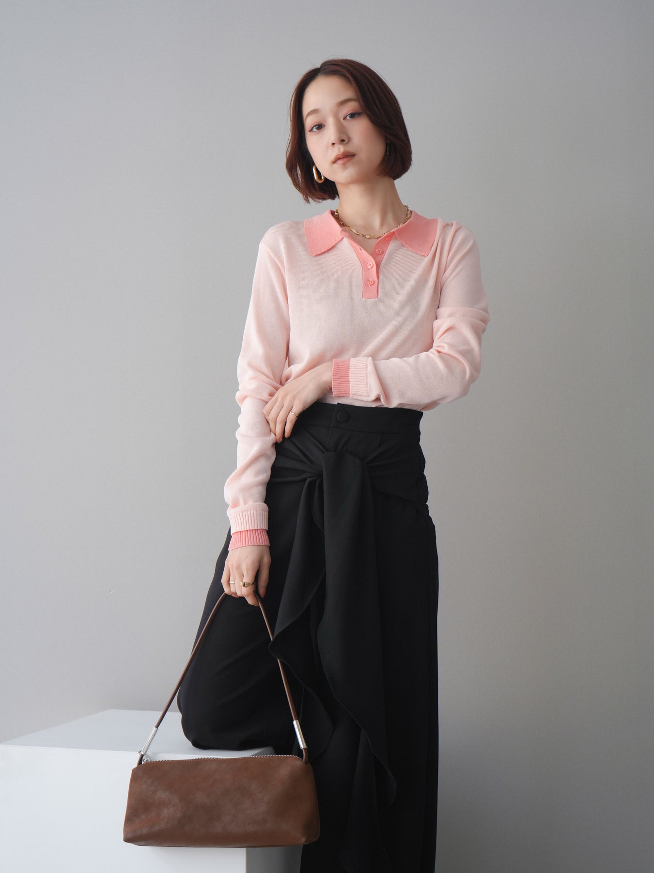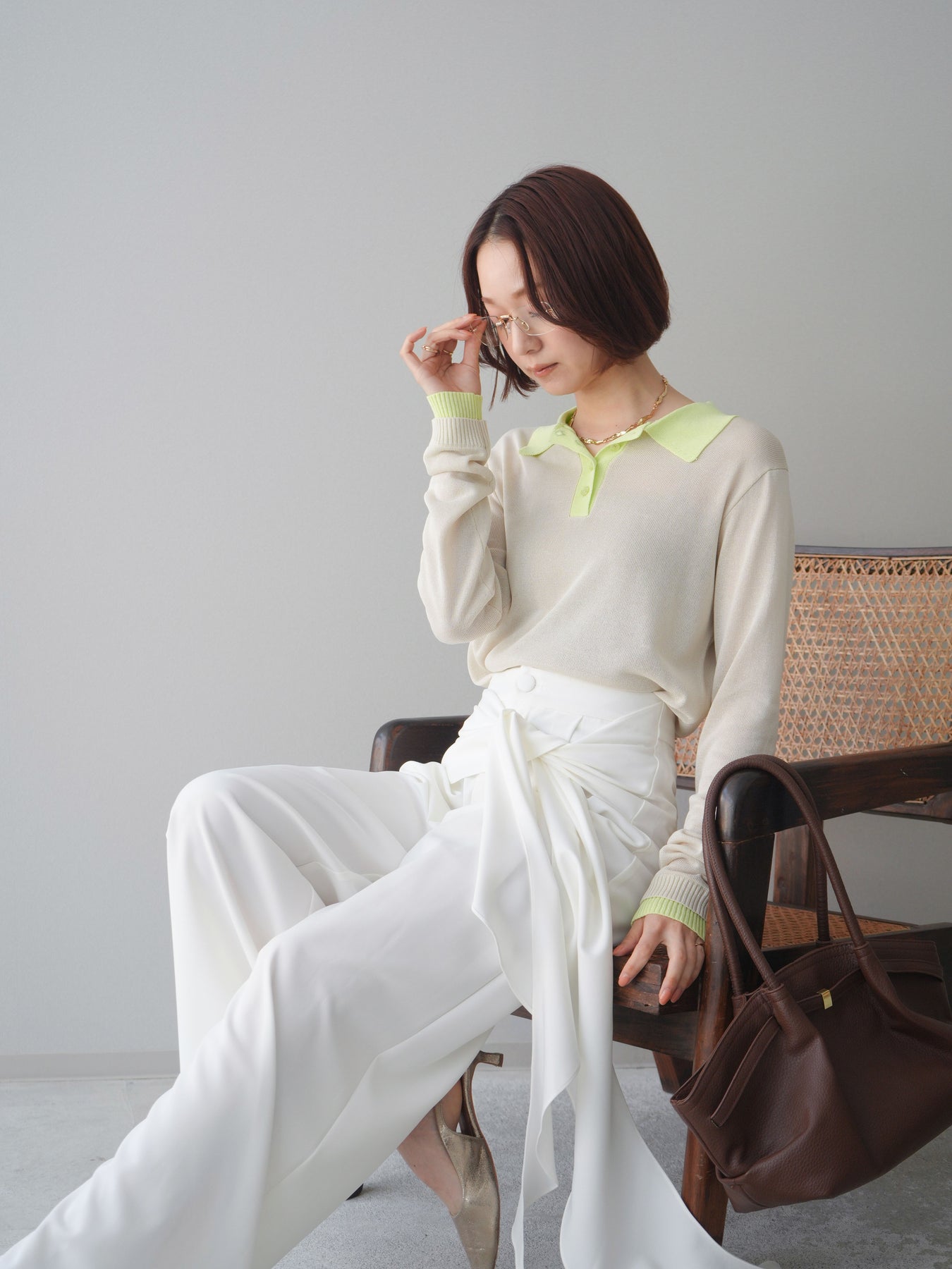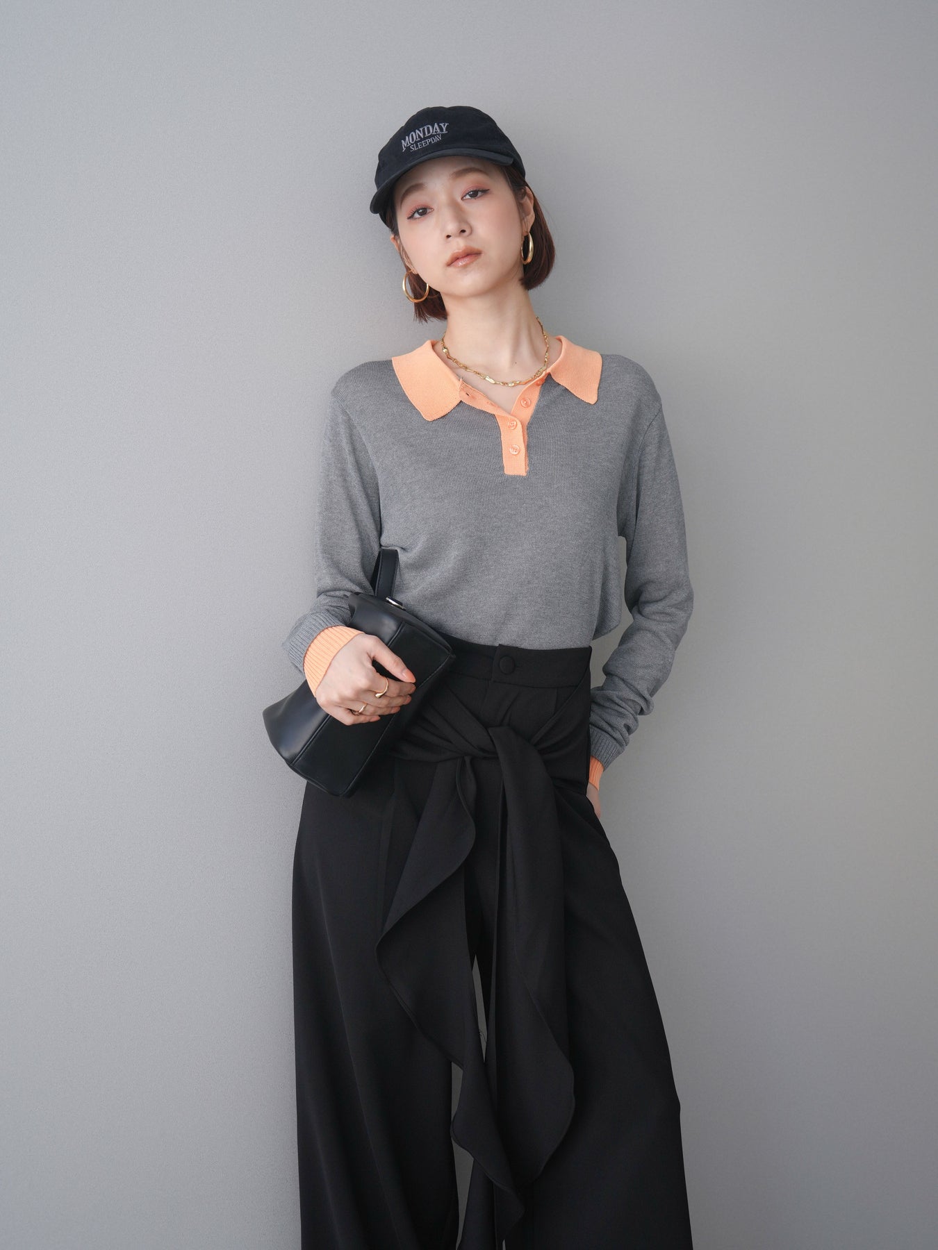 シアーな質感が軽やかな印象を与える配色デザインシアーポロニット。襟元や前立て、袖口に施したコントラストカラーがさりげないアクセントになり、シンプルながらも目を惹く一枚に仕上がっています。程よくゆとりのあるシルエットで抜け感を演出し、ボタンを開けてラフに着こなすのもおすすめ。デニムやスラックス、スカートまで幅広いボトムスと相性が良く、コーディネートに新鮮さをプラスしてくれるアイテムです。