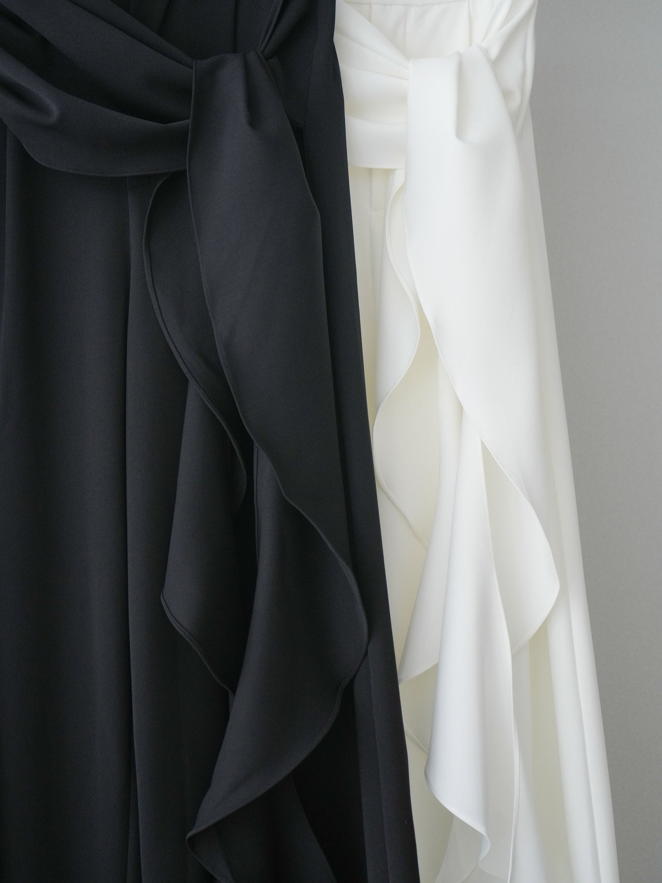 滑らかな落ち感素材で仕立てた、存在感のあるラッフルベルトワイドパンツ。ウエストにあしらった立体的なラッフルデザインが動くたびに揺れ、シンプルなトップスと合わせるだけで華やかな印象に仕上がります。脚のラインを拾いにくいワイドシルエットで、縦のラインを強調しながらすっきりとしたバランスを演出。きれいめからモードなスタイリングまで幅広く活躍する一着です。