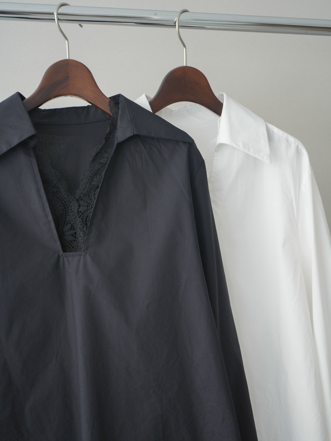 すっきりとしたスキッパーデザインに、胸元へさりげなくレースをあしらったブラウス。抜け感のあるVラインが顔まわりをシャープに見せ、インナーとのレイヤードも楽しめる一枚です。程よくゆとりのあるシルエットと前後差のある裾がこなれた印象を演出し、パンツにもスカートにもバランスよく合わせられます。シンプルながらディテールが映える、大人のための上品ブラウスです。 ※ボトムス、キャミソール(インナー)以外の商品は一律でインナーは付属していません