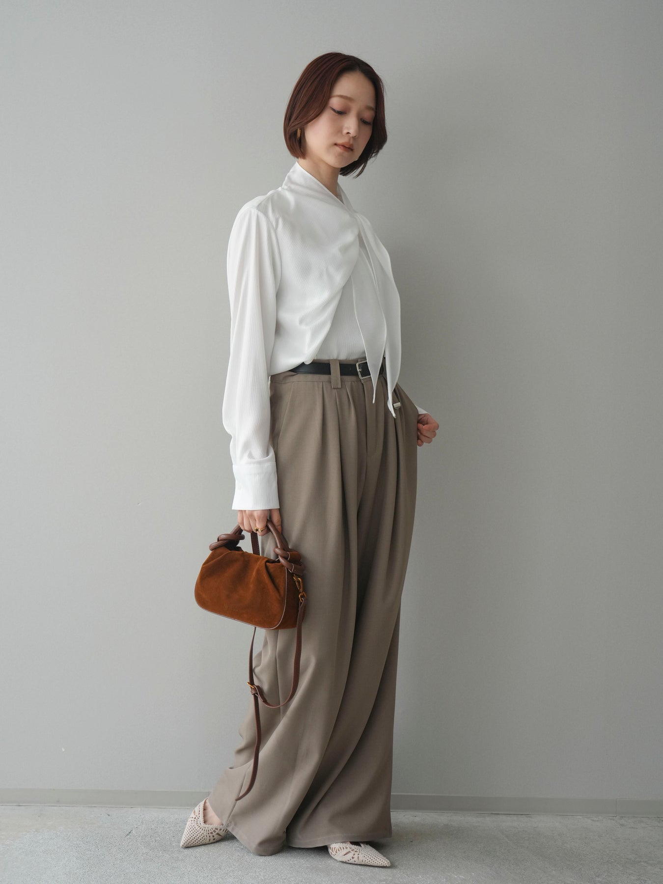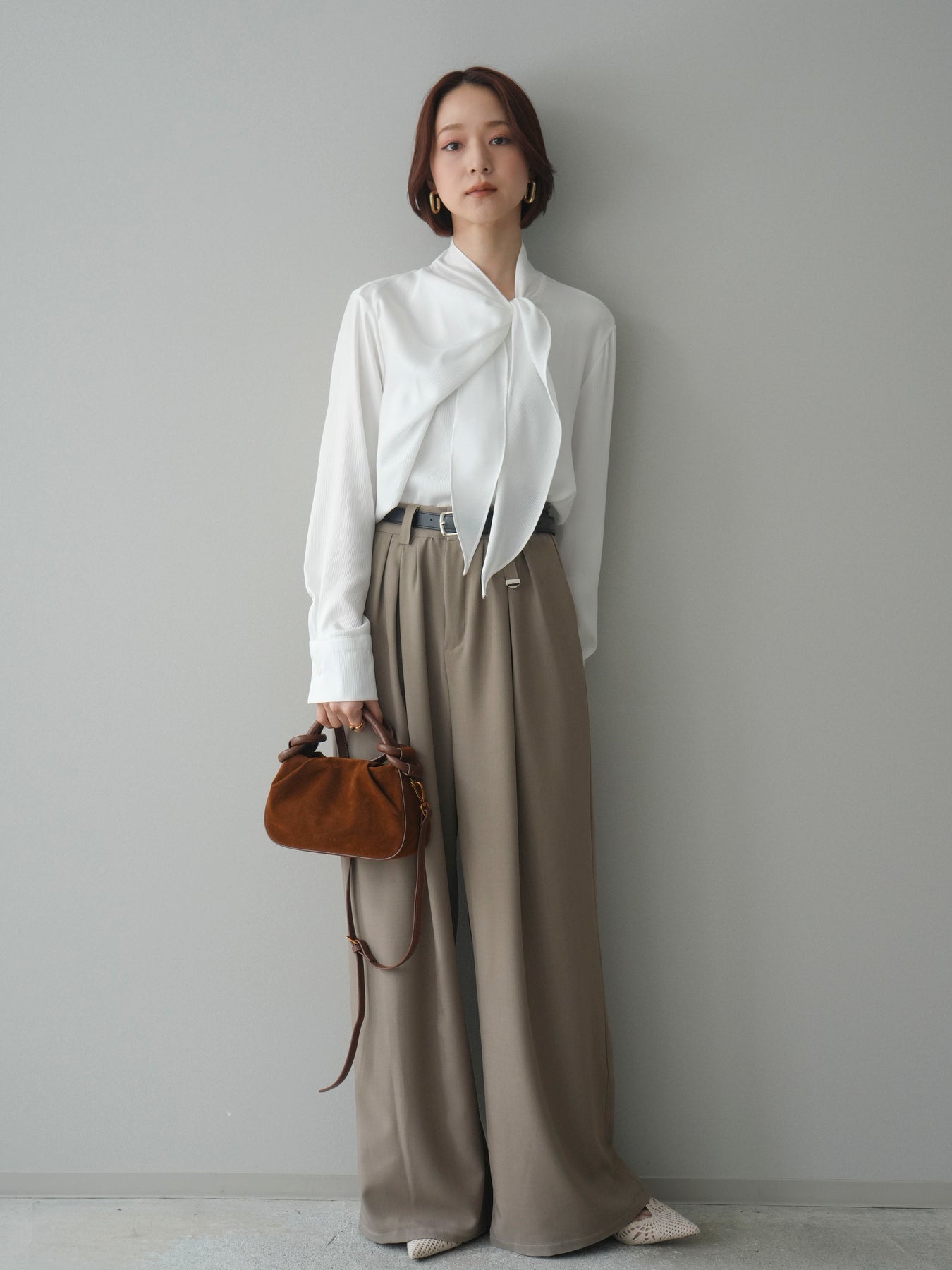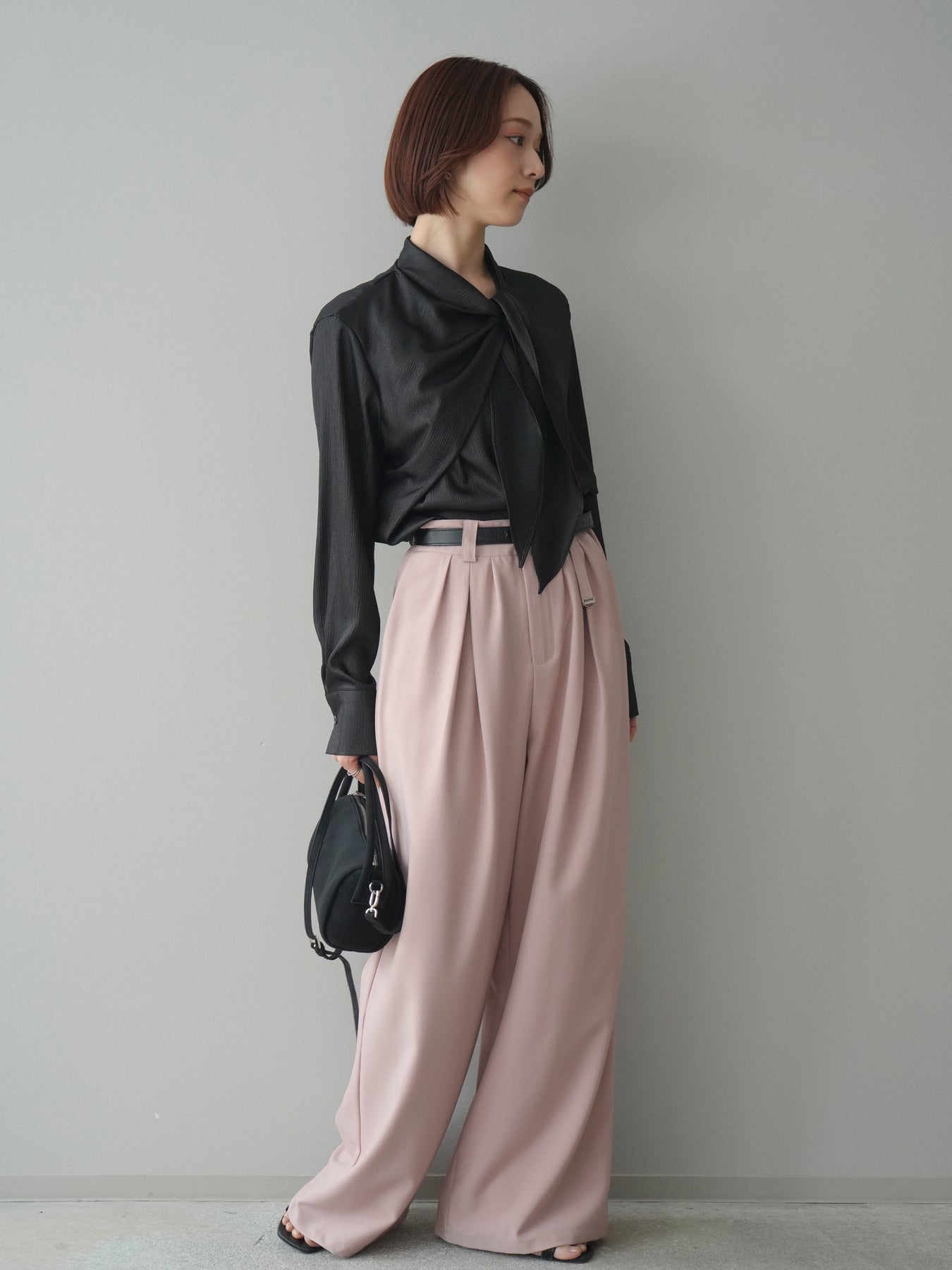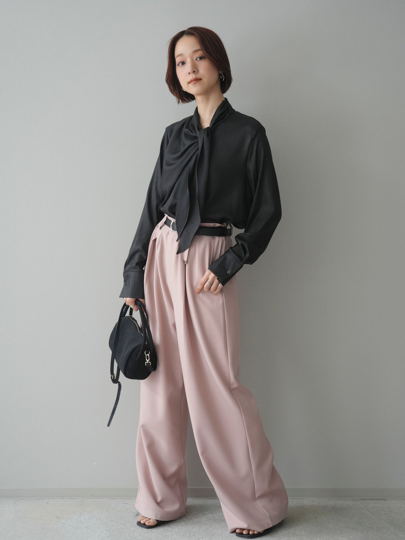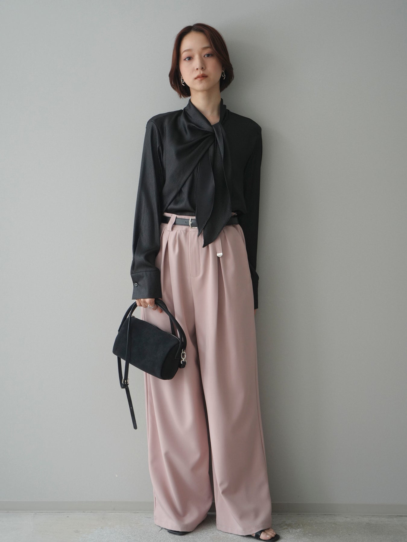 [SET]楊柳シャイニータイブラウス+ベルト付キーホルダーモチーフワイドパンツ(2set)