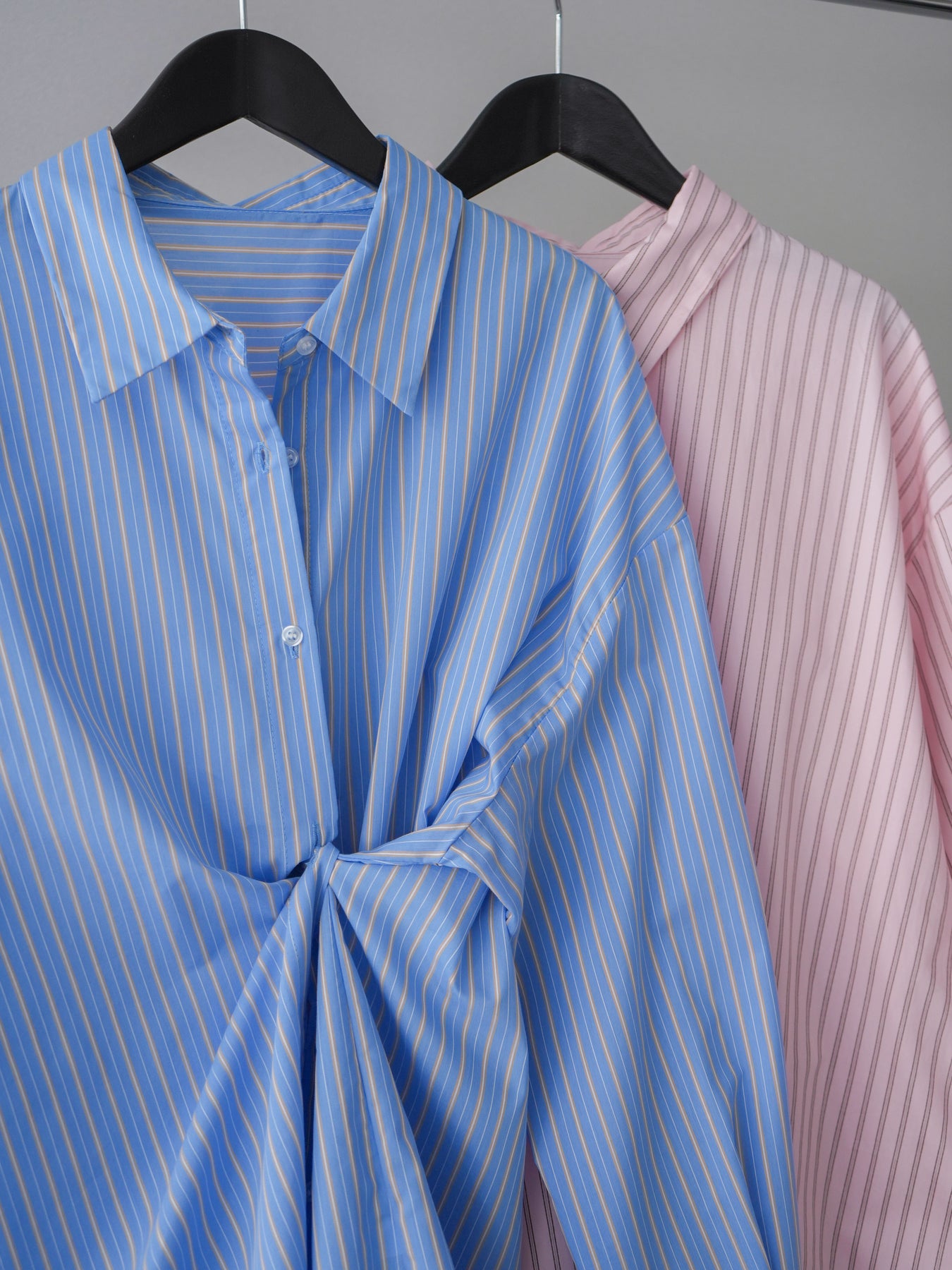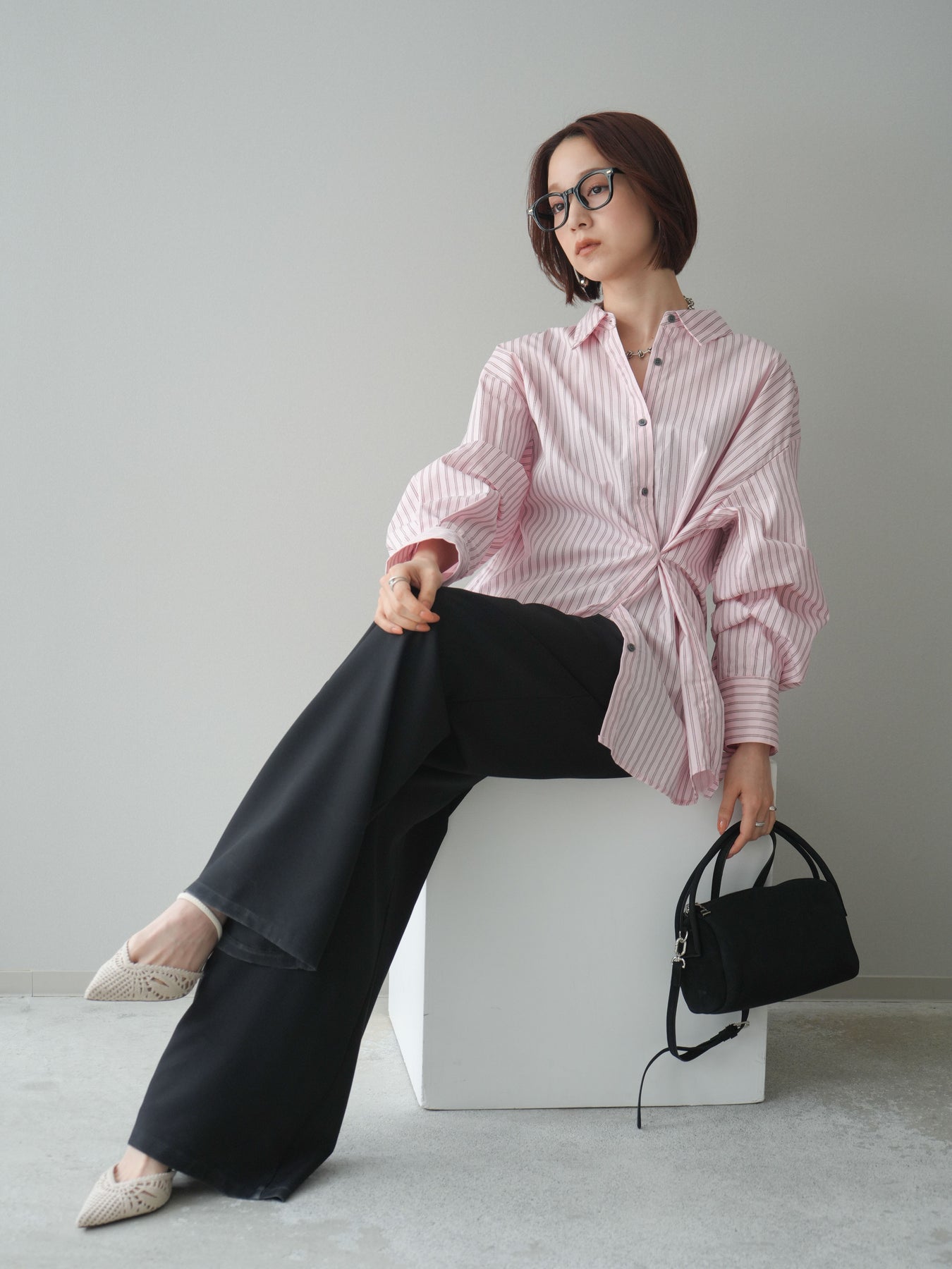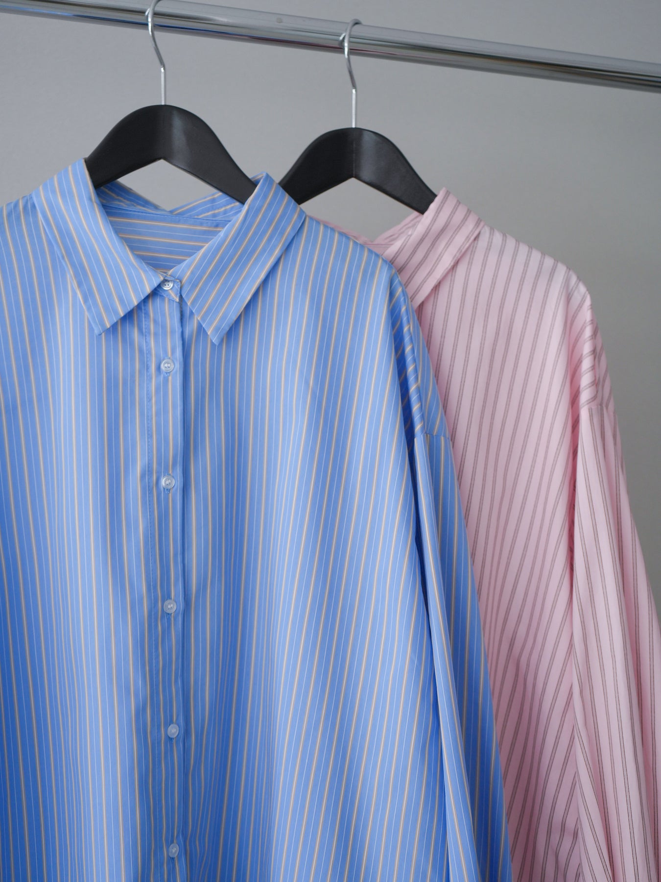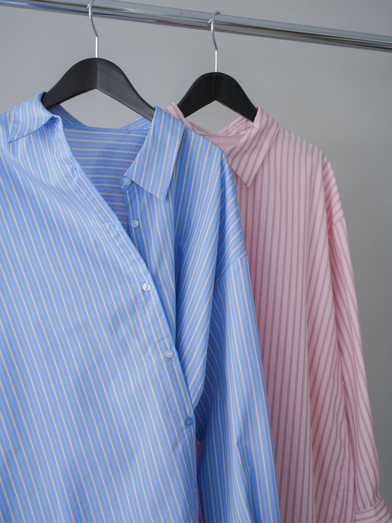 程よくハリのある素材感で仕立てた、ストライプ柄のルーズシャツ。ゆとりのあるシルエットが抜け感を演出し、さらっと羽織るだけでこなれた印象に仕上がります。前後2way仕様で、ベーシックなシャツとしてはもちろん、ボタンをアレンジしてラップ風に着こなすなど表情の変化を楽しめる一枚。ヒップにかかる長めの着丈で、パンツスタイルにもバランスよく合わせていただけます。 ※ボトムス、キャミソール(インナー)以外の商品は一律でインナーは付属していません