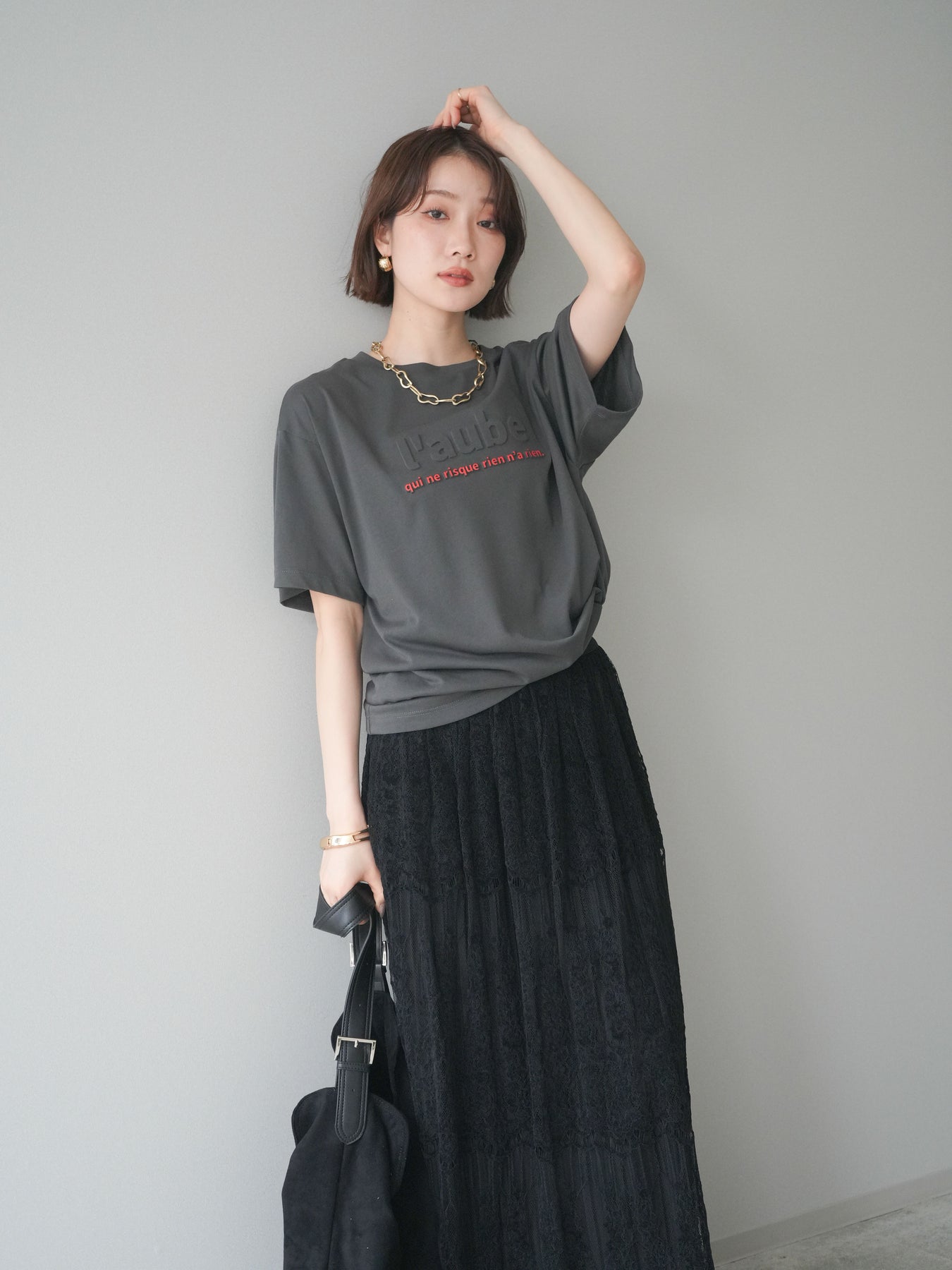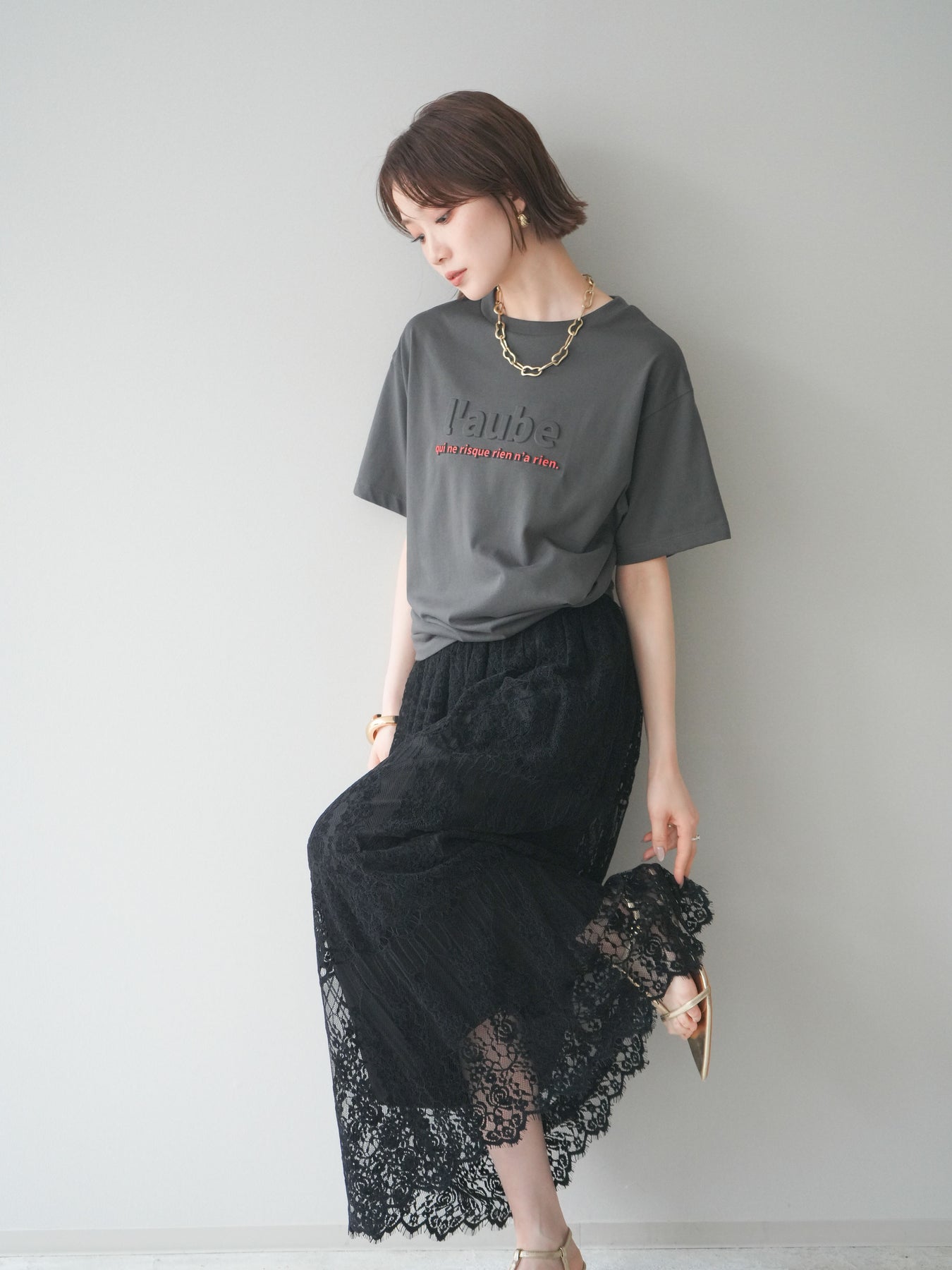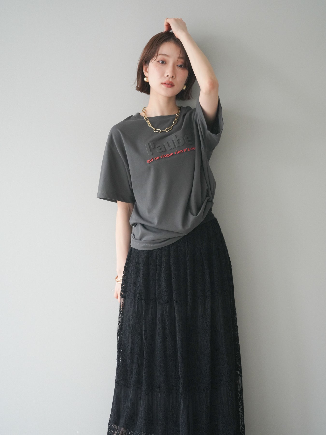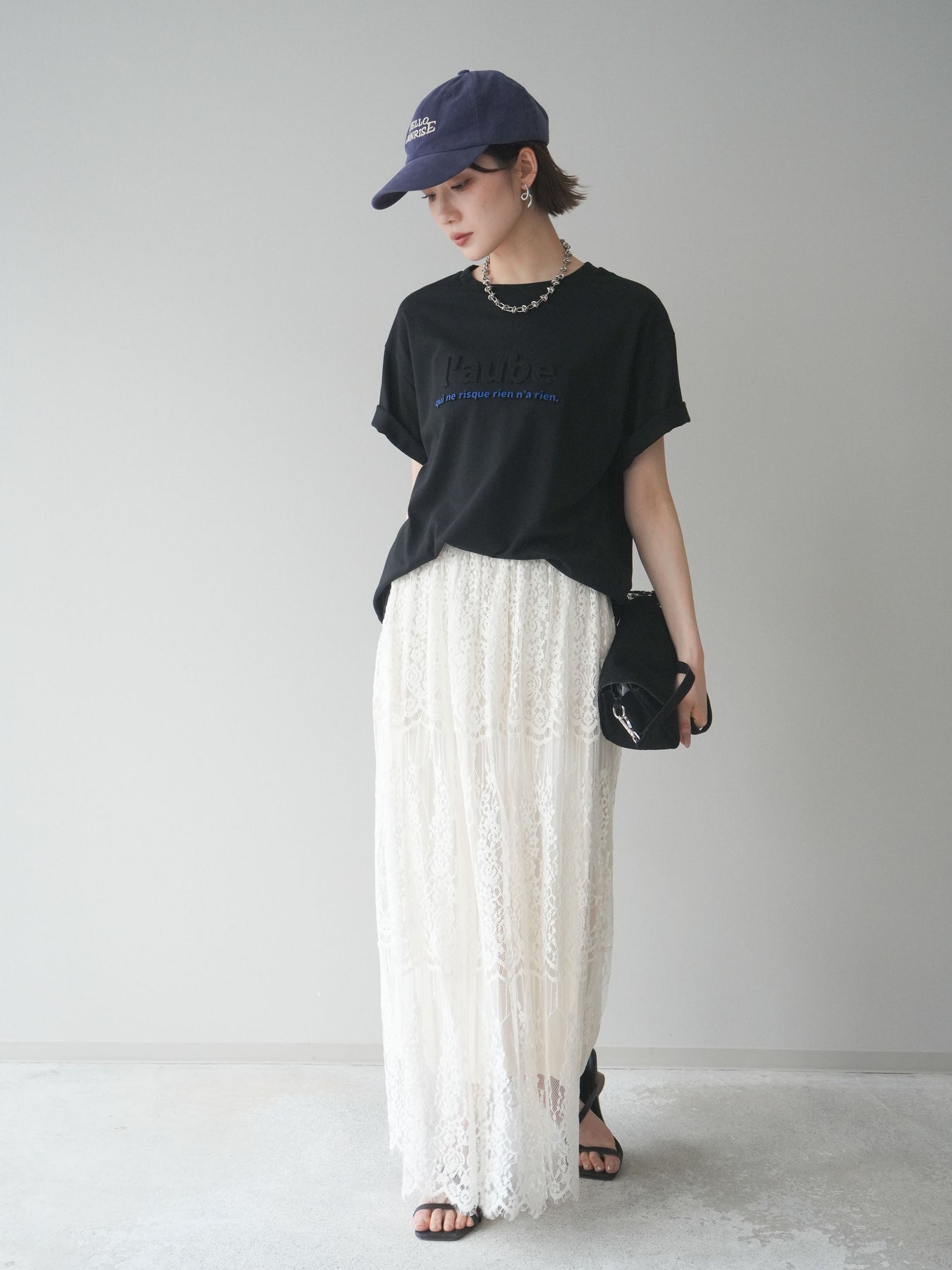 [SET]エンボスロゴTEE+裏プリーツ総レースロングスカート(2set)