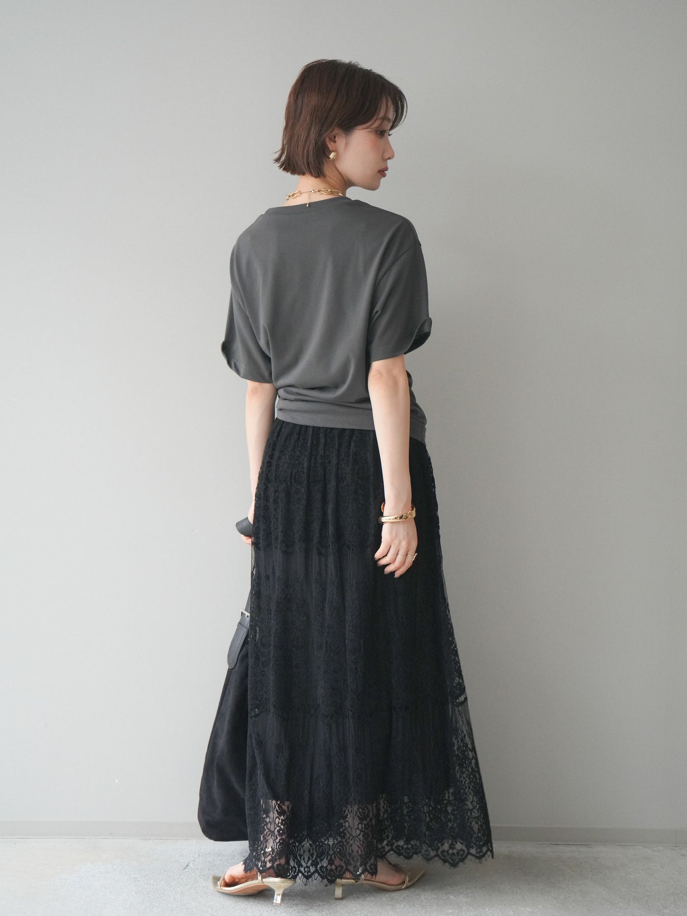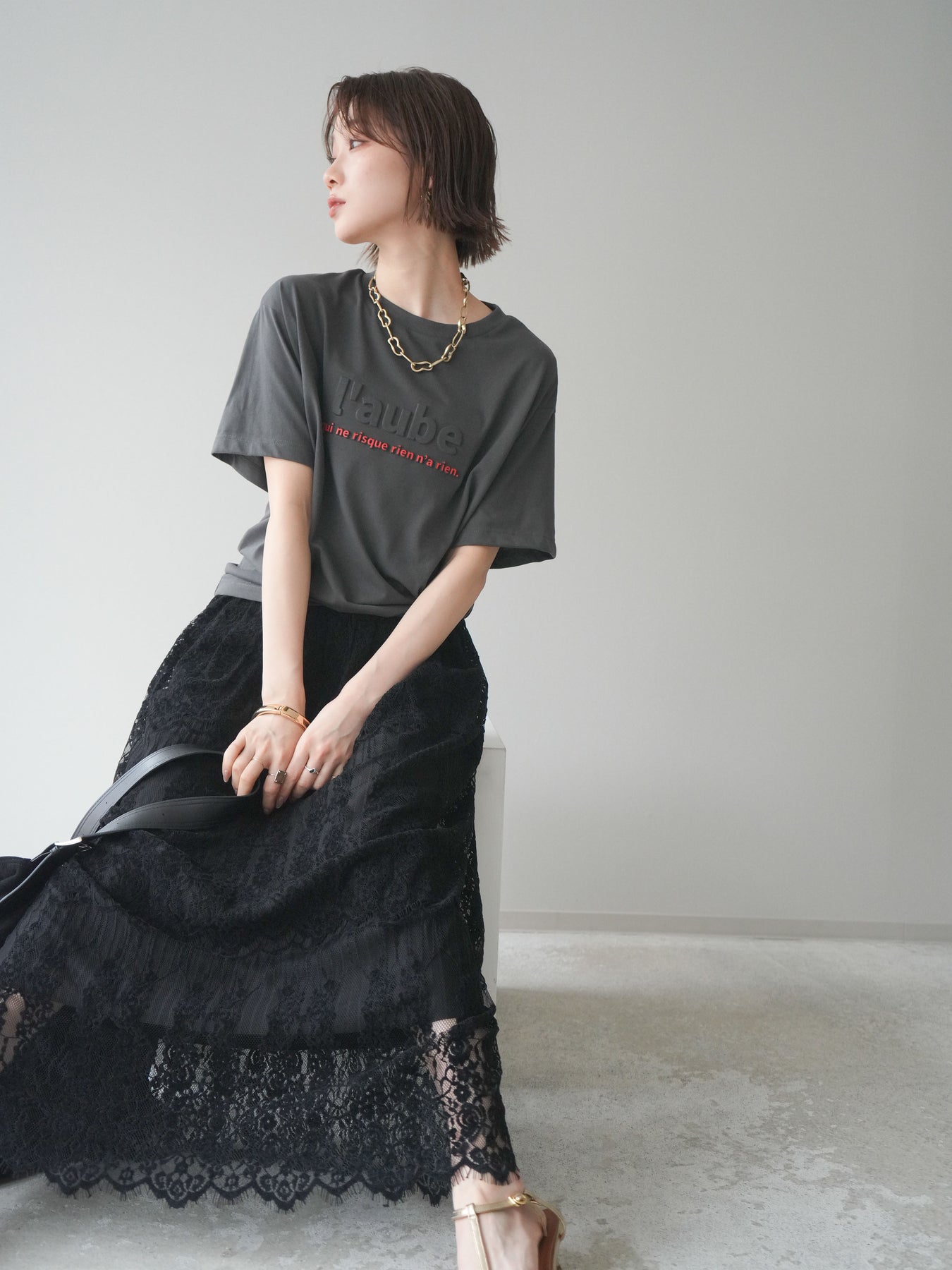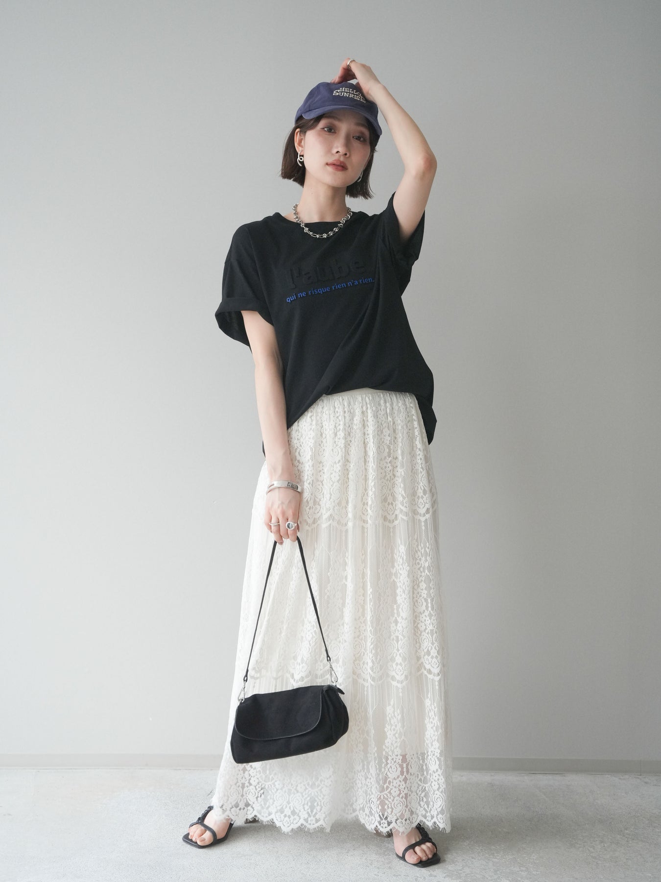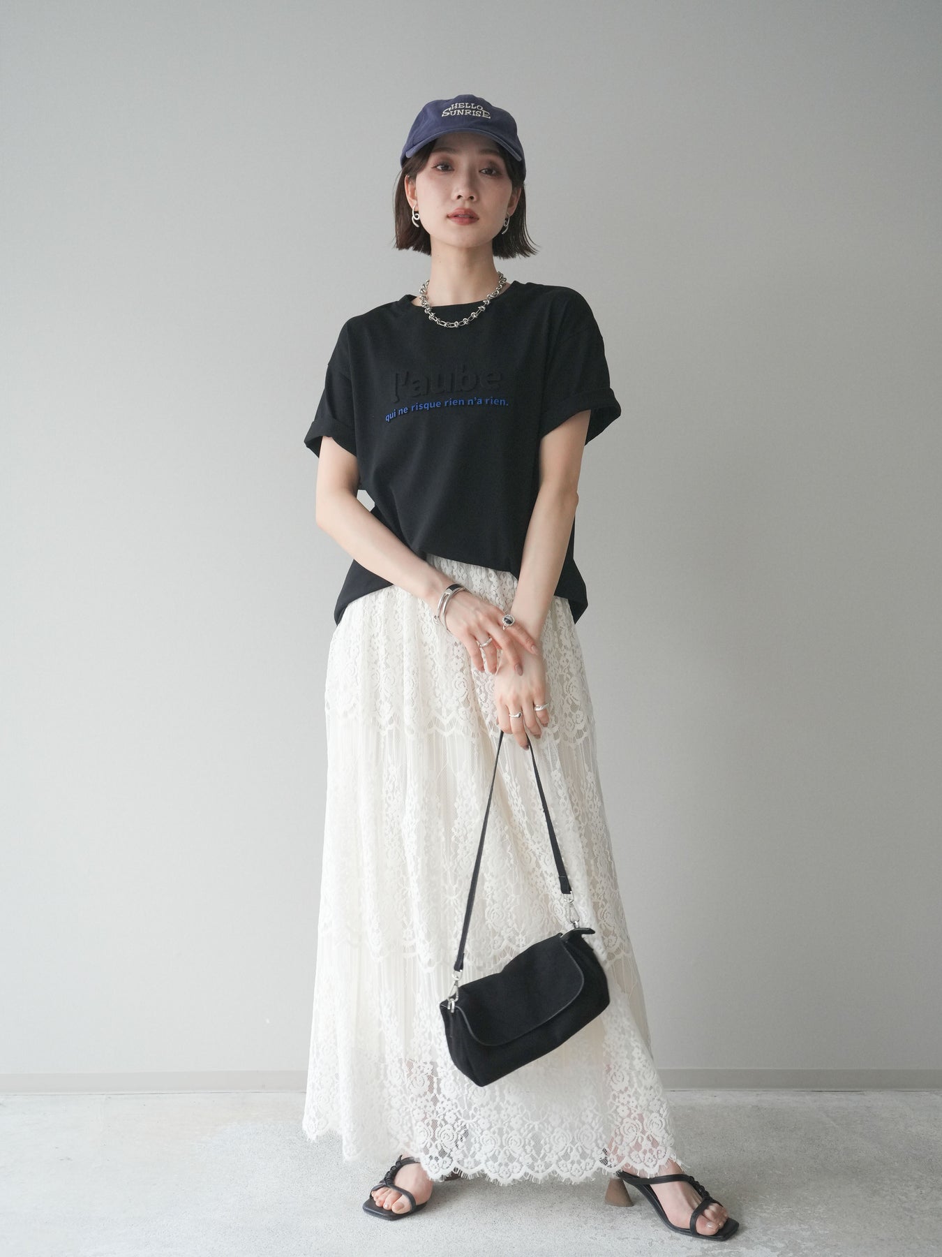 [SET]エンボスロゴTEE+裏プリーツ総レースロングスカート(2set)