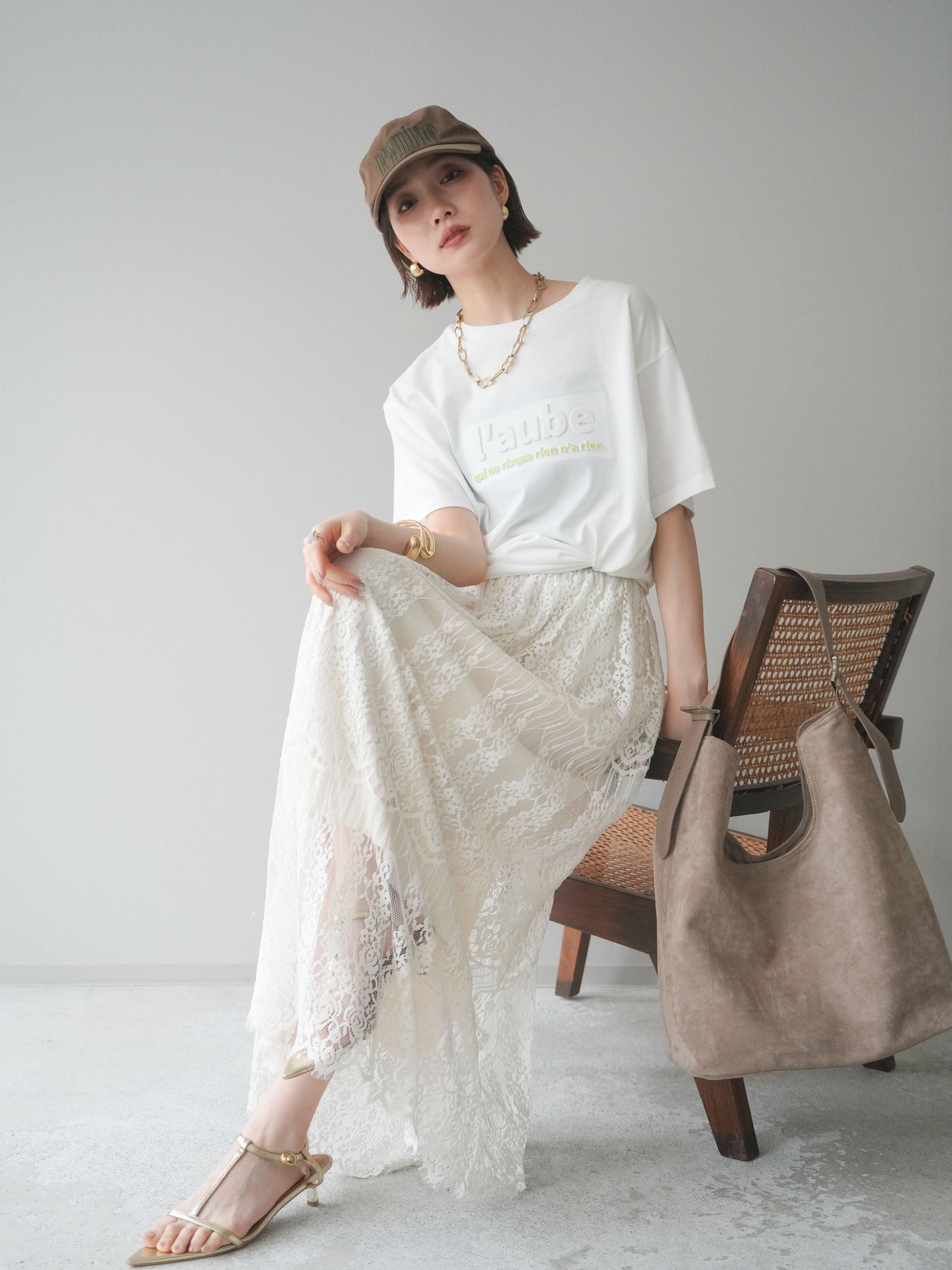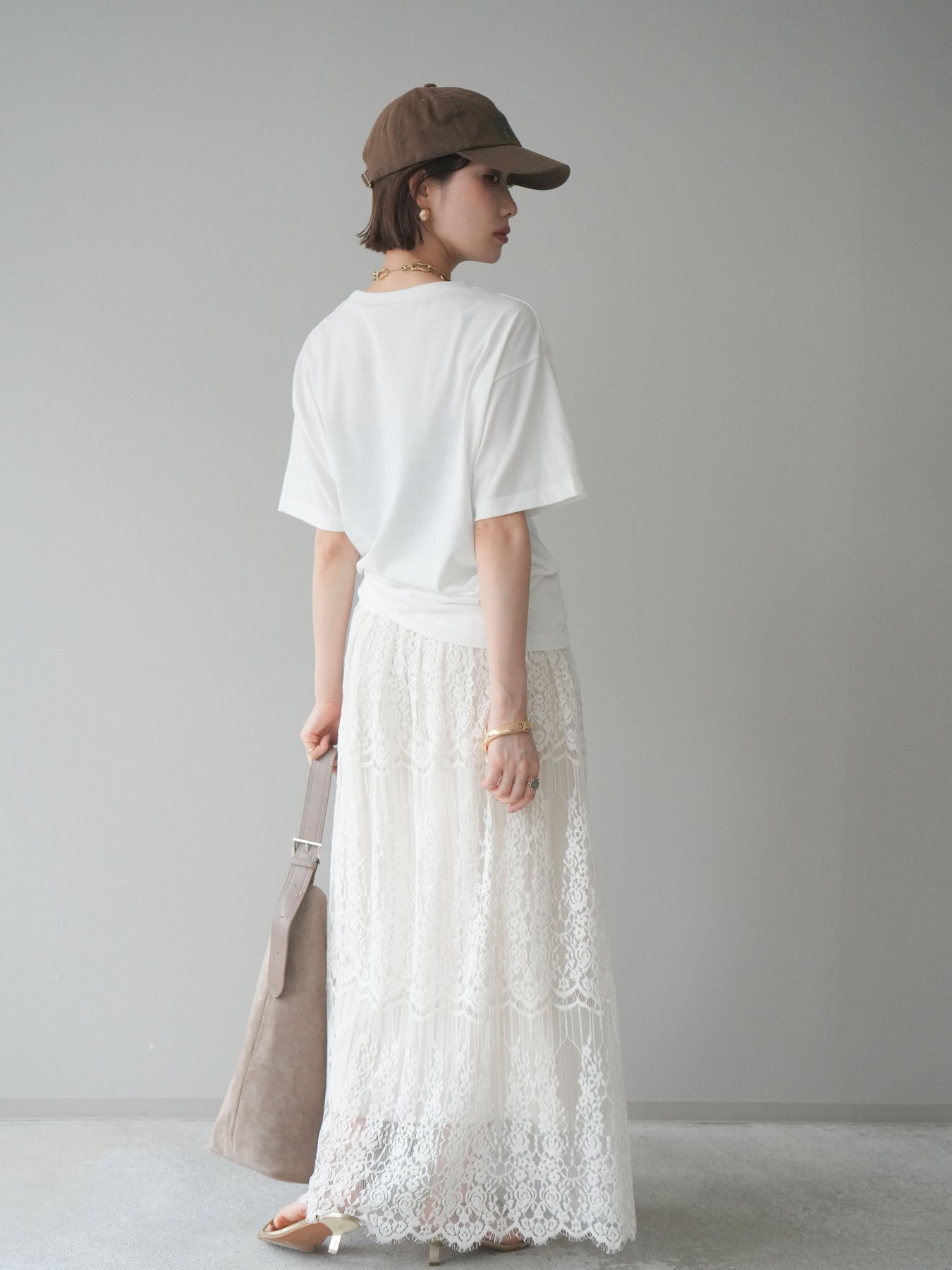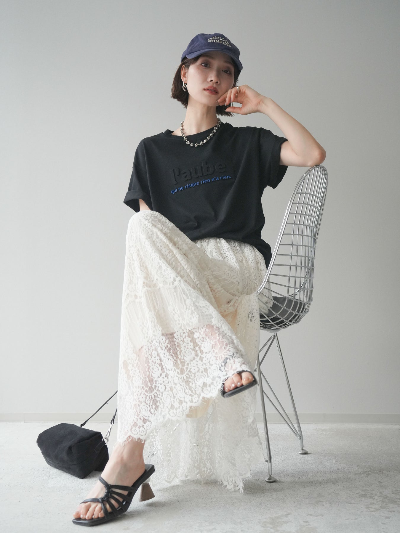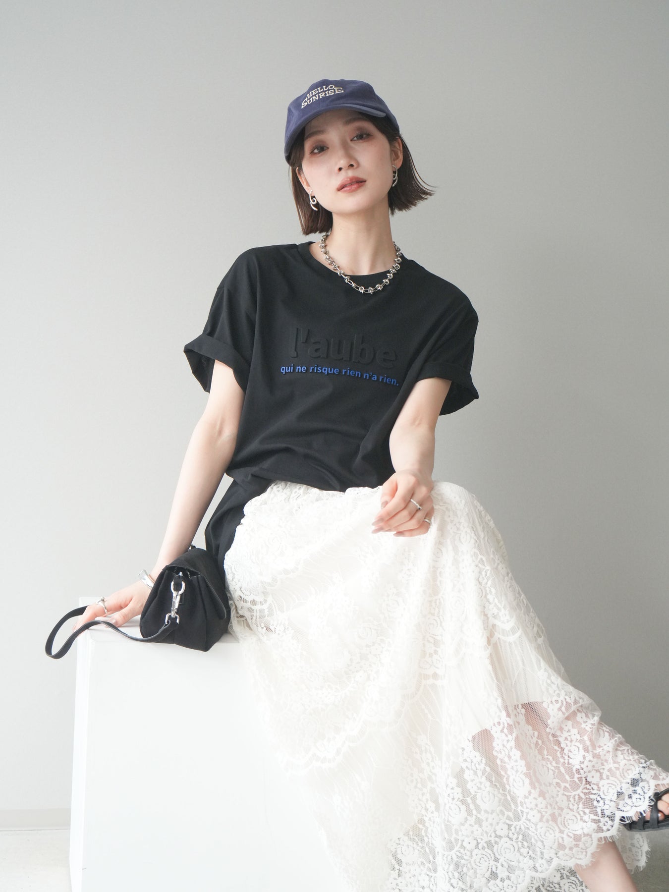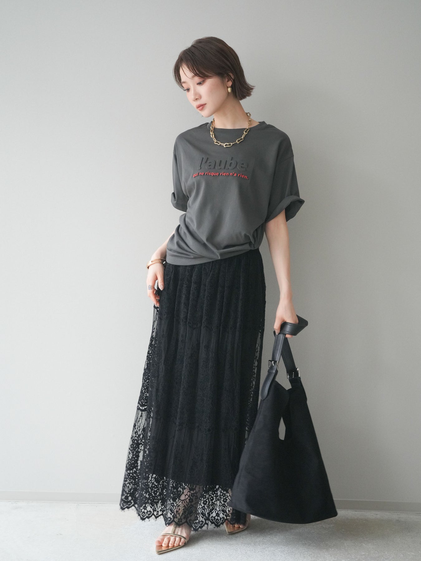 [SET]エンボスロゴTEE+裏プリーツ総レースロングスカート(2set)