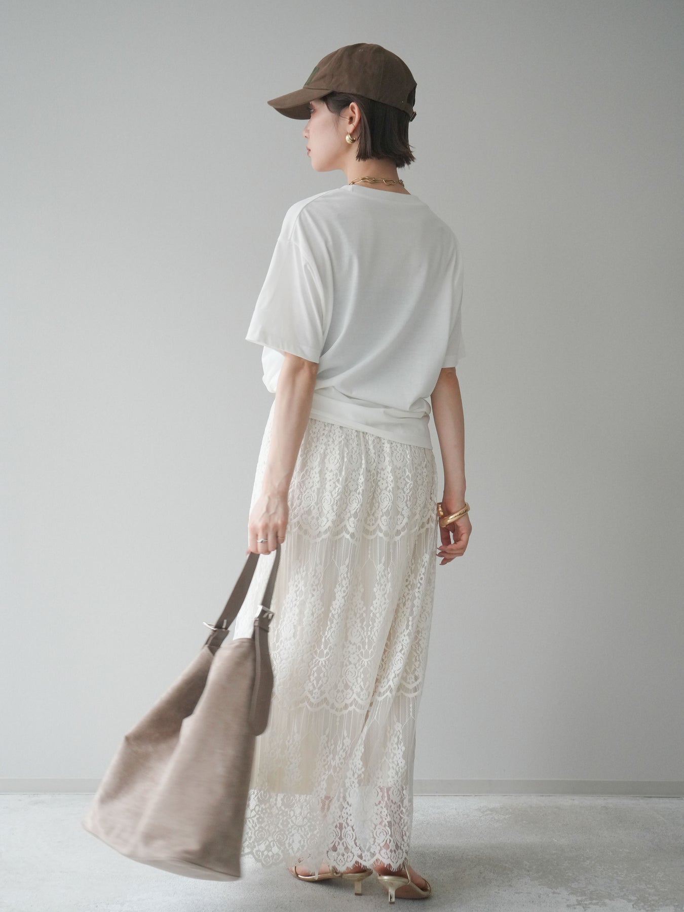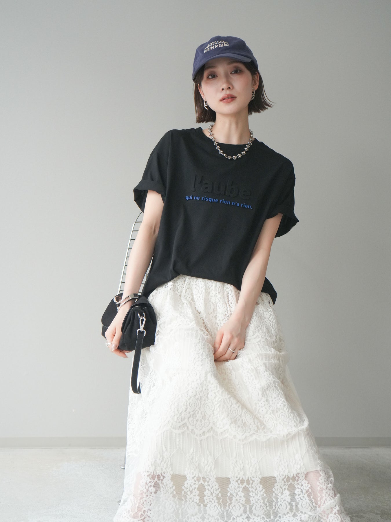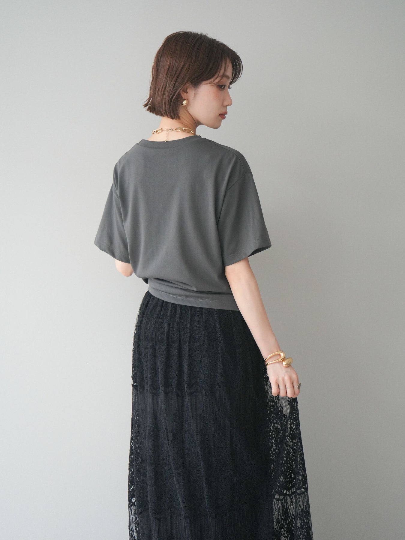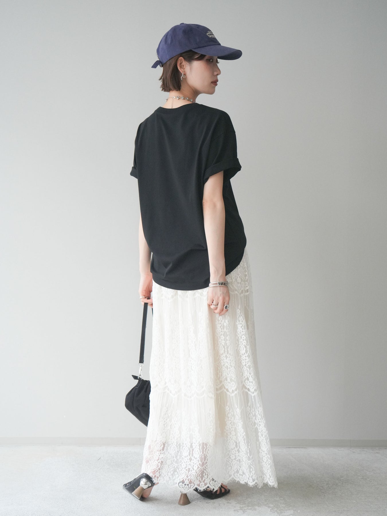 [SET]エンボスロゴTEE+裏プリーツ総レースロングスカート(2set)
