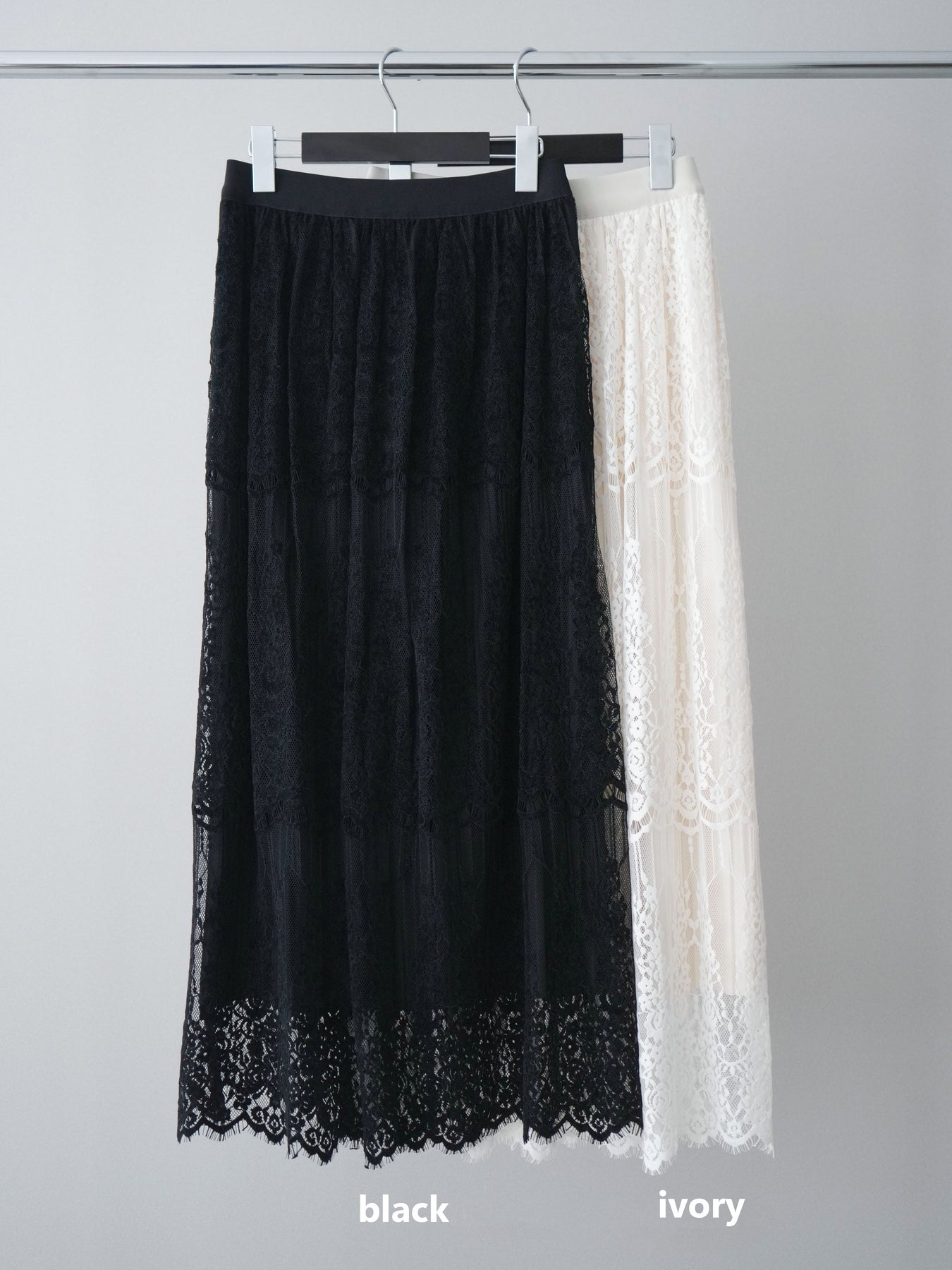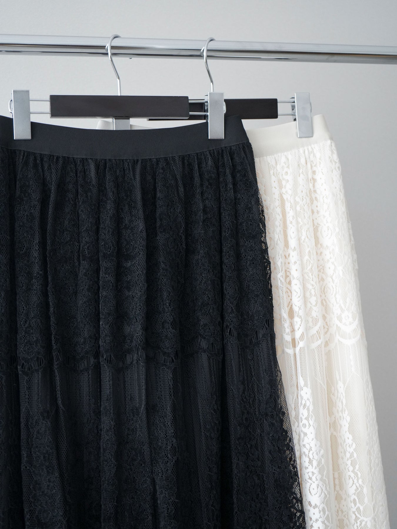 繊細な総レース素材に、内側プリーツを重ねた奥行きのあるロングスカート。歩くたびにさりげなく揺れるシルエットが、上品で女性らしい印象を演出します。レースの透け感とプリーツの立体感が重なり、シンプルなトップスと合わせるだけでも着映えする一着。ウエストはすっきりとしたデザインで、きれいめにもカジュアルにも取り入れやすく、デイリーからお出かけまで幅広いシーンで活躍します。