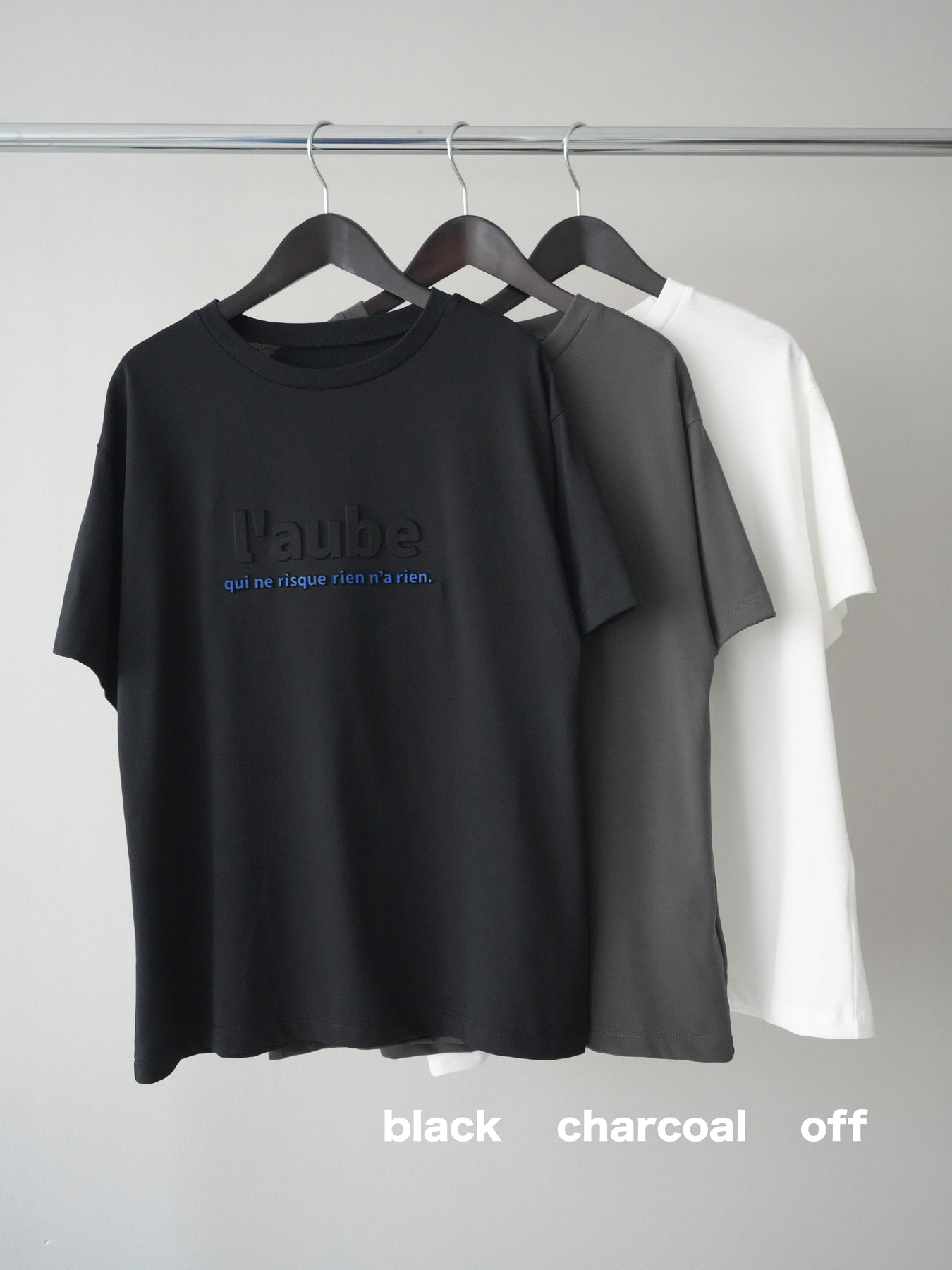 立体感のあるエンボスロゴがアクセントになったTシャツ。さりげない凹凸のあるデザインがシンプルな中に奥行きを生み、洗練された印象を演出します。程よくゆとりのあるシルエットでリラックス感のある着心地を叶えつつ、バランスよく着用できる一着。滑らかな素材感で肌あたりも良く、デイリーに取り入れやすいのも魅力です。デニムやスラックスと合わせたカジュアルスタイルはもちろん、ジャケットのインナーとしても活躍し、幅広いコーディネートに対応します。 ※ボトムス、キャミソール(インナー)以外の商品は一律でインナーは付属していません。