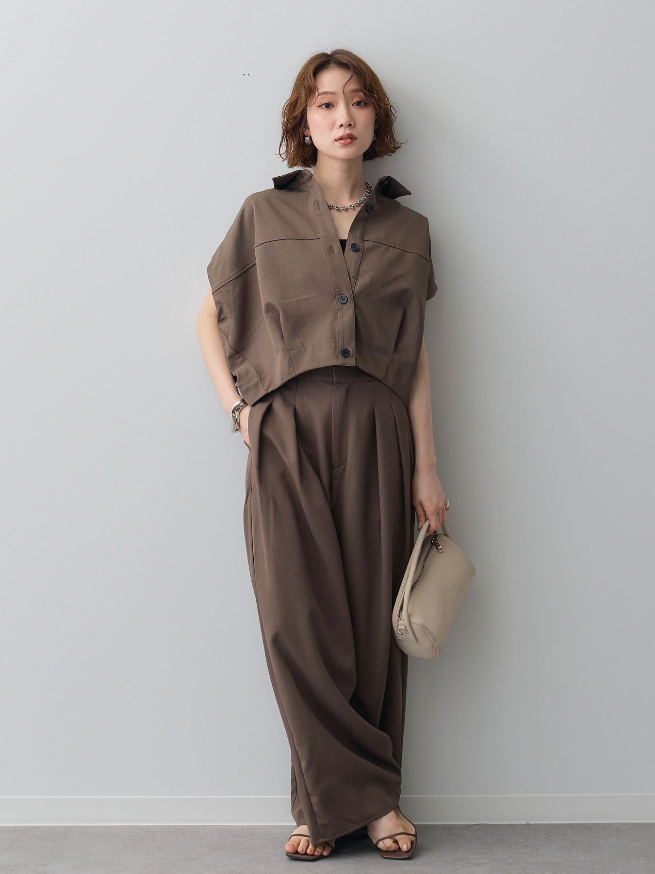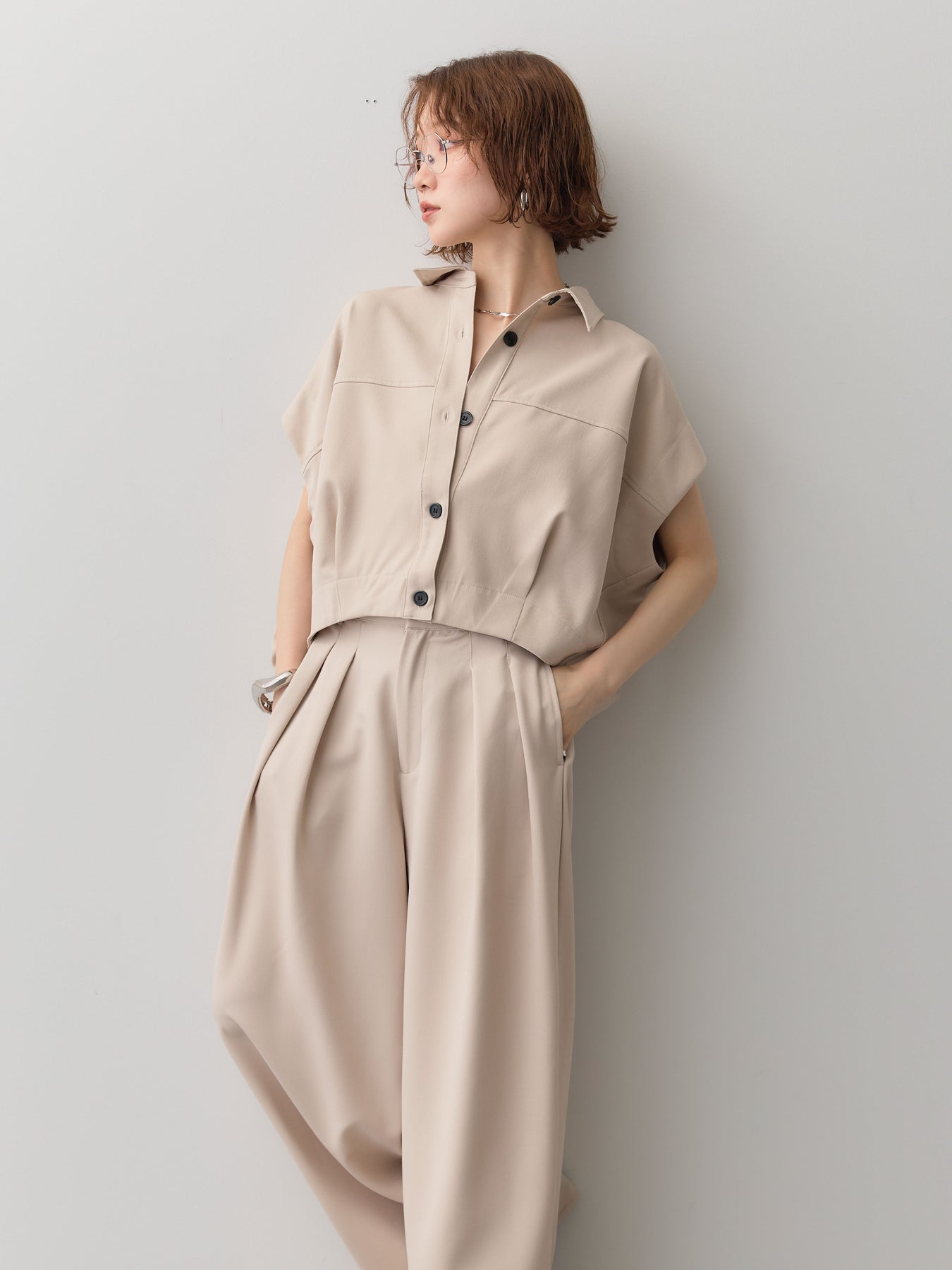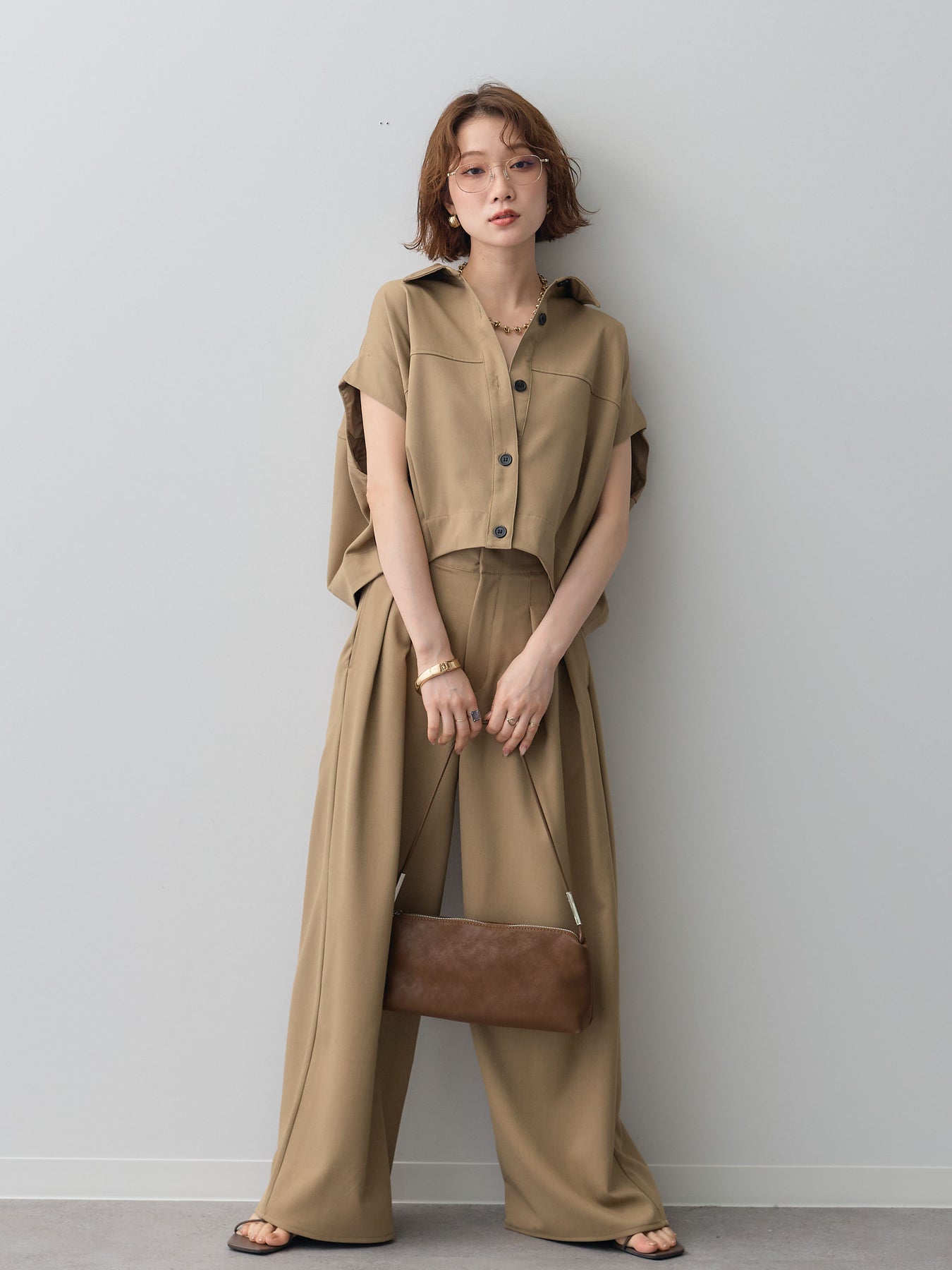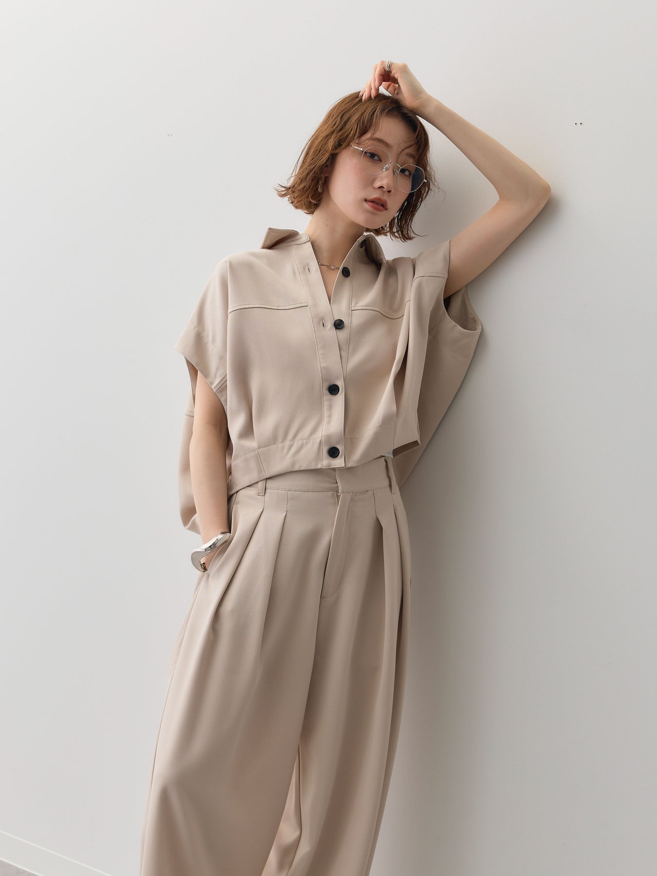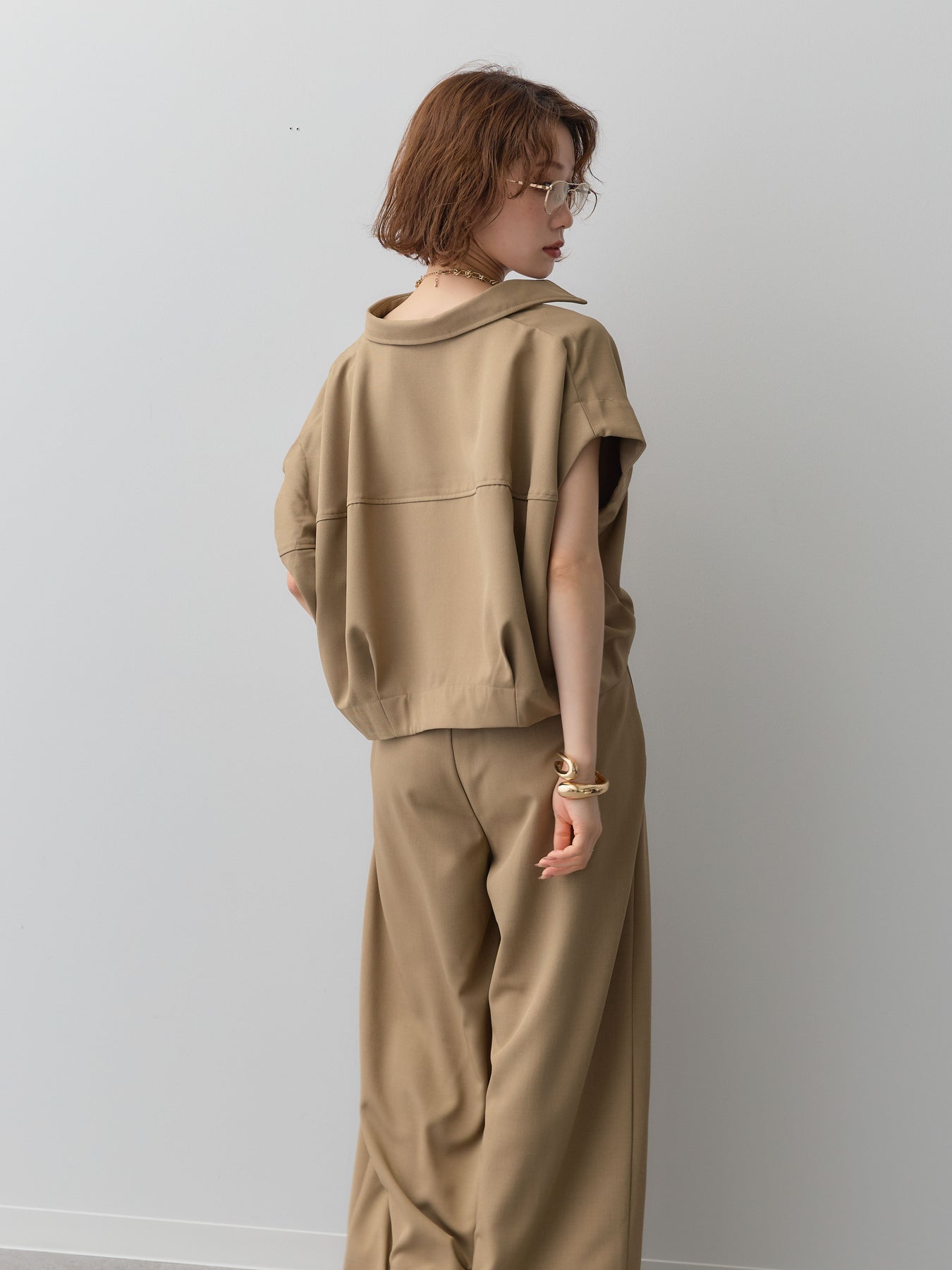 【套裝】縐綢燈籠無袖襯衫 + 縐綢闊腿褲(兩件套)