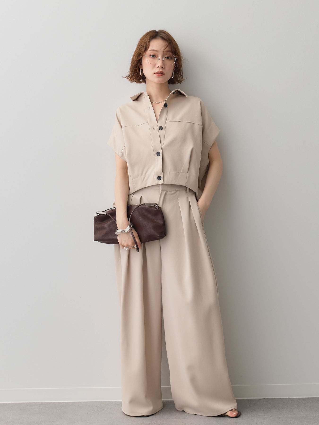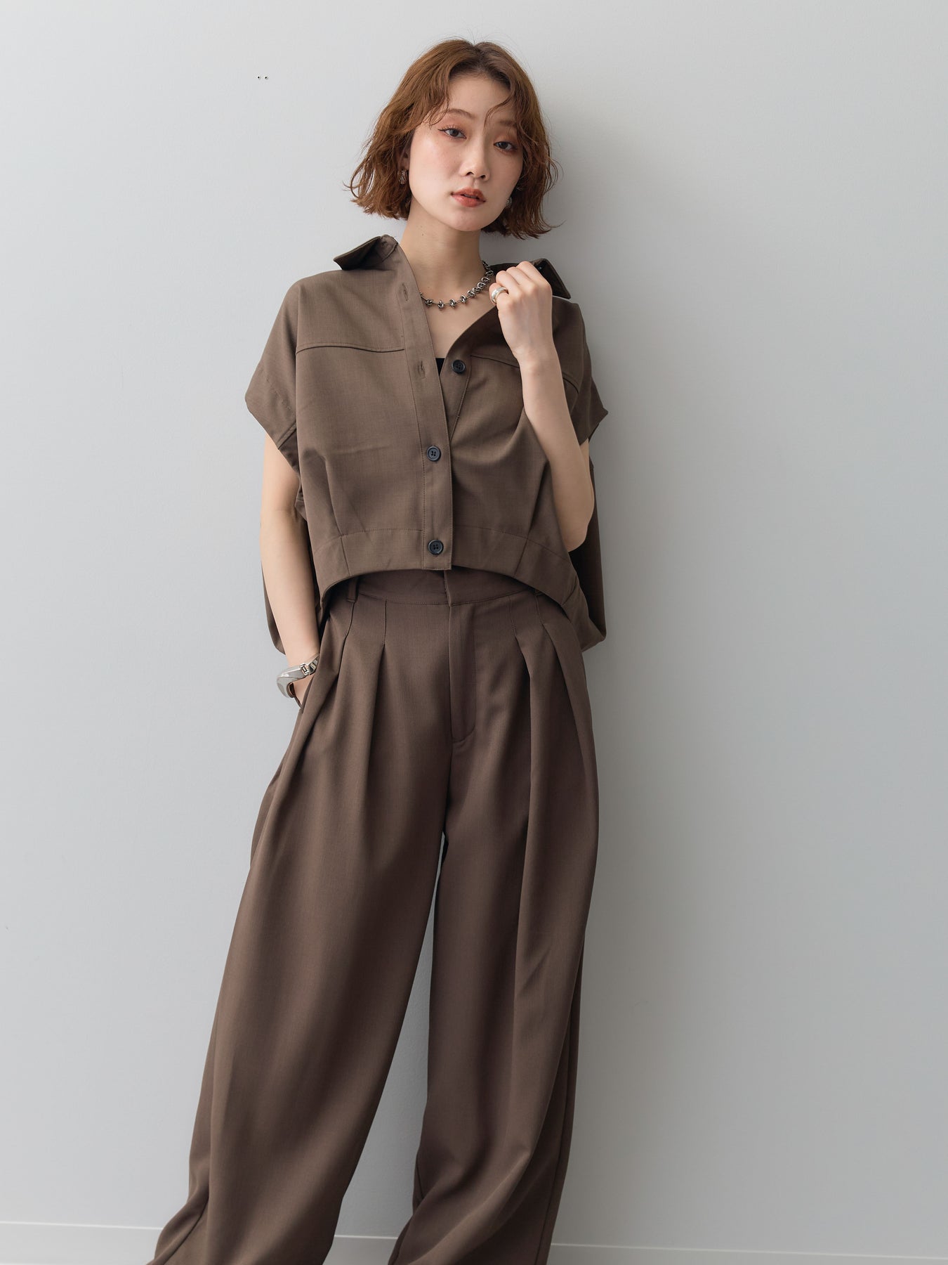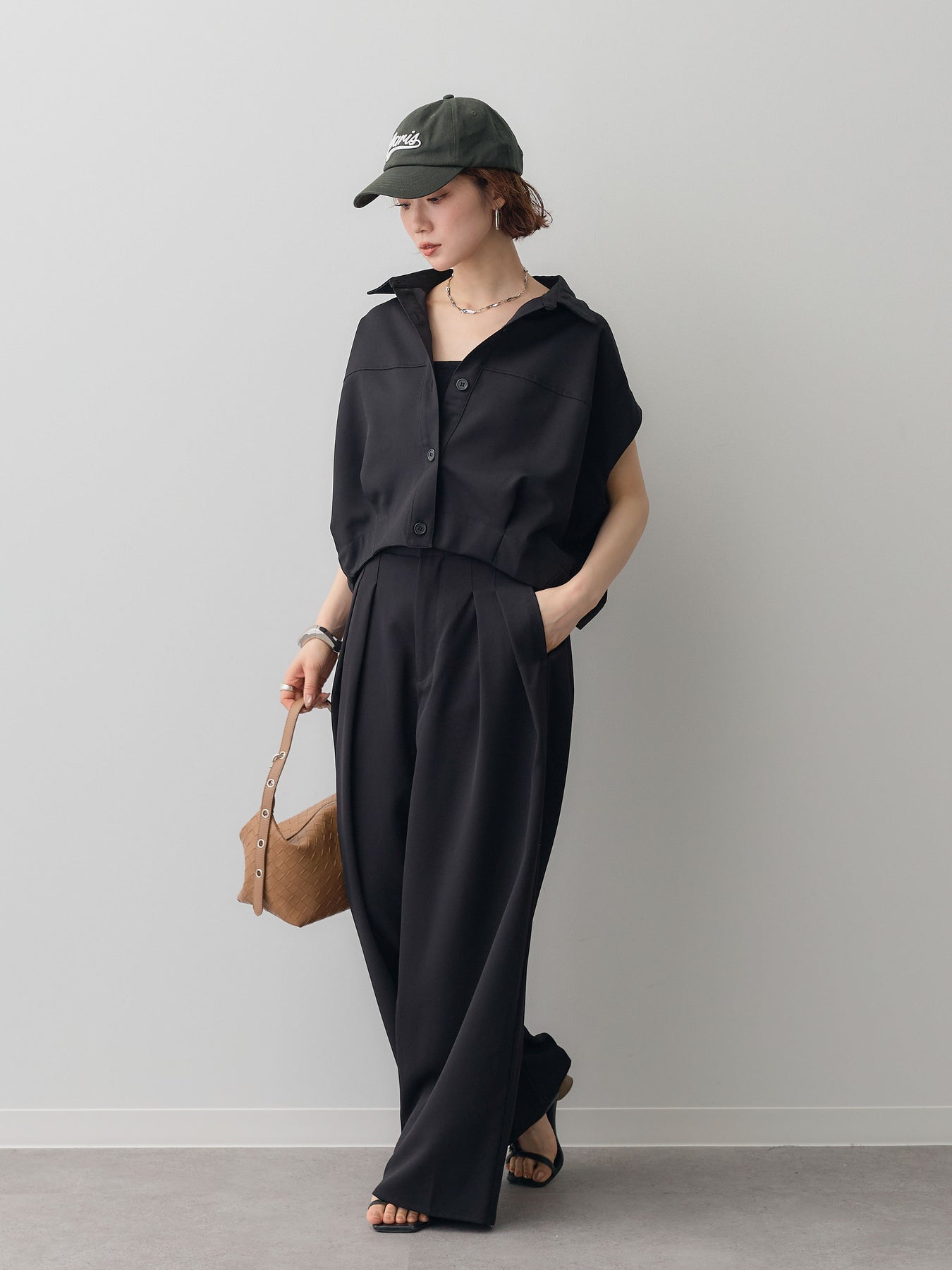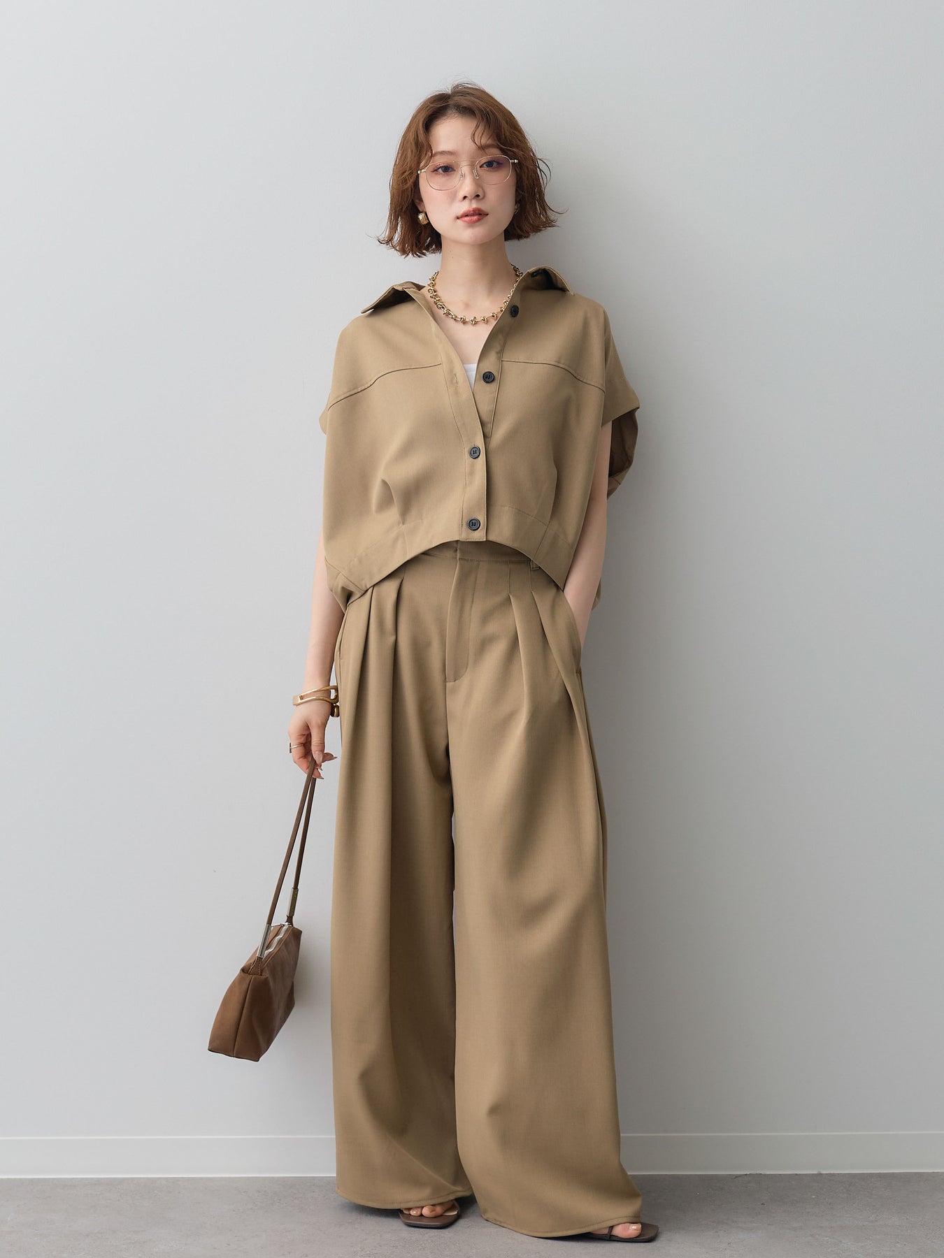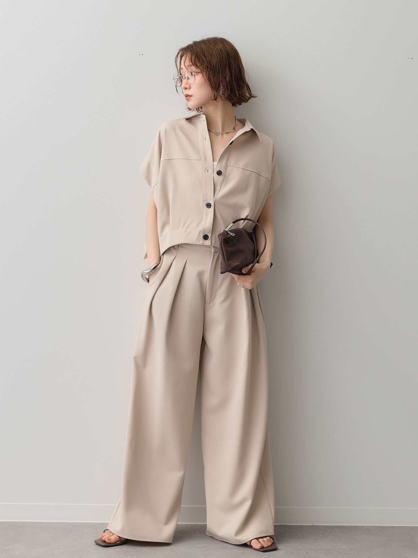 【套裝】縐綢燈籠無袖襯衫 + 縐綢闊腿褲(兩件套)
