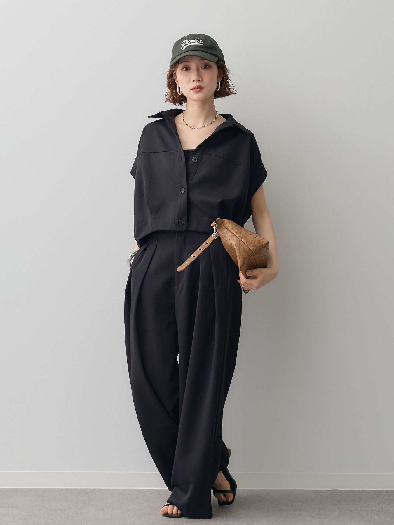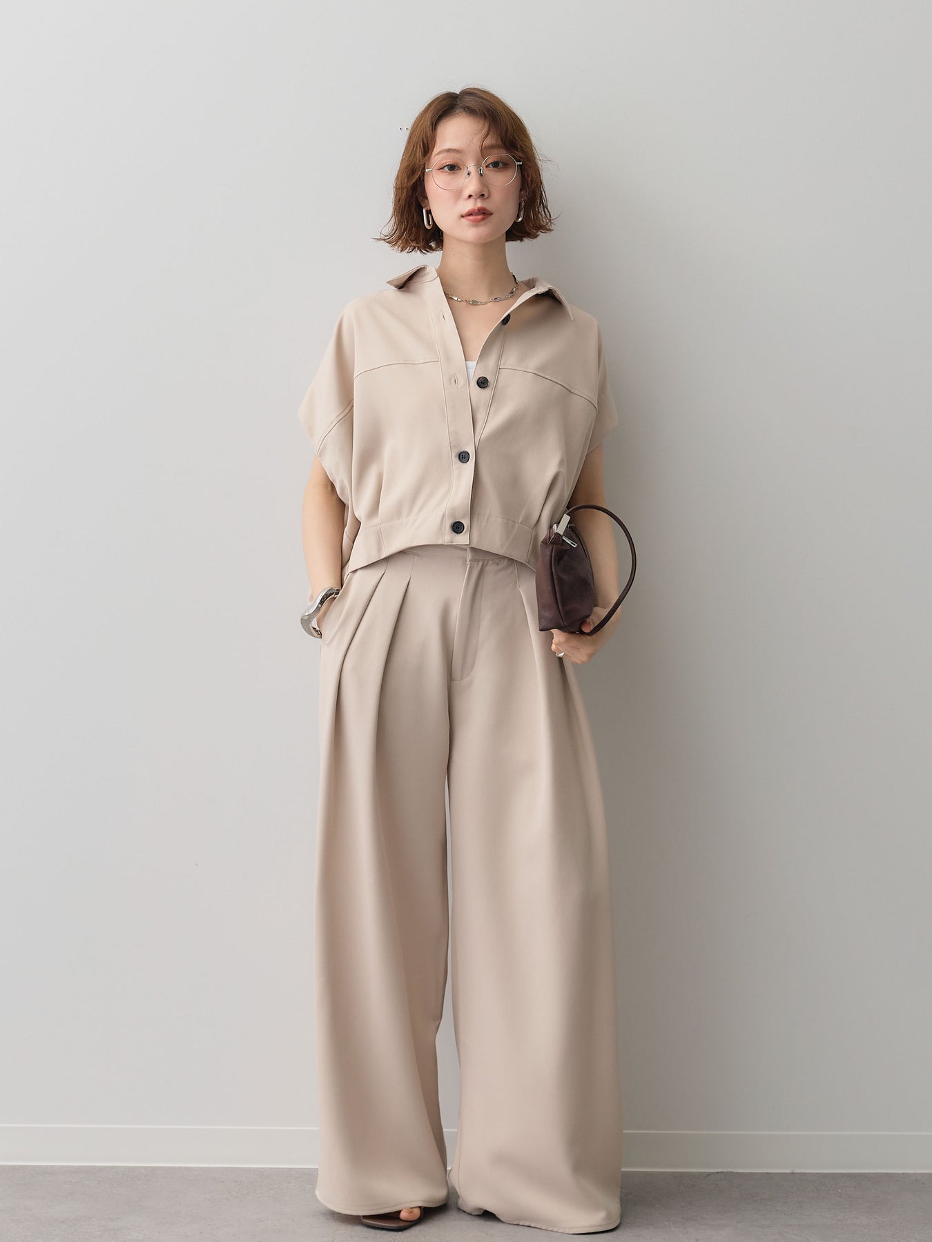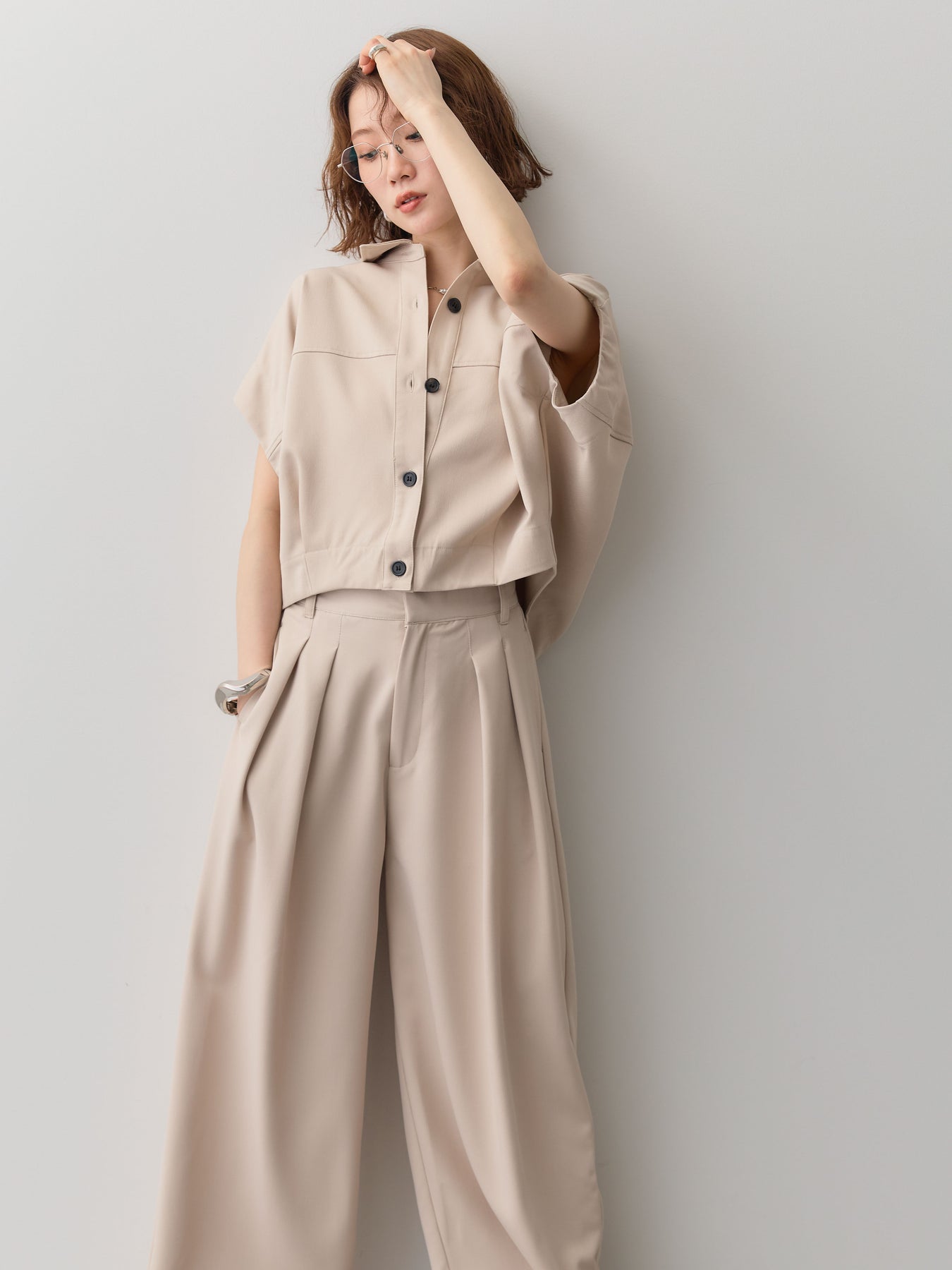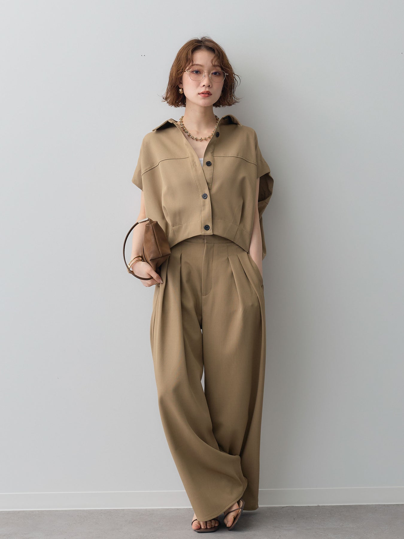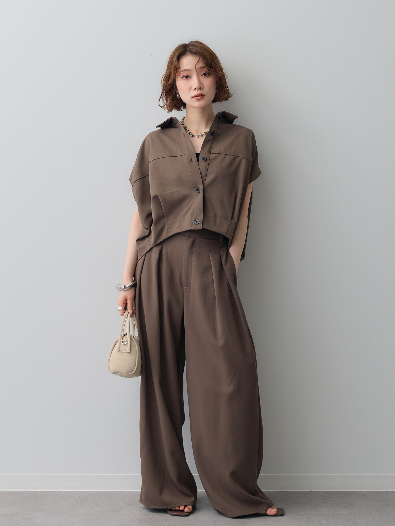 【套裝】縐綢燈籠無袖襯衫 + 縐綢闊腿褲(兩件套)